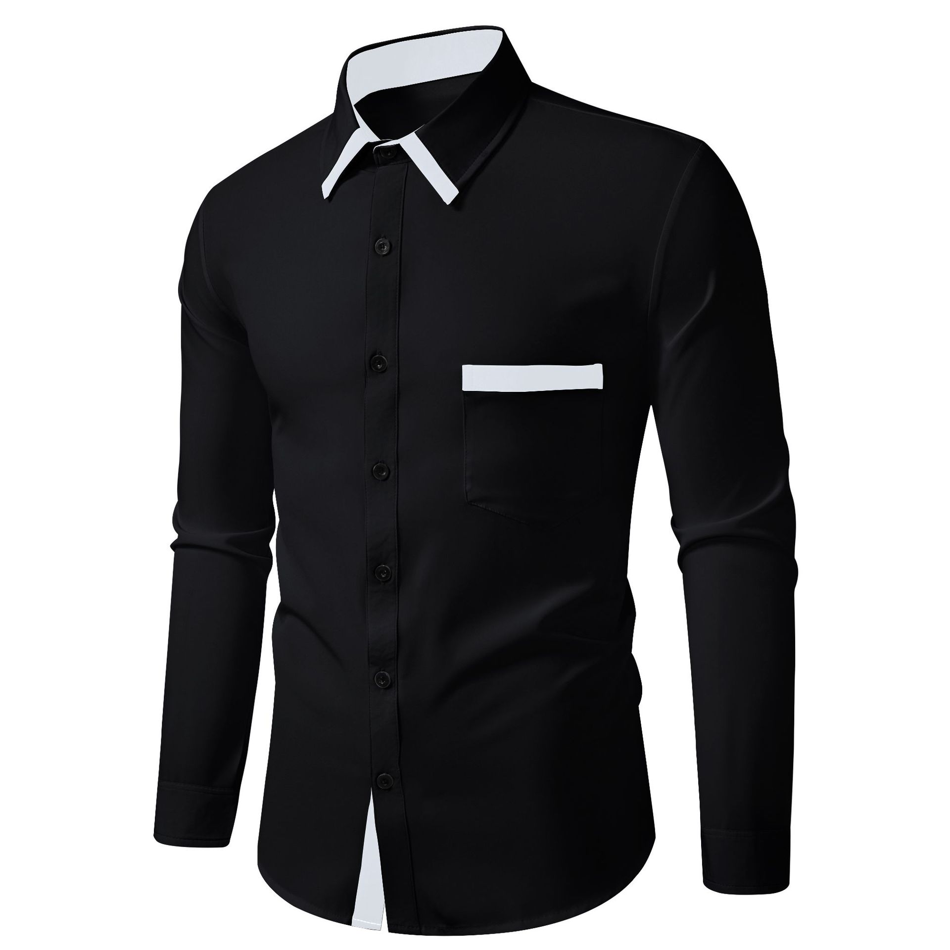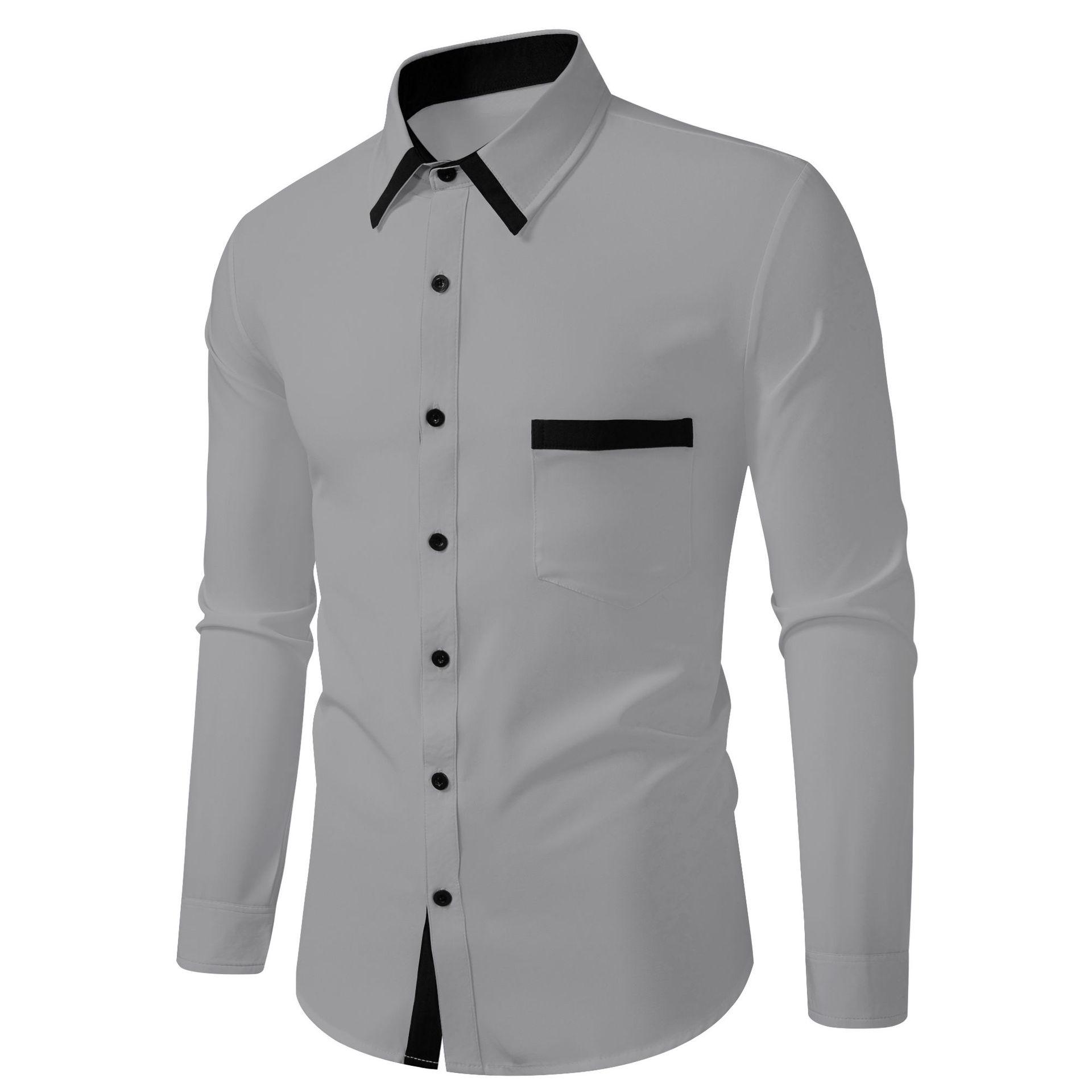 2025 Nueva Moda Transfronteriza Ropa de Hombre Camisa Casual Slim de Negocios con Combinación de Colores para Hombre Cárdigan Camisa de Manga Larga con Color en Contraste