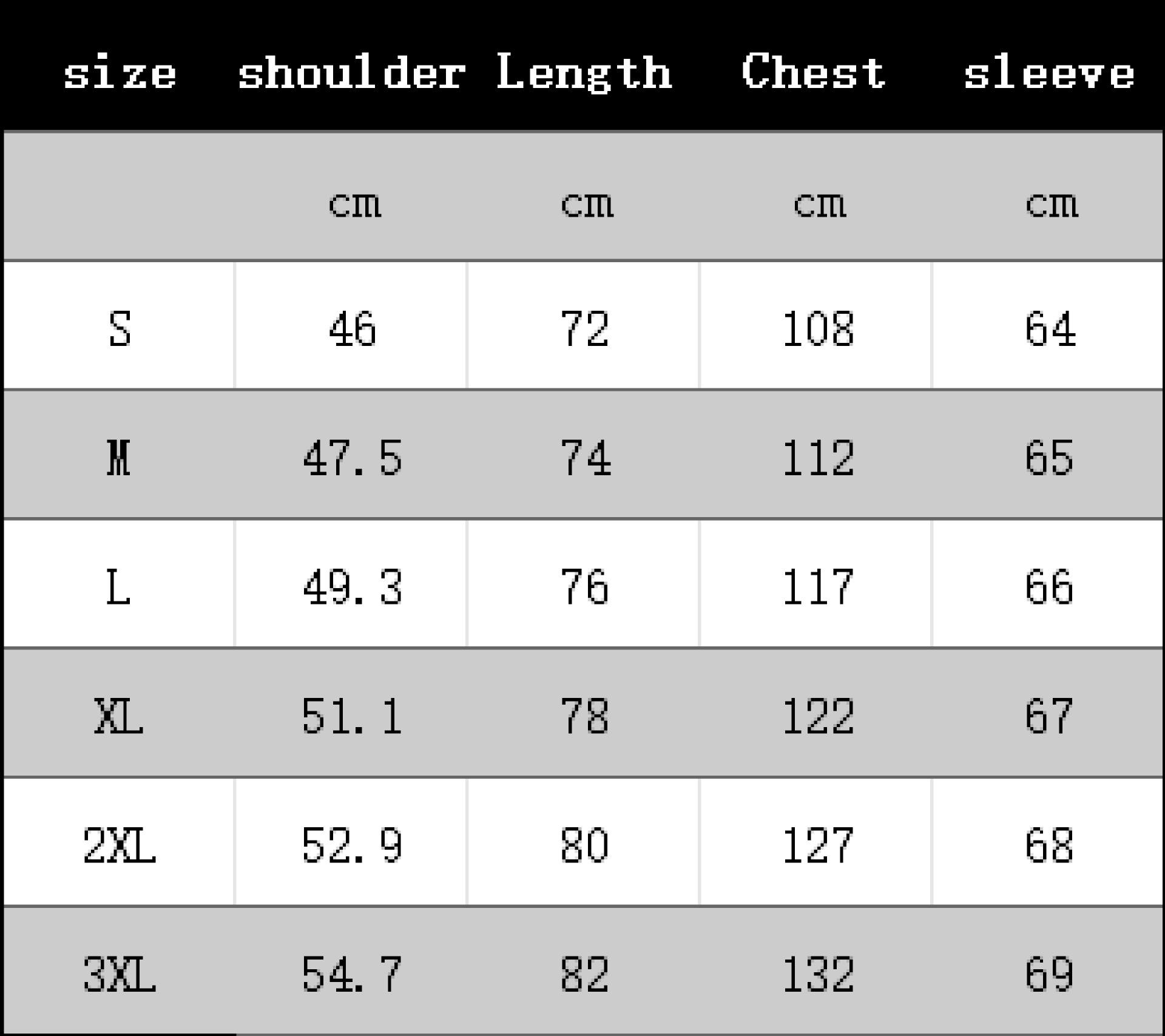 S, M, L, XL, XXL, XXXL