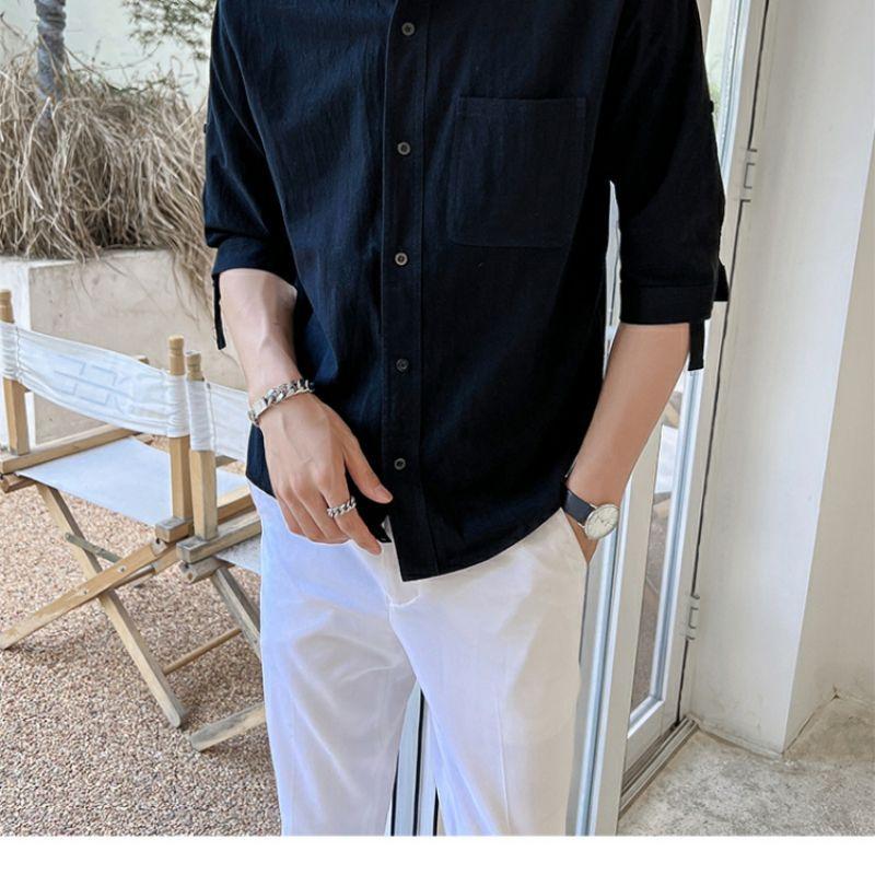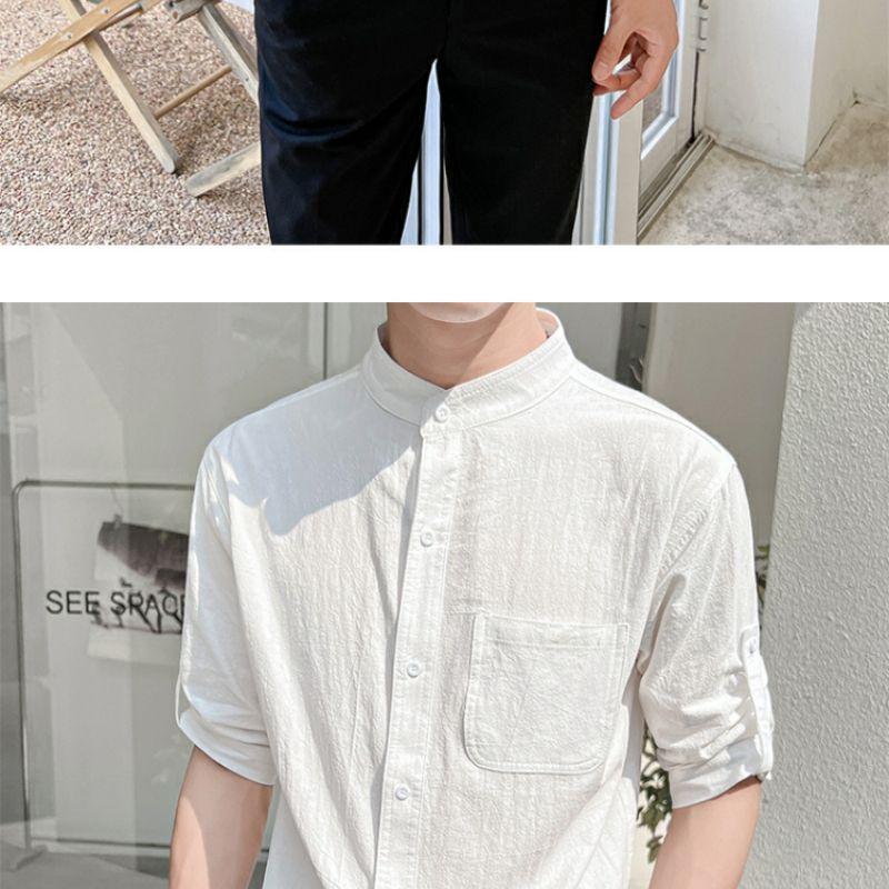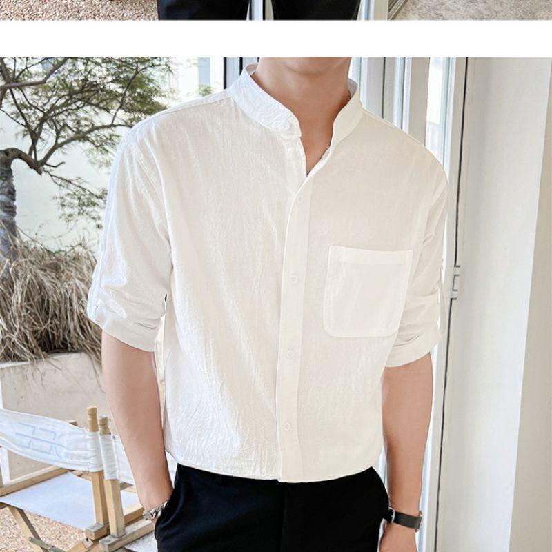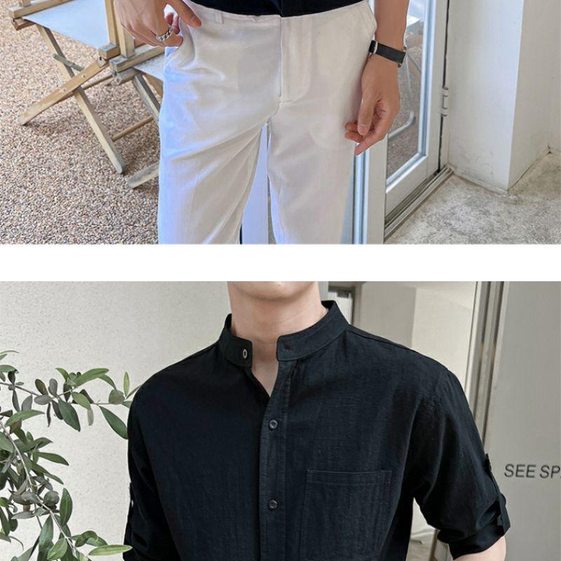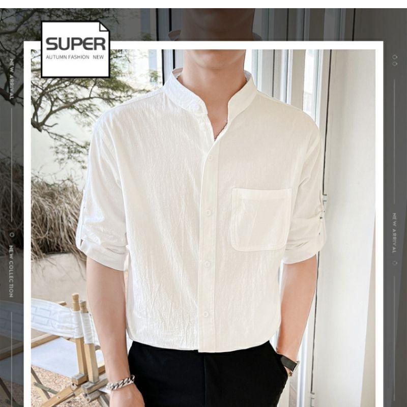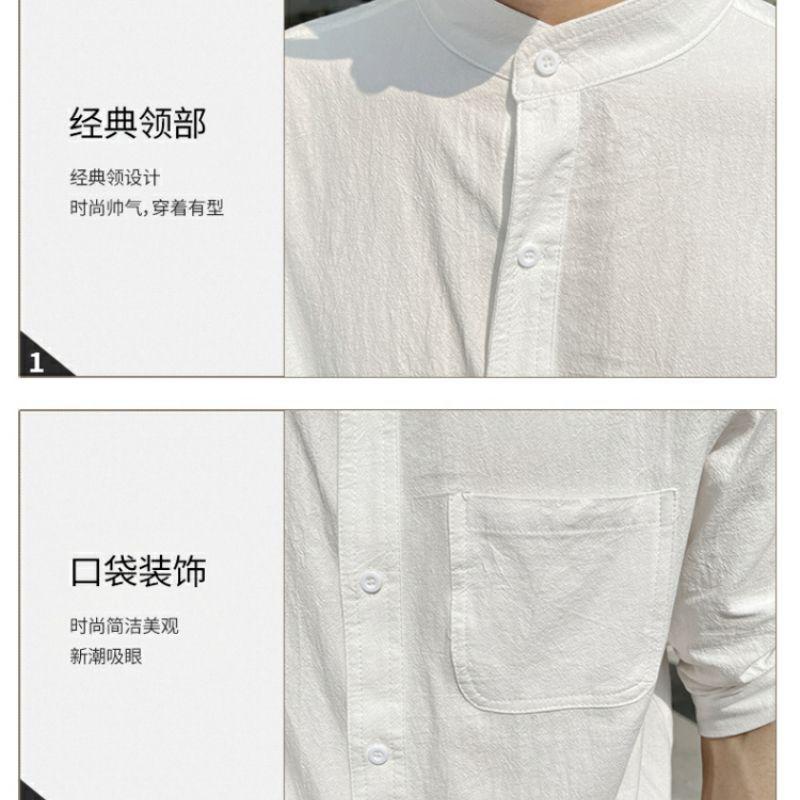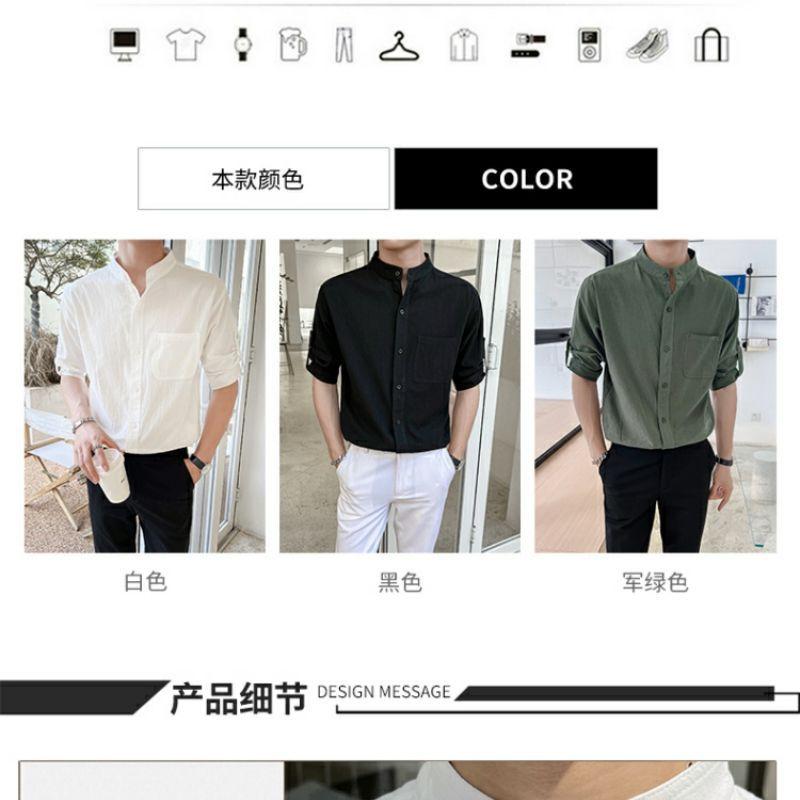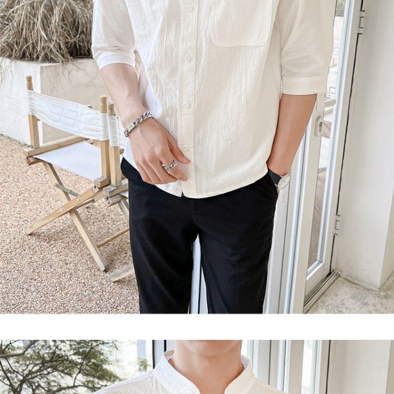 Compra Verano Nuevo Camisa de Algodón y Lino de Manga Siete Cuartos para Hombre Suelta Delgada Transpirable Color Sólido Algodón y Lino Camisa para Hombre Blanca Suave al por mayor en Joom.pro