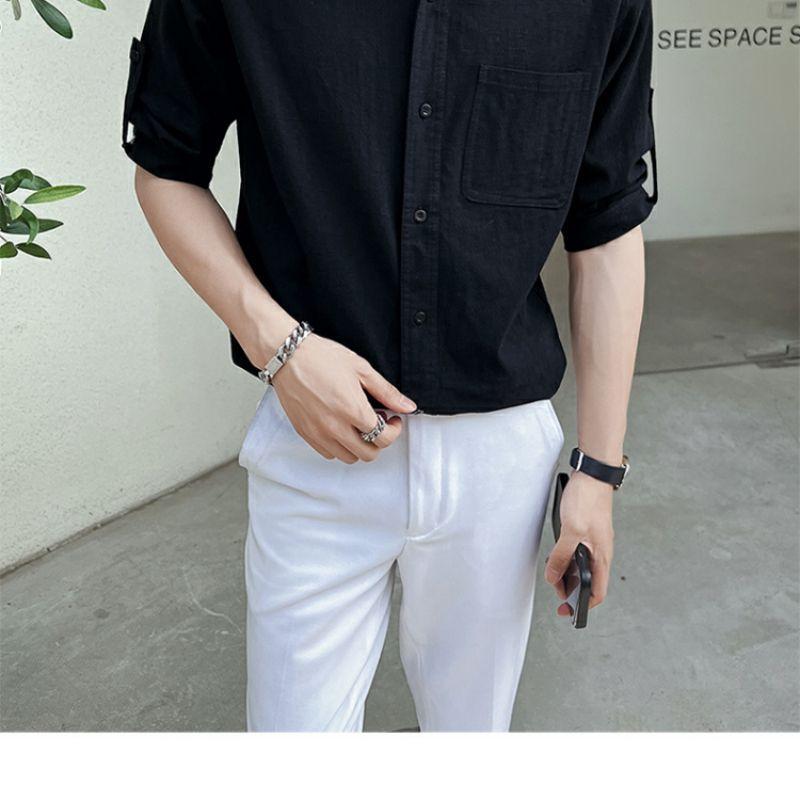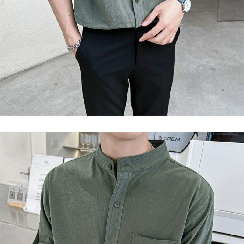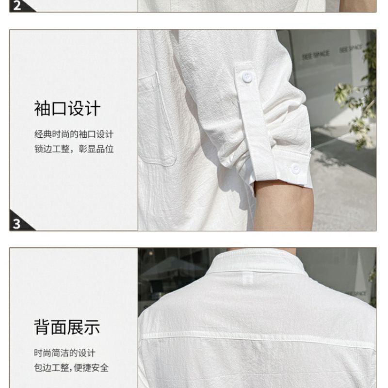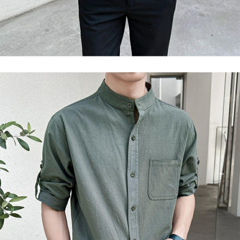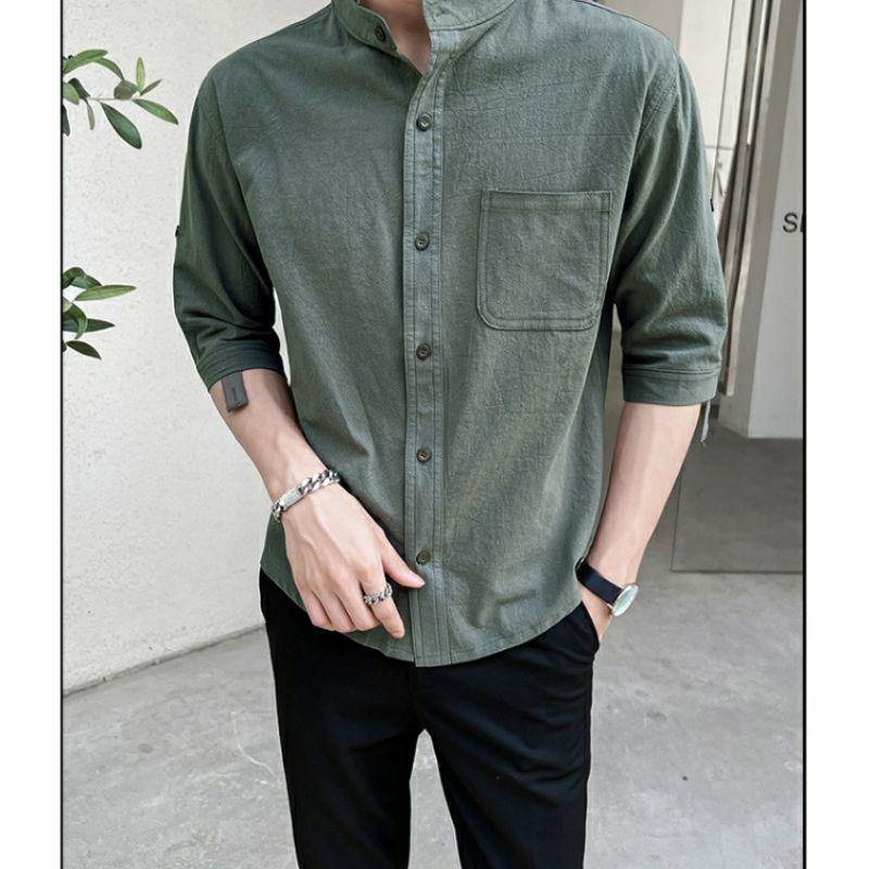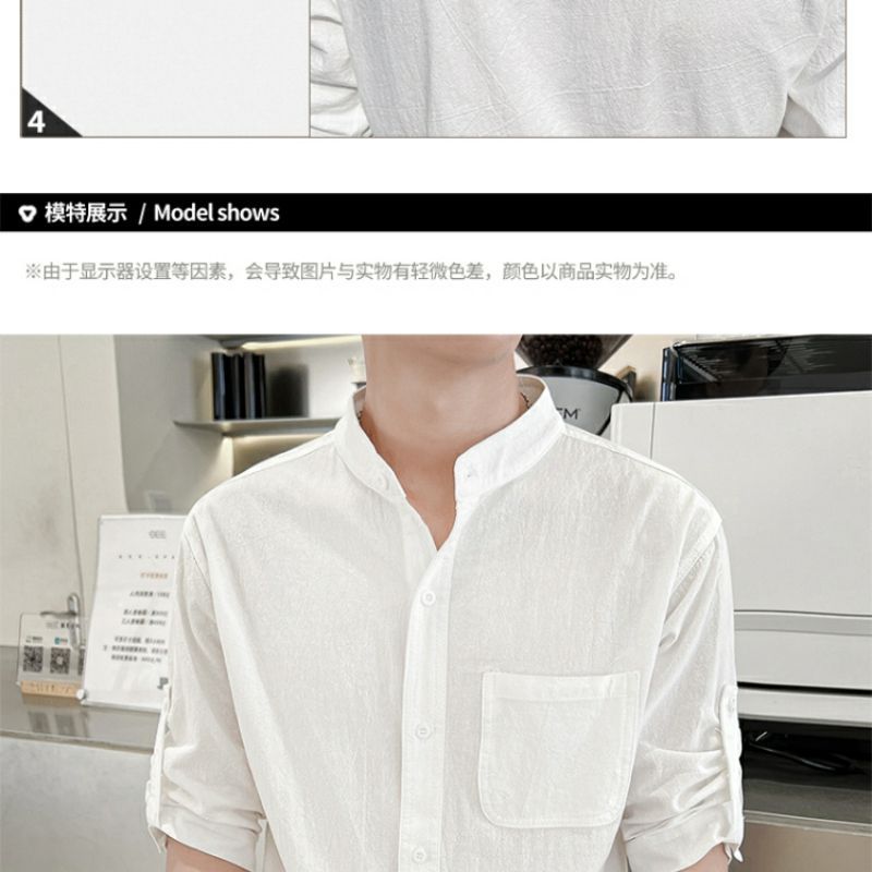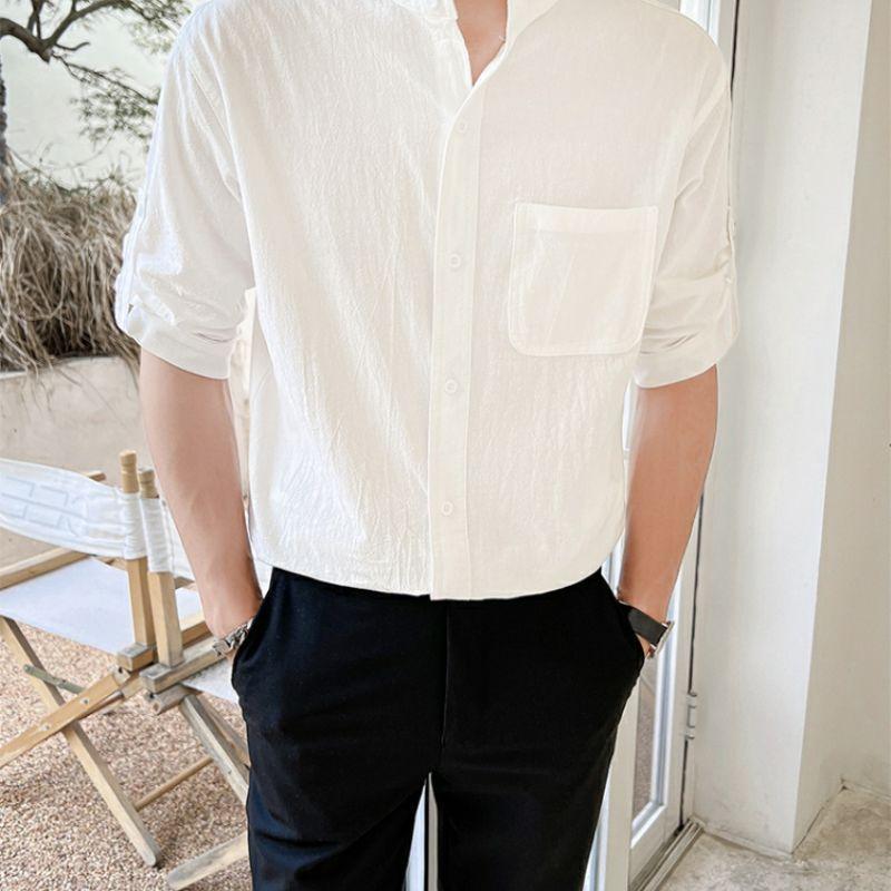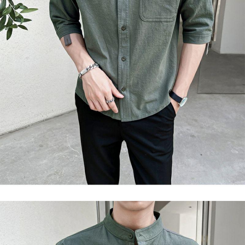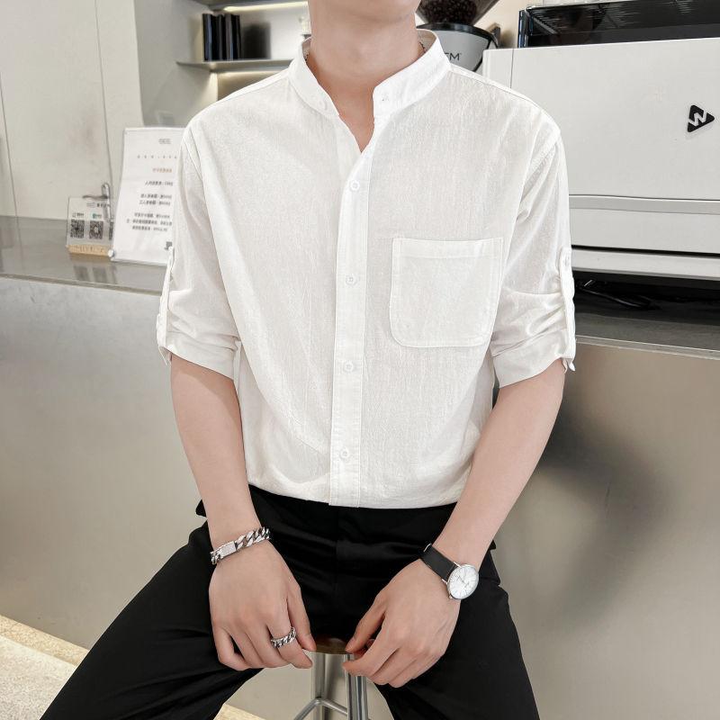 Compra Verano Nuevo Camisa de Algodón y Lino de Manga Siete Cuartos para Hombre Suelta Delgada Transpirable Color Sólido Algodón y Lino Camisa para Hombre Blanca Suave al por mayor en Joom.pro