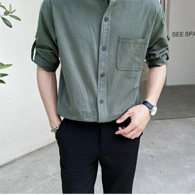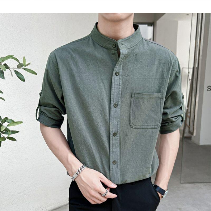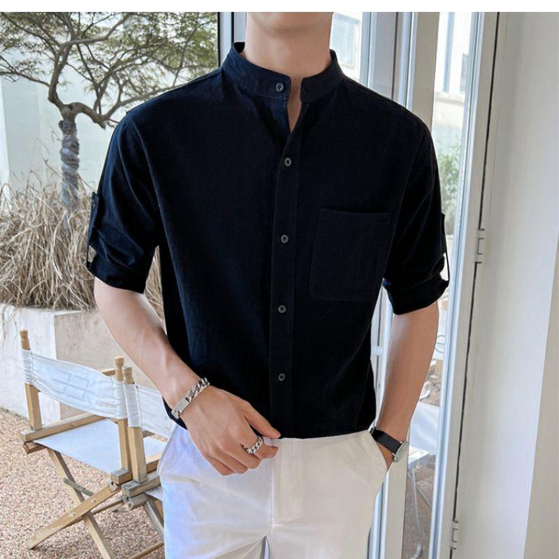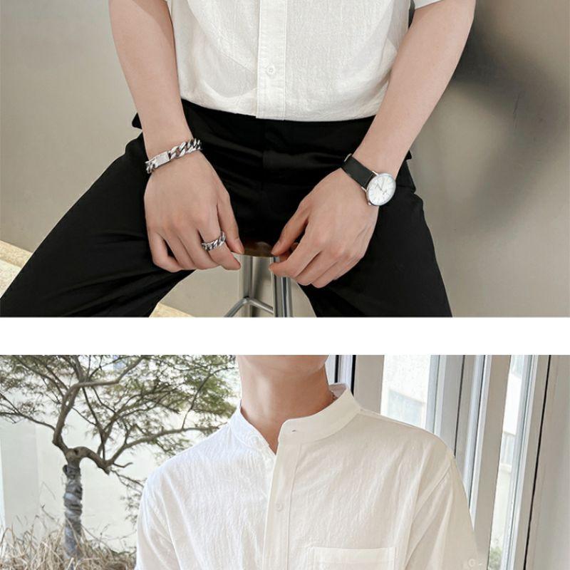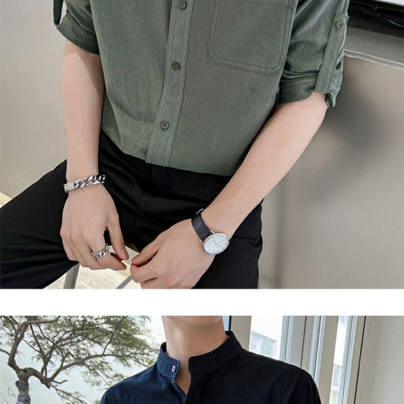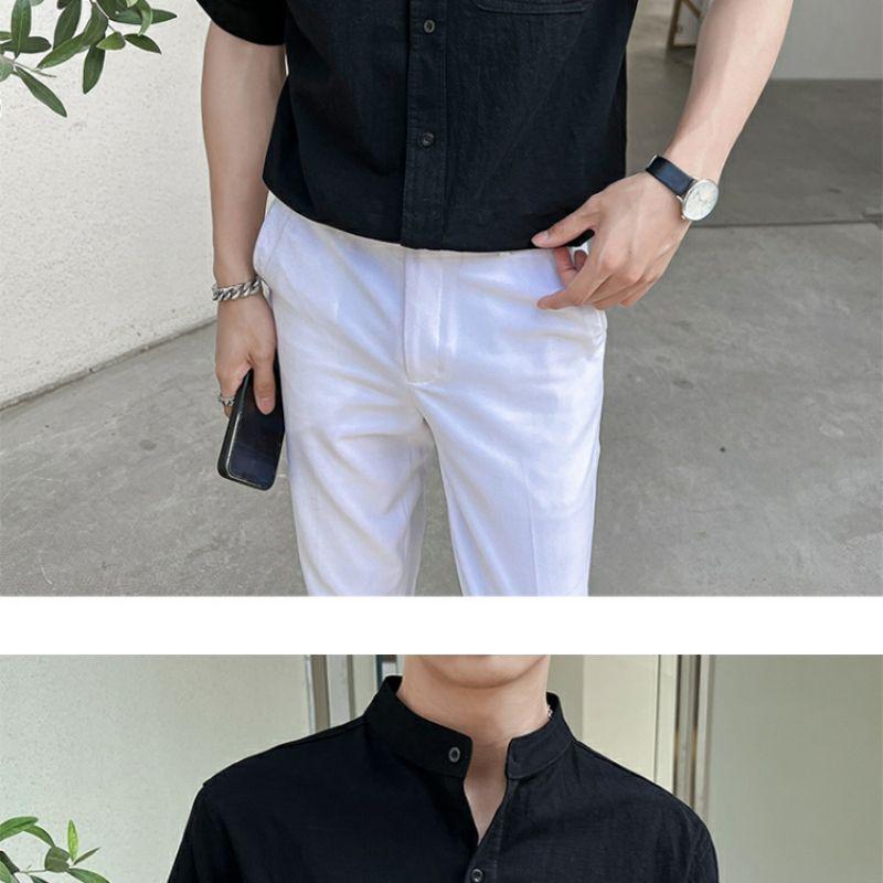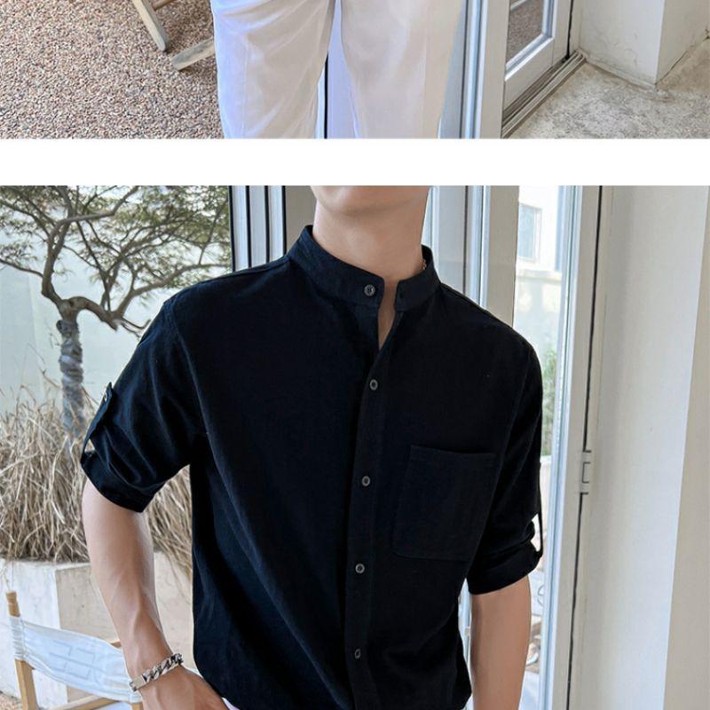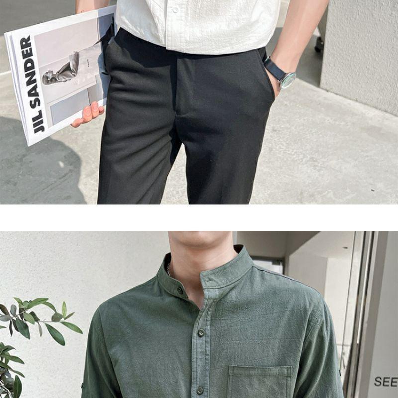 Compra Verano Nuevo Camisa de Algodón y Lino de Manga Siete Cuartos para Hombre Suelta Delgada Transpirable Color Sólido Algodón y Lino Camisa para Hombre Blanca Suave al por mayor en Joom.pro