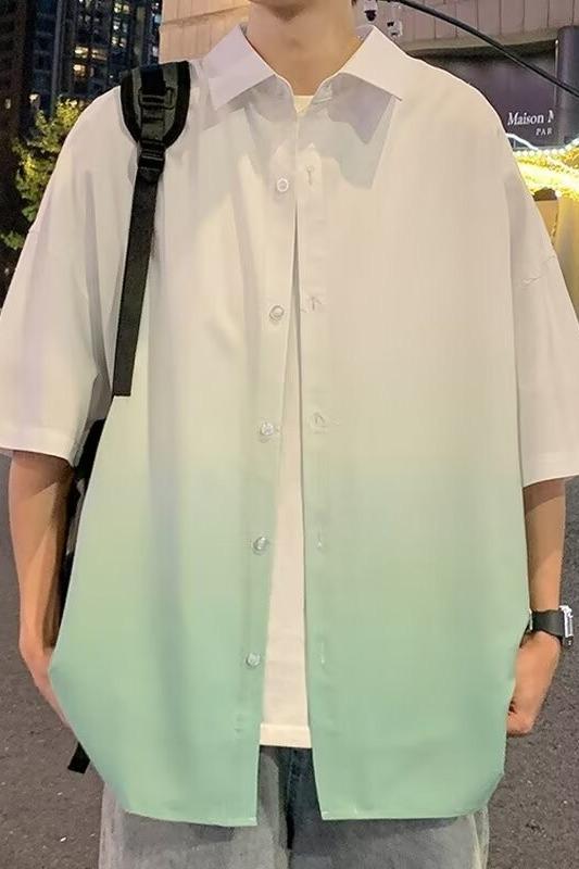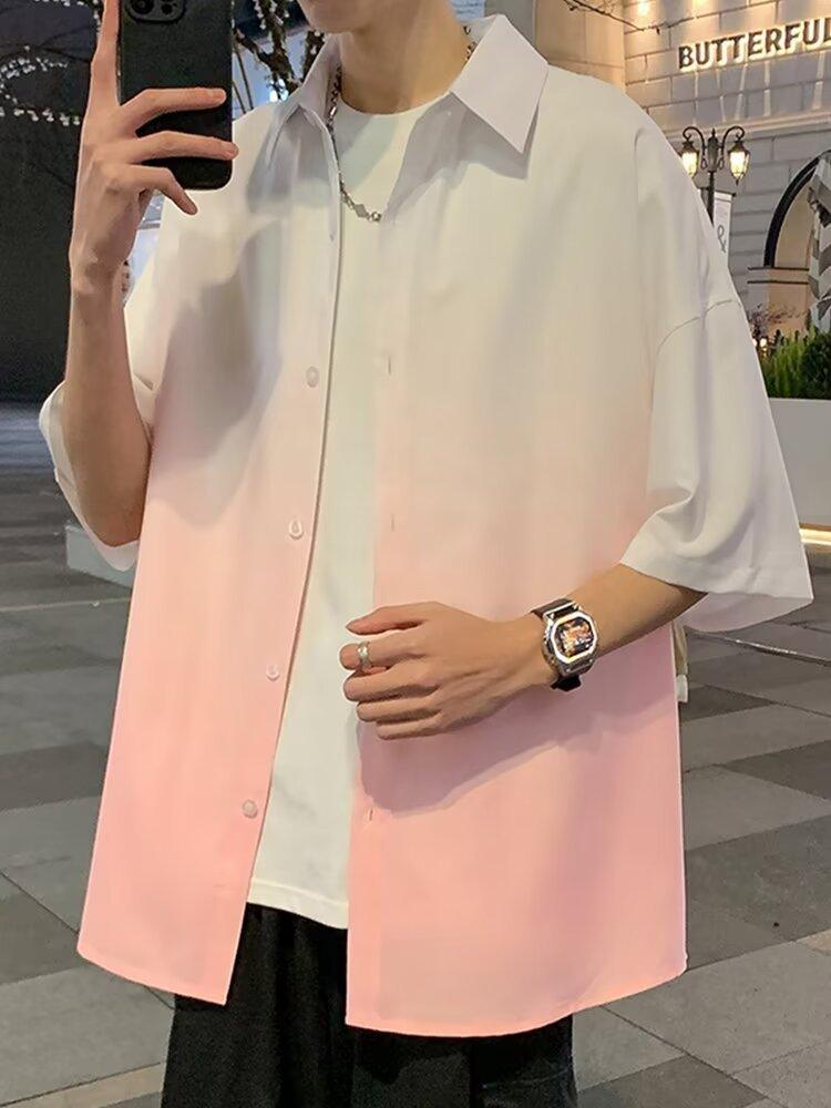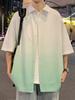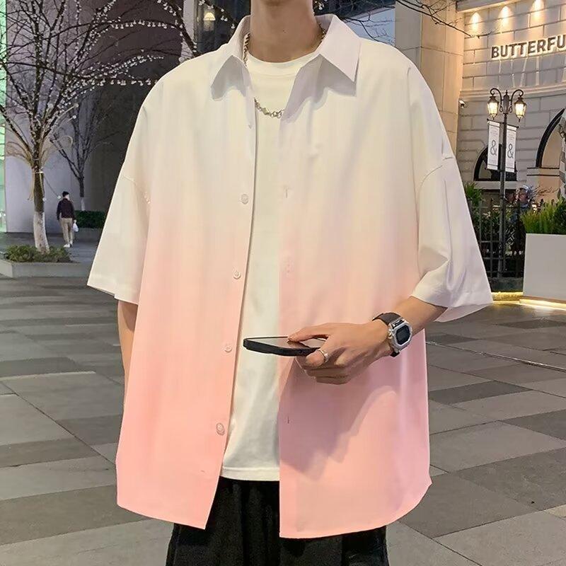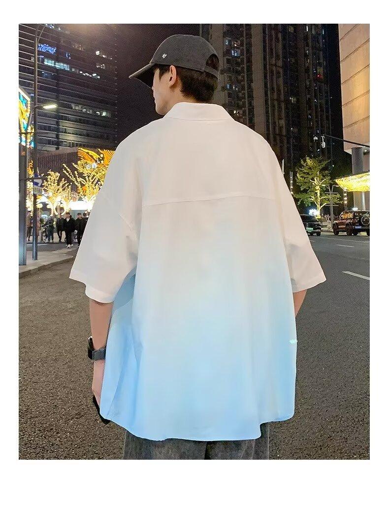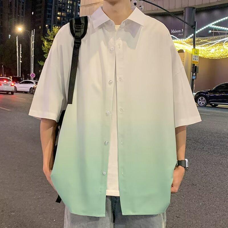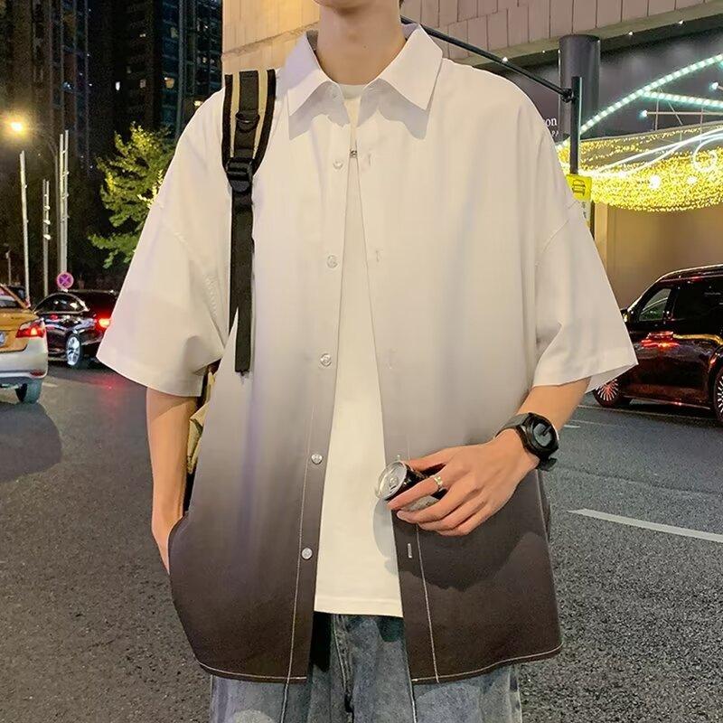 Camisa de manga corta de seda de hielo para hombre, nueva camisa holgada informal con degradado de verano para niños y adolescentes, abrigo de verano a la moda