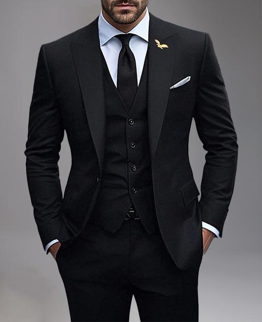 Traje Nuevo para Hombre traje de Tres Piezas Personalizado de Un Botón con Cuello Barcaza Chaqueta de Traje para Hombre Color Sólido