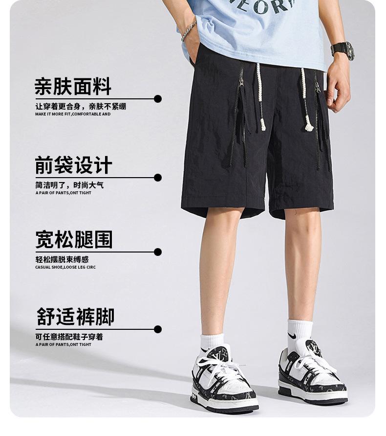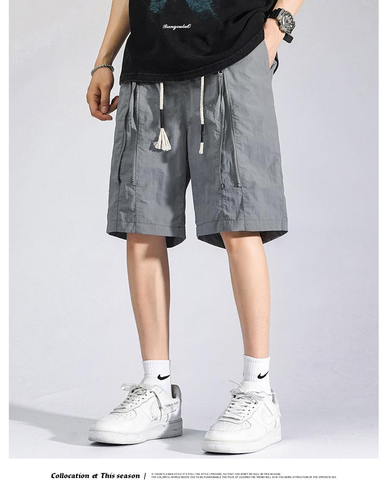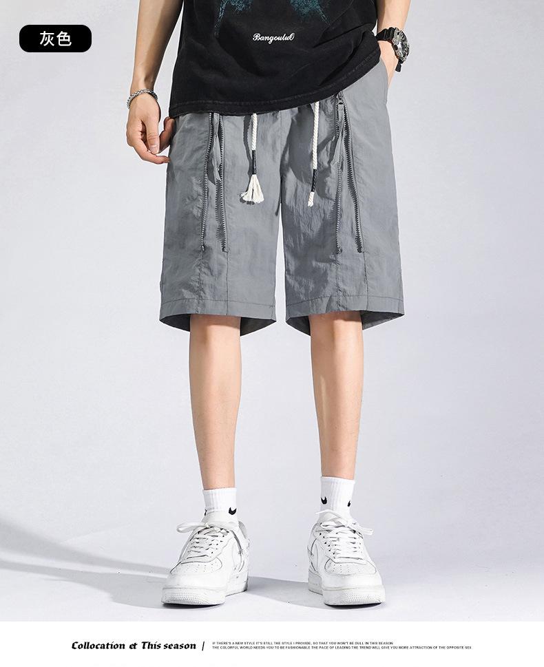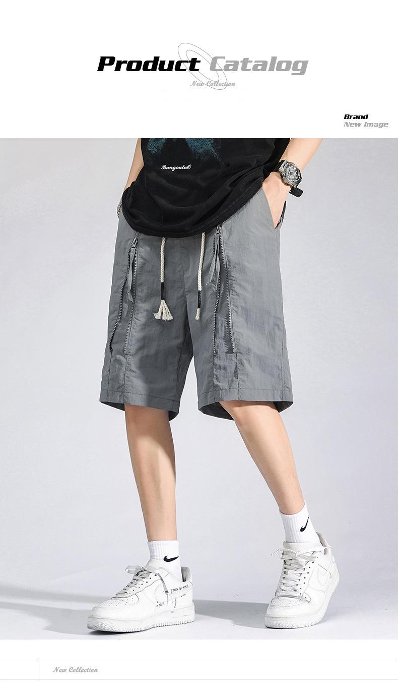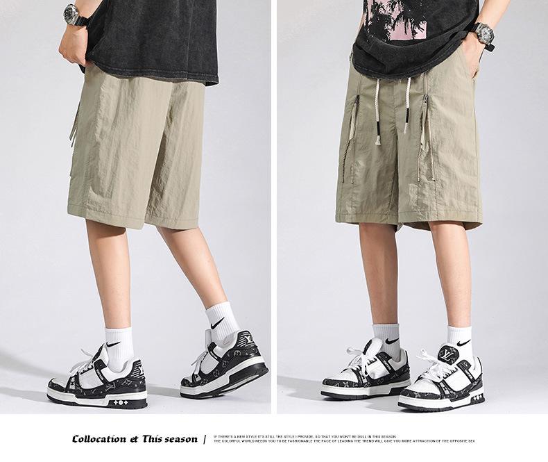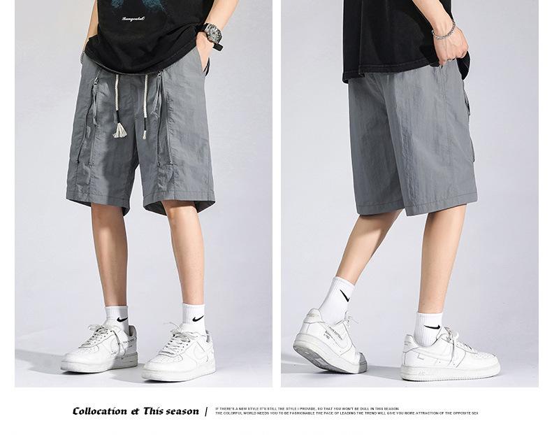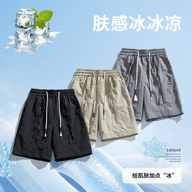 2025 Nuevo Peto Guapo para Hombre Verano Delgado Marca Trendy Suelto Recto Seda de Hielo Suelto Pantalones Cinco Puntos para Hombre