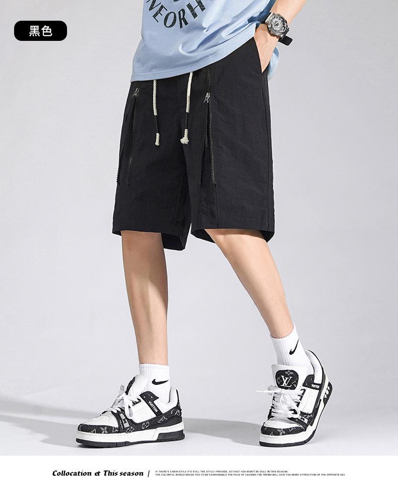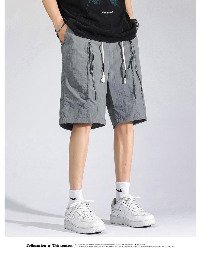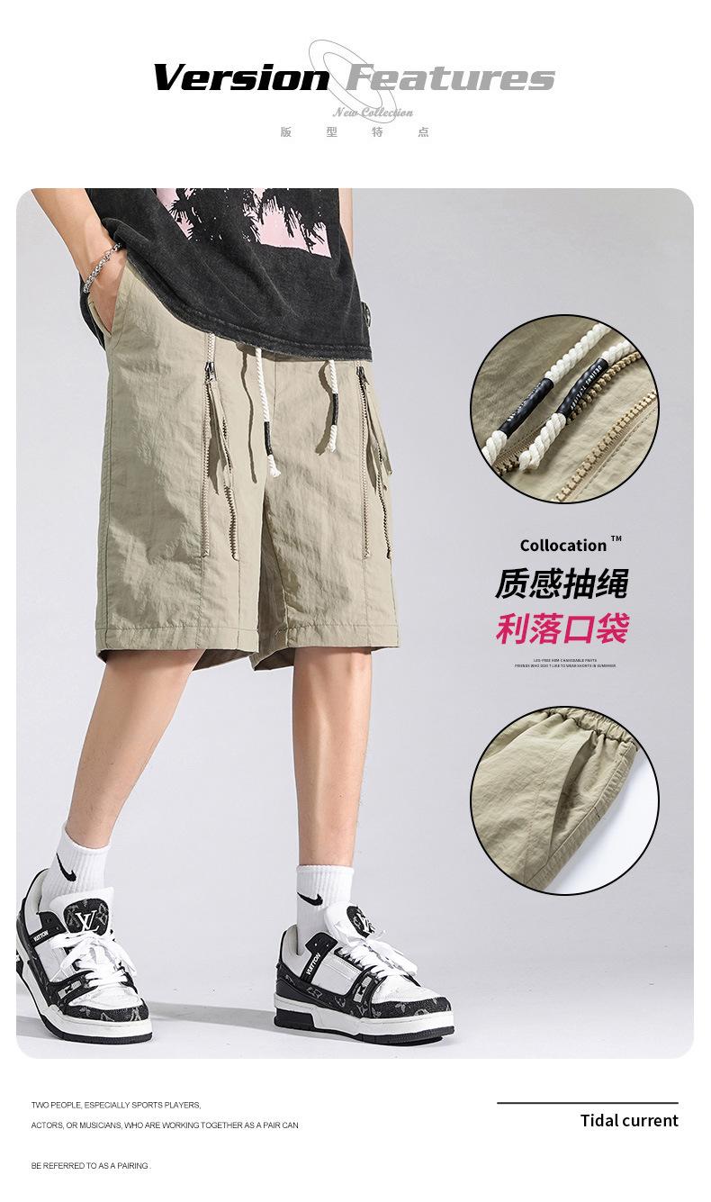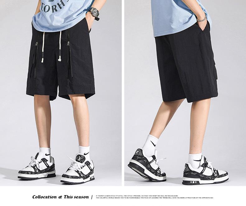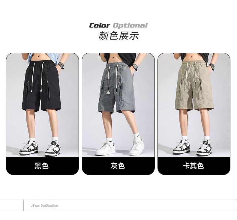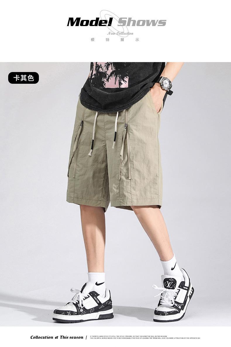 2025 Nuevo Peto Guapo para Hombre Verano Delgado Marca Trendy Suelto Recto Seda de Hielo Suelto Pantalones Cinco Puntos para Hombre