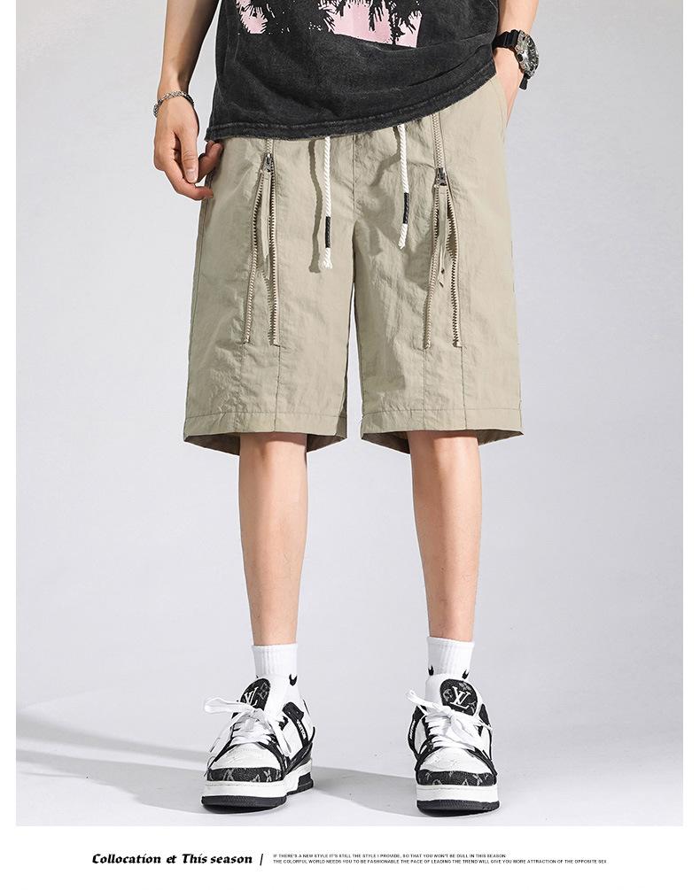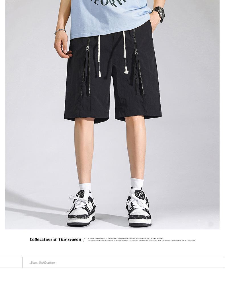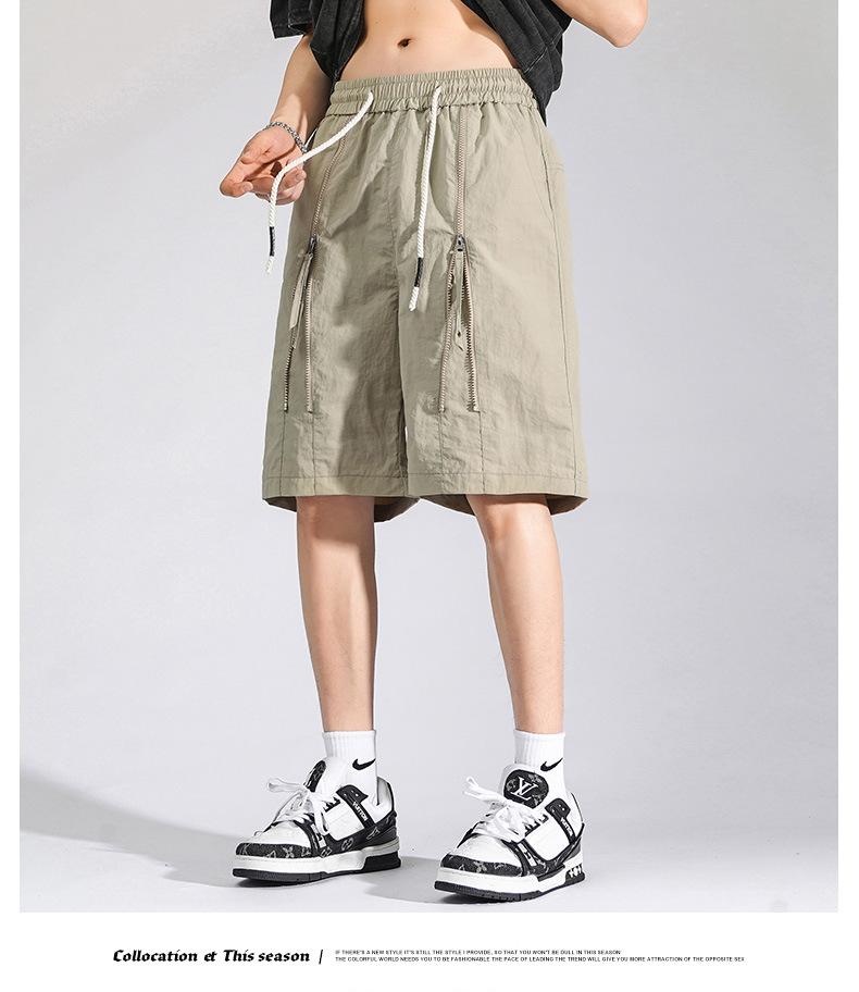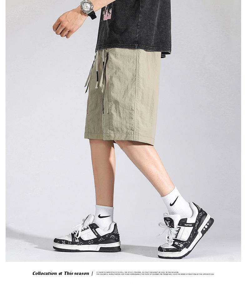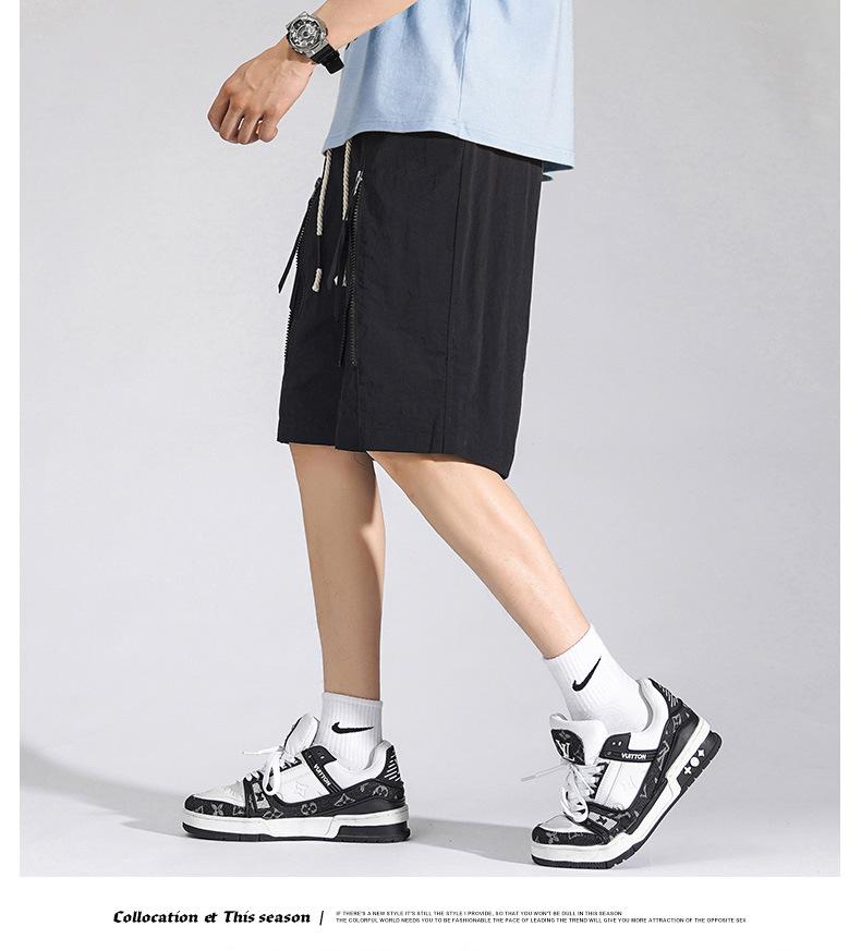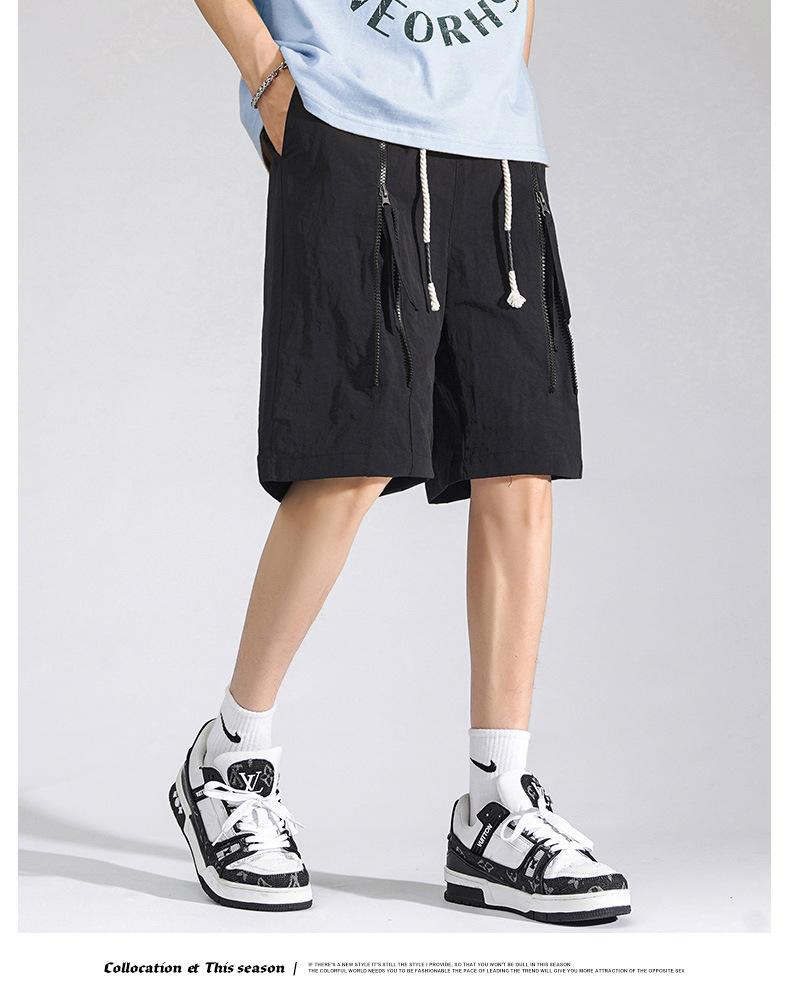 2025 Nuevo Peto Guapo para Hombre Verano Delgado Marca Trendy Suelto Recto Seda de Hielo Suelto Pantalones Cinco Puntos para Hombre