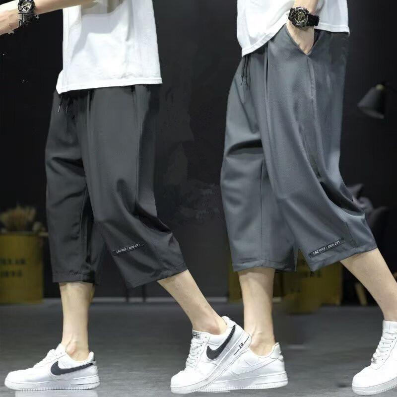 Pantalones Casuales de Verano para Hombre de Seda de Hielo Fina, Pantalones Cortos Deportivos Holgados Cargo Largo 7/8, Pantalones de Moda