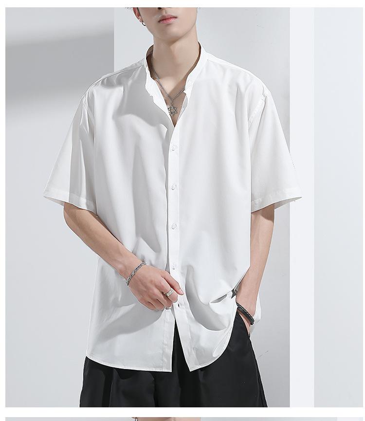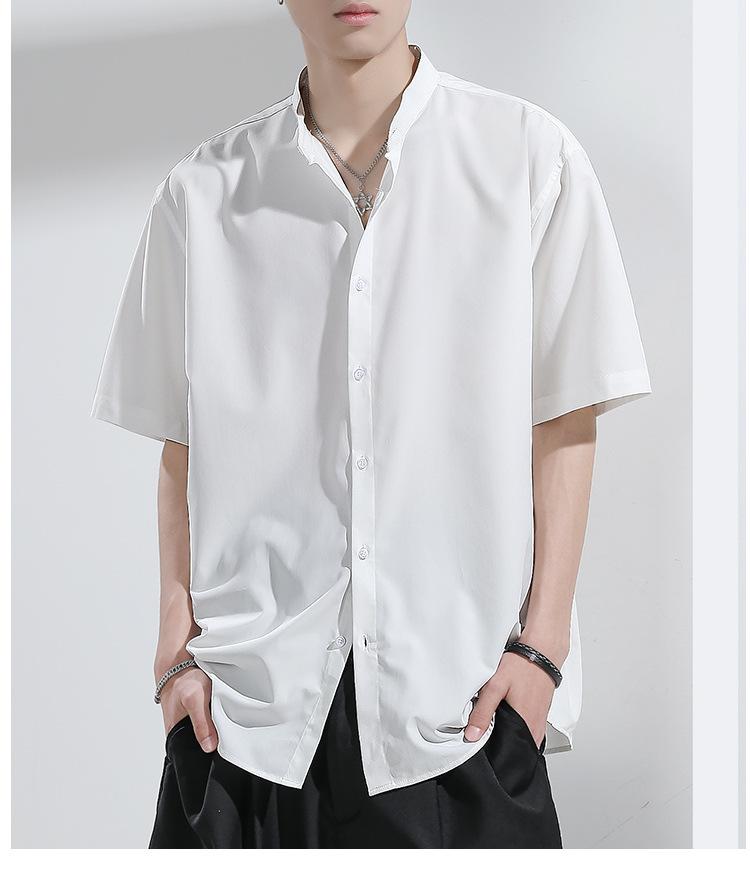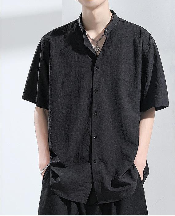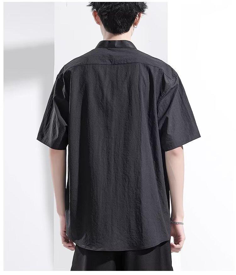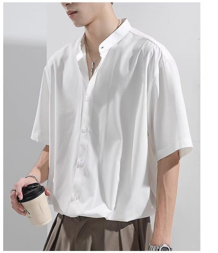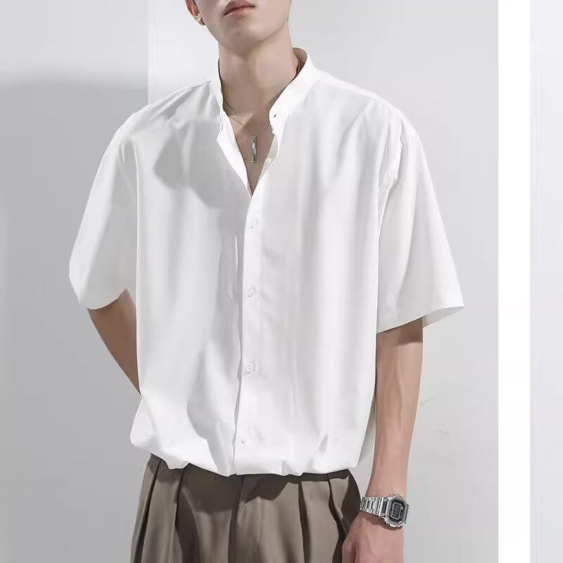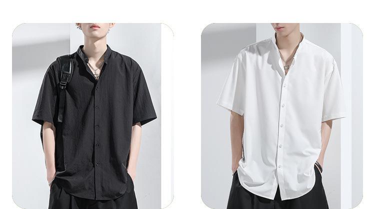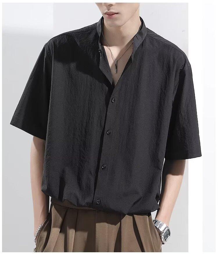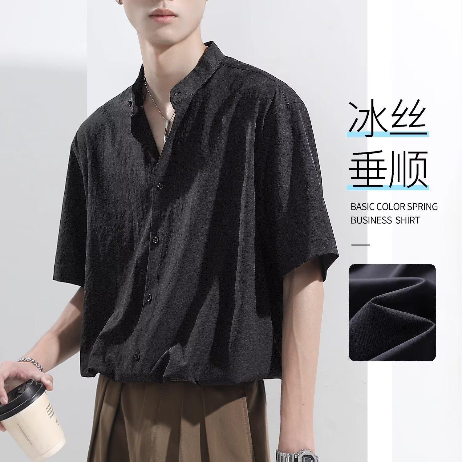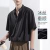 Camisa de Manga Corta de Seda de Hielo para Hombre Verano 2024 Delgada Negra Casual Talla Grande Impermeable Holgada de Alta Gama Camisa Pulgada