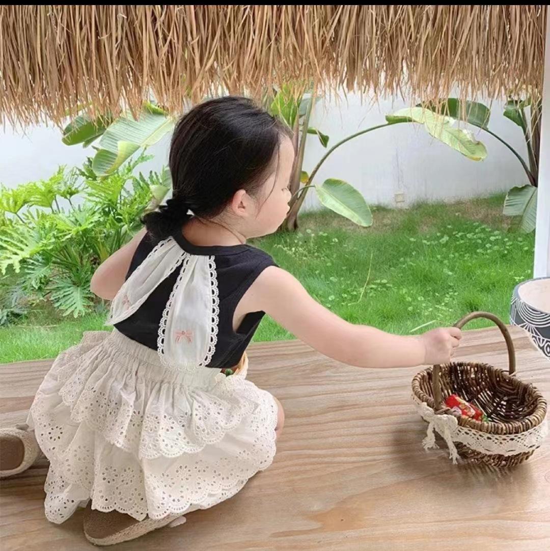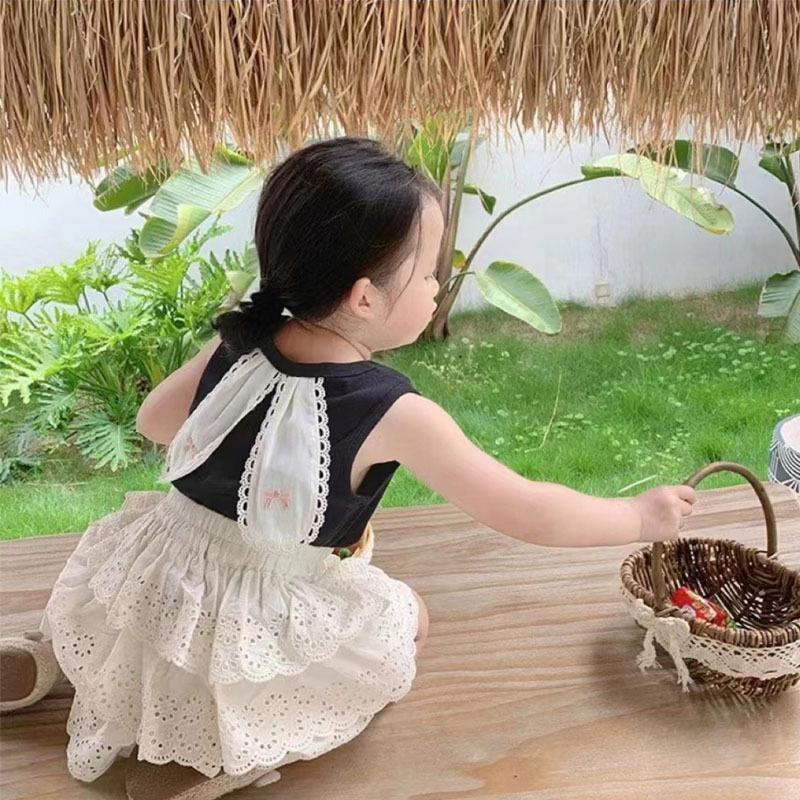 Traje para Niñas Verano Nuevo 2025 Traje de Verano para Bebé Niña Conjunto de Dos Piezas sin Mangas a la Moda Ropa Infantil de Moda para Celebridades de Internet