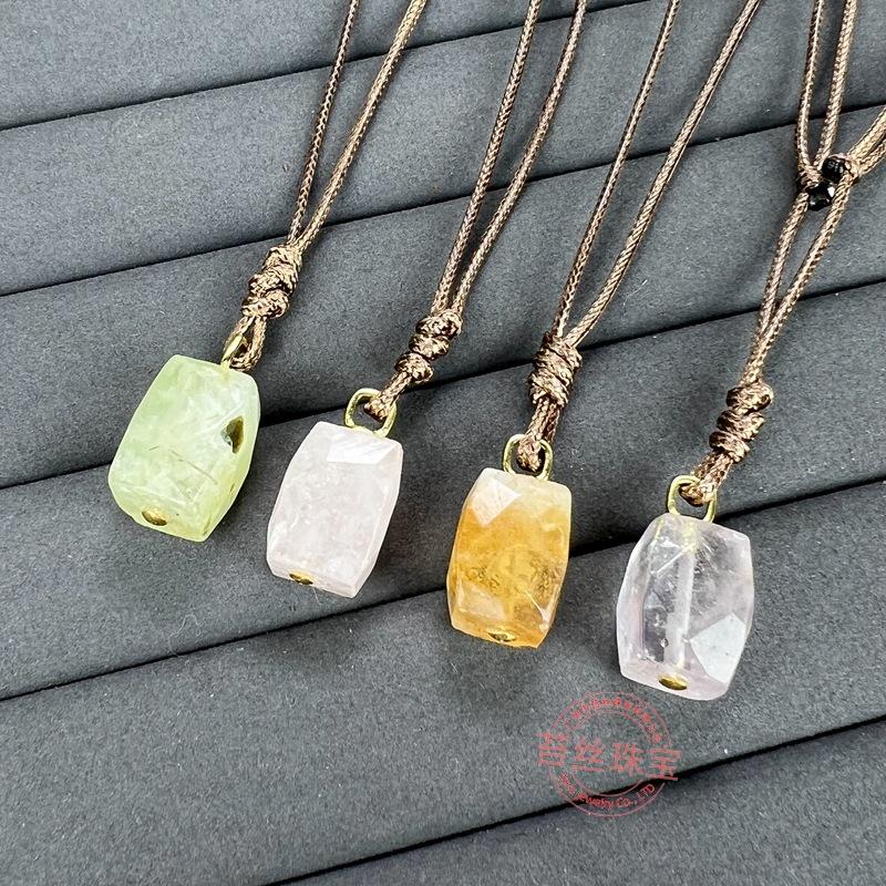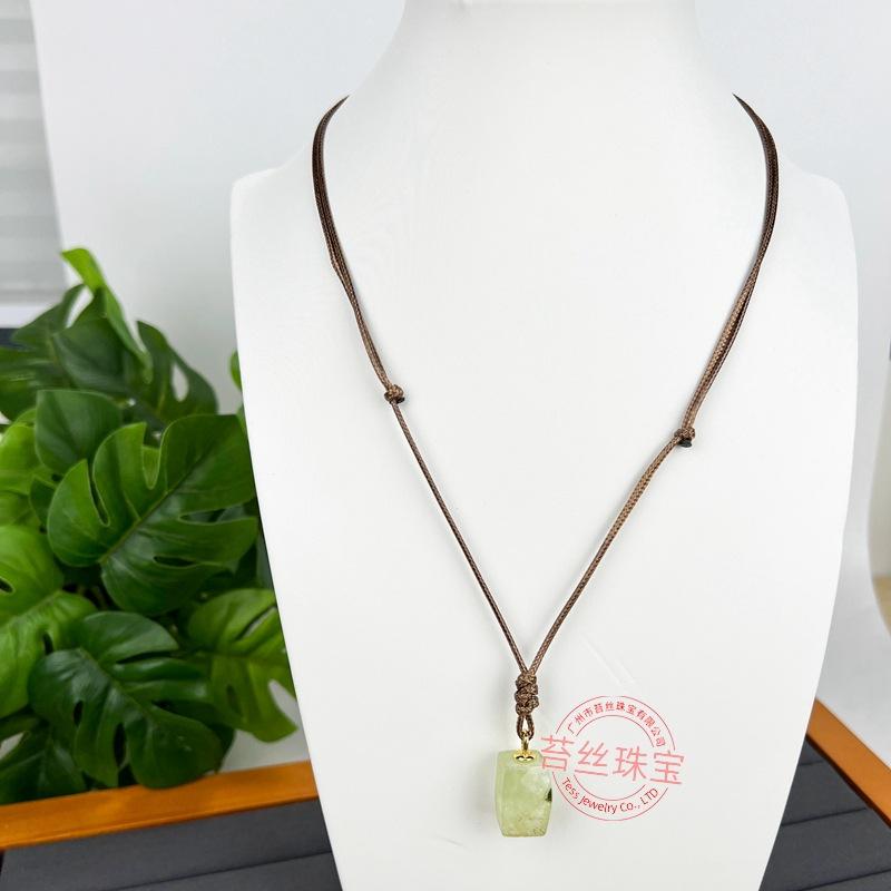 Collar de Cuerda Trenzada Cuadrada Pequeña de Prehnita de Piedra Semipreciosa de Cristal Natural Transfronterizo para Mujer al Por Mayor