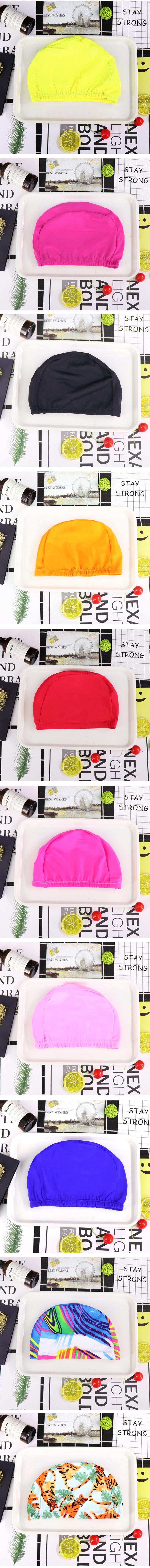 [Nylon Spandex] Gorro de Natación de Tela para Hombres y Mujeres, Color Negro Universal Color Puro No Elástico Gorro de Natación para Adultos al Mayoreo