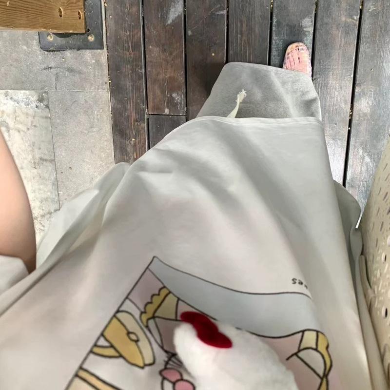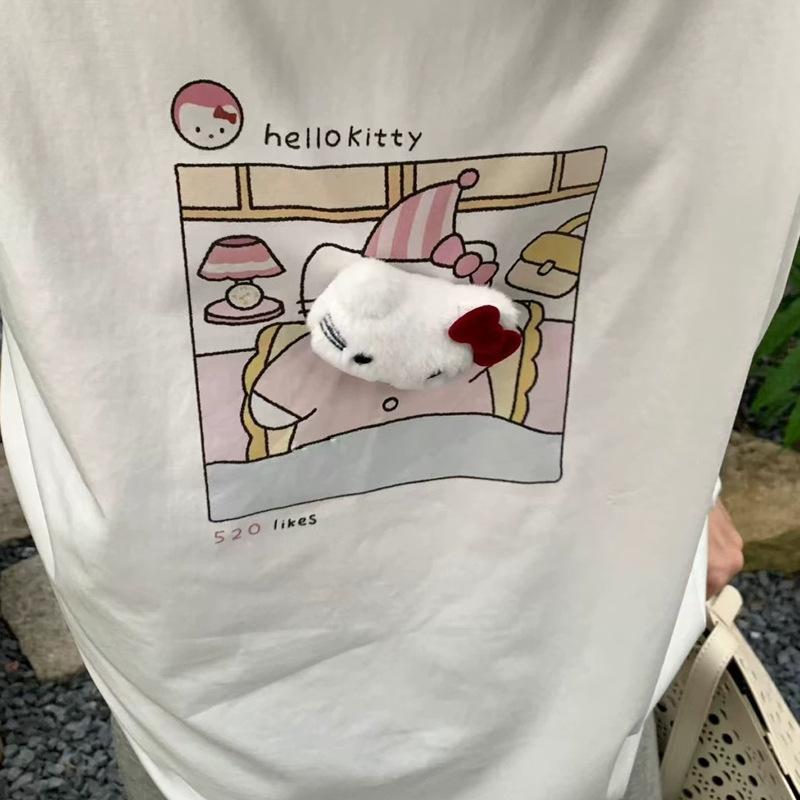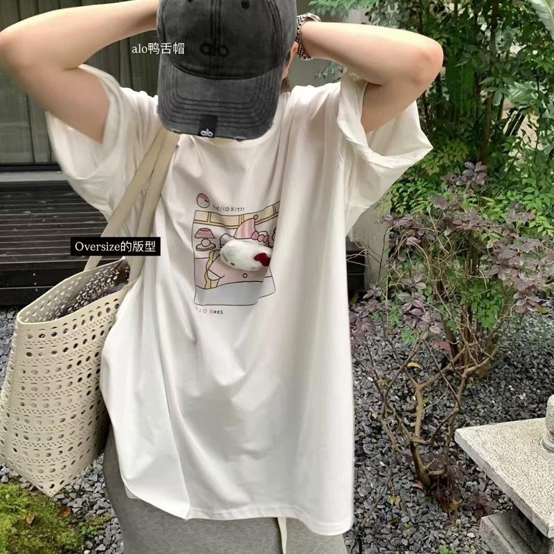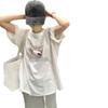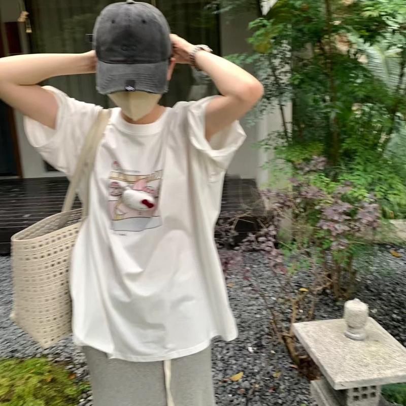 2025 Nueva Camiseta de Verano para Mujer Holgada Casual Estilo Perezoso con Estampado de Dibujos Animados Top de Algodón Puro con Accesorios