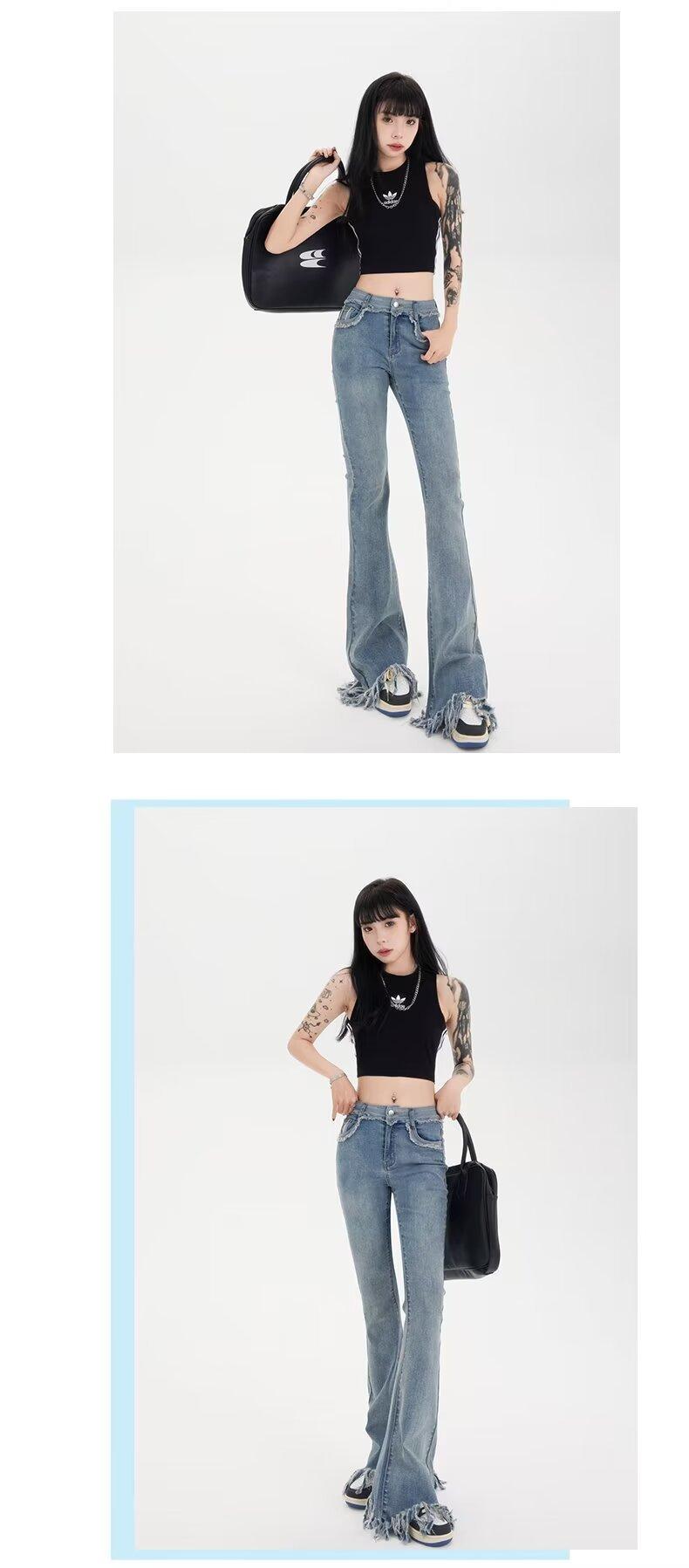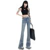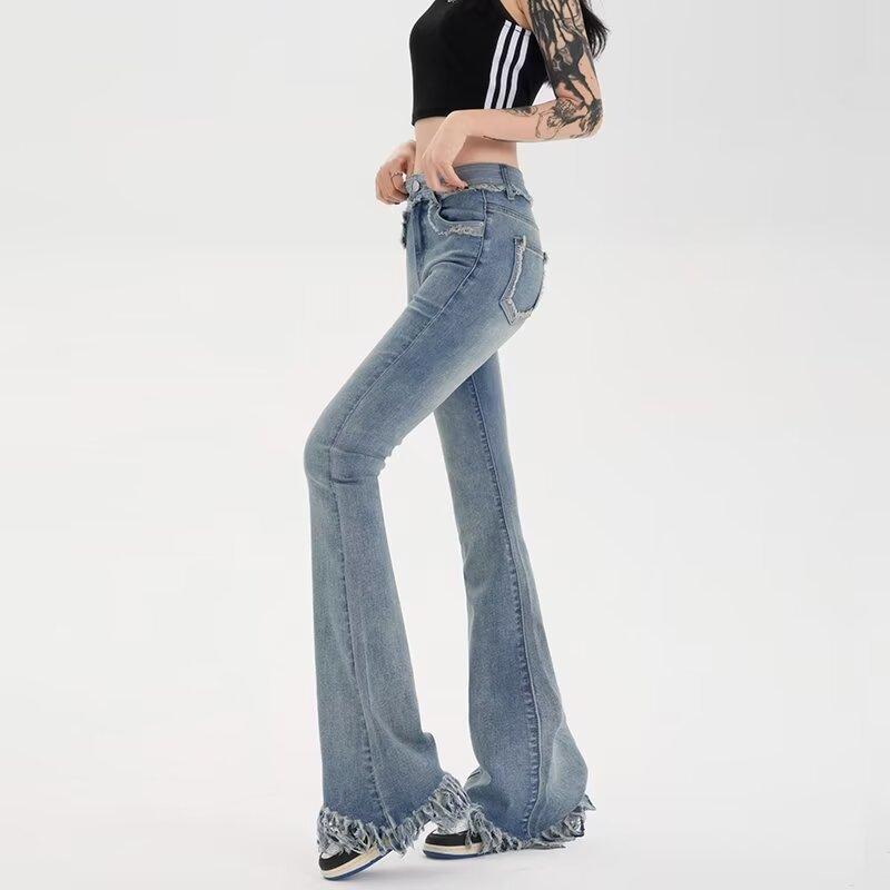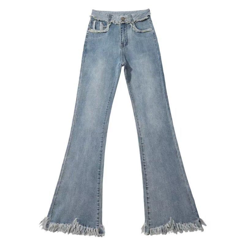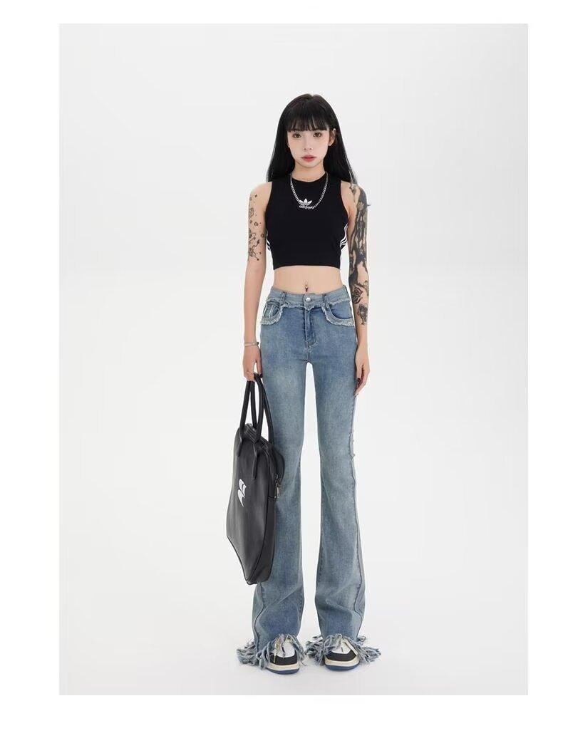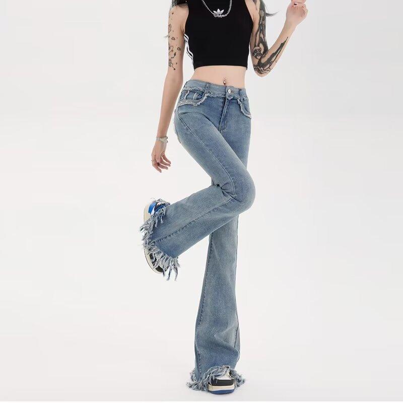 Jeans Bootcut de Orilla Cruda para Mujer Verano Delgados 2025 Nuevo Cintura Alta Look Adelgazante Petite Pantalones Acampanados de Herradura