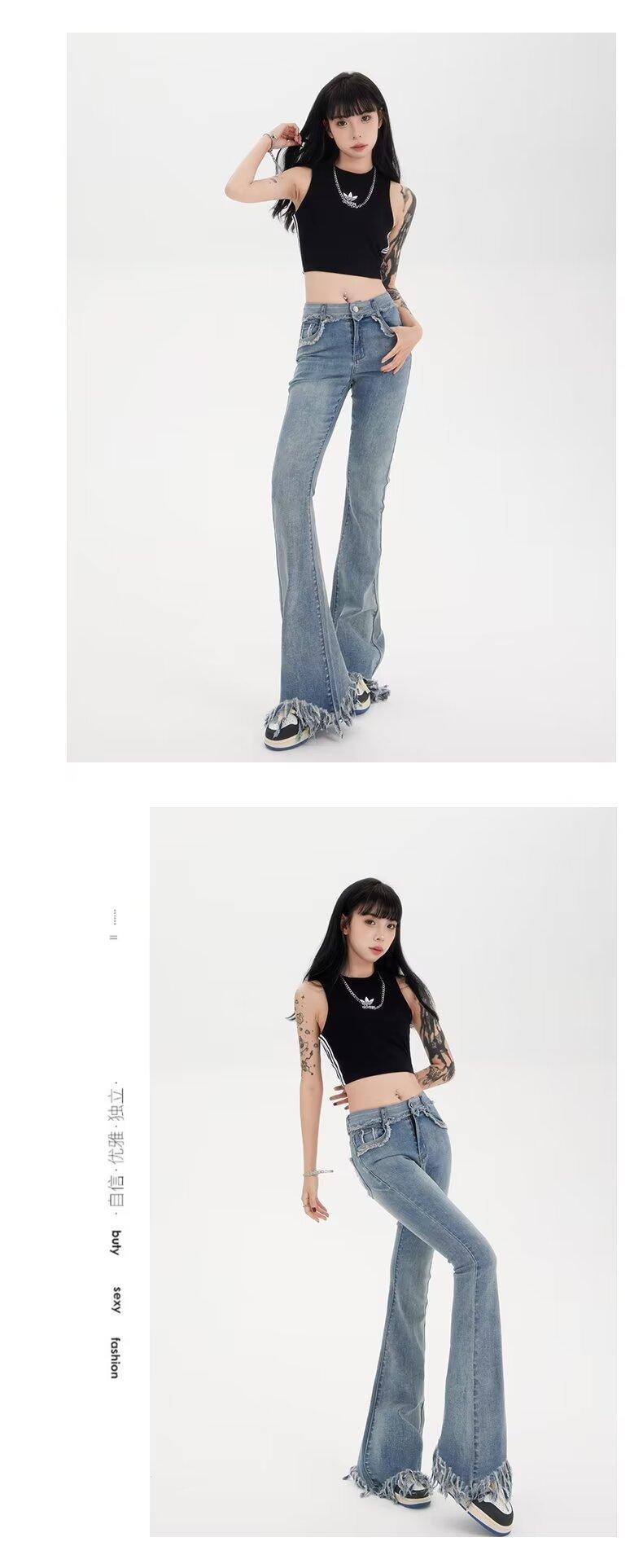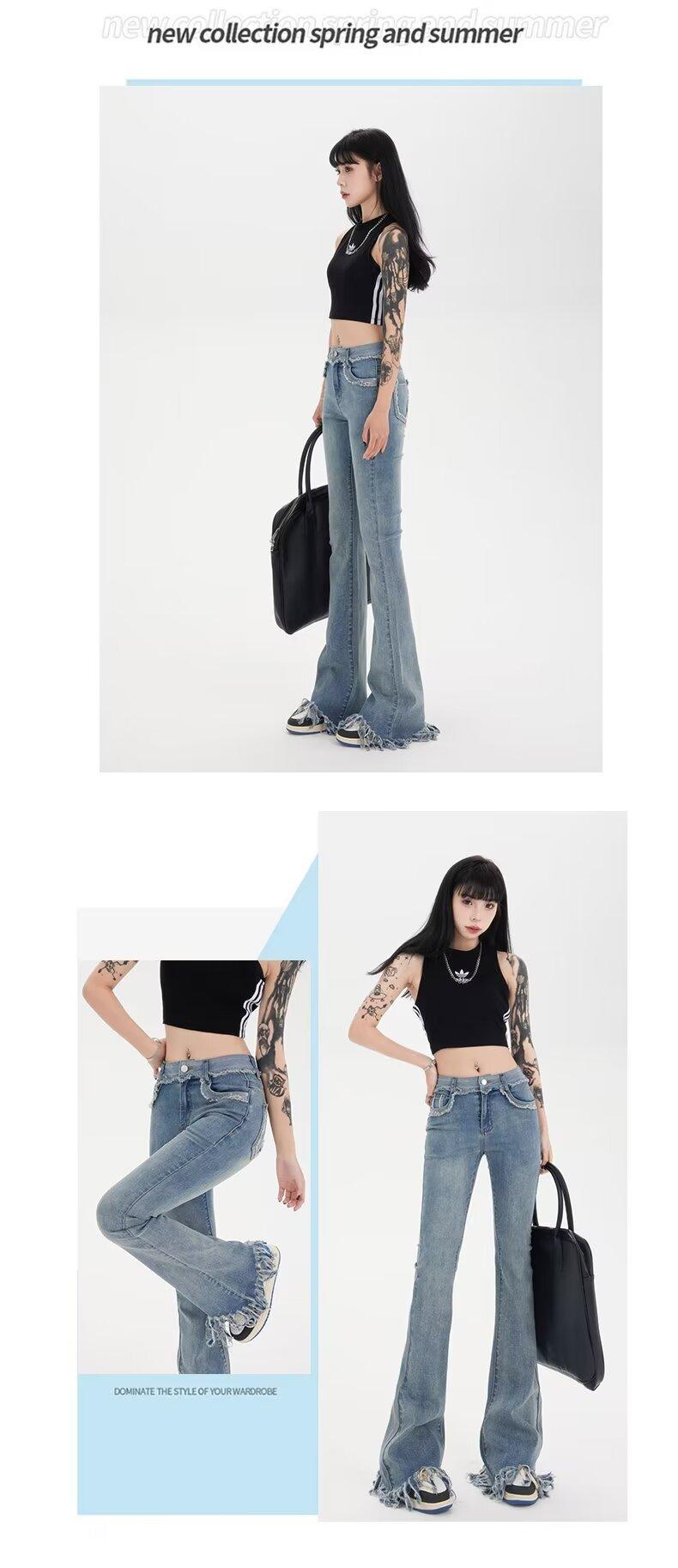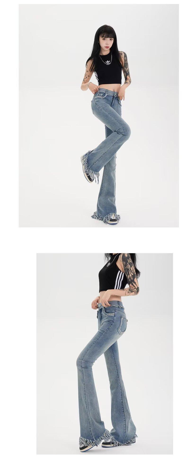 Jeans Bootcut de Orilla Cruda para Mujer Verano Delgados 2025 Nuevo Cintura Alta Look Adelgazante Petite Pantalones Acampanados de Herradura