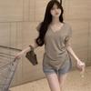 Playera de Maternidad Casual de Verano de Manga Corta Top de Moda con Aspecto Adelgazante Cubre Suelto la Barriga No Muestra el Embarazo Playera Base Algodón