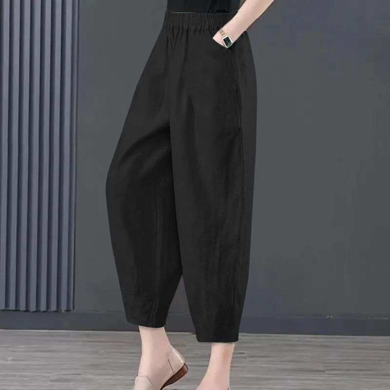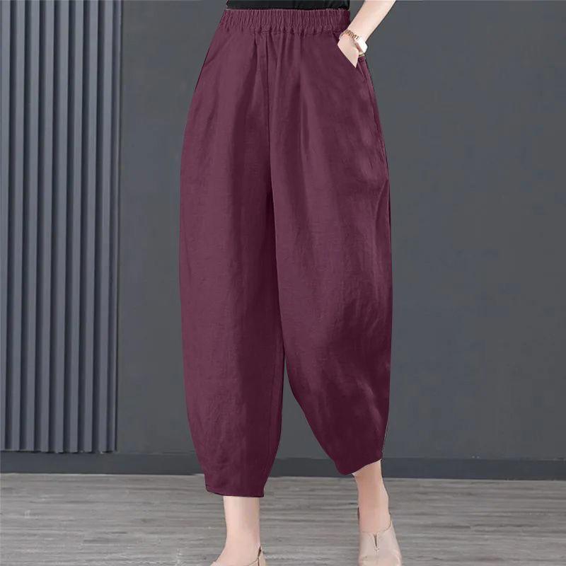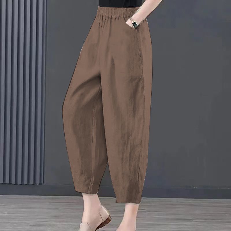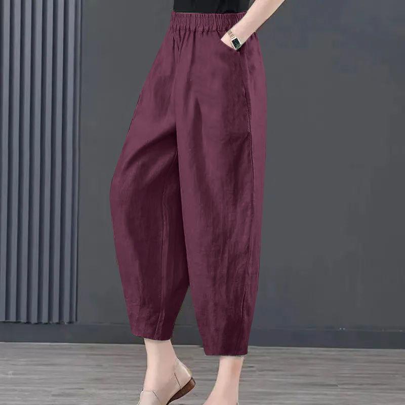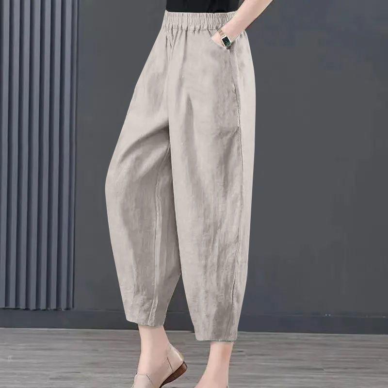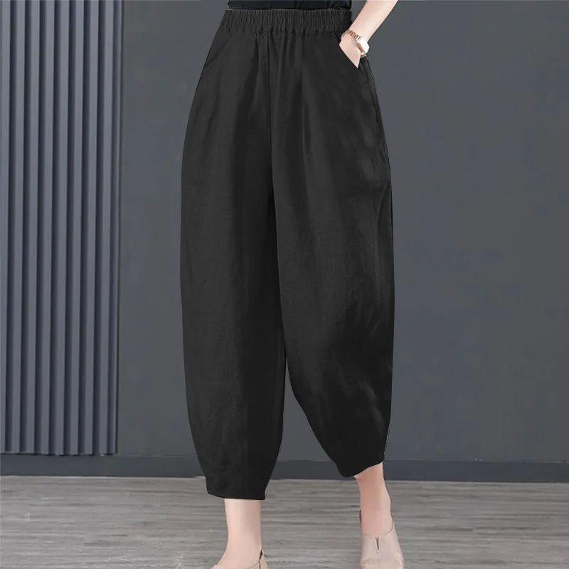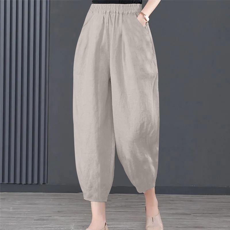 Pantalones Cortos de Lino de Algodón Seda de Hielo para Mujer, Pantalones Rectos Elásticos de Cintura Alta con Caída, Verano 2025, Pantalones Holgados Harem