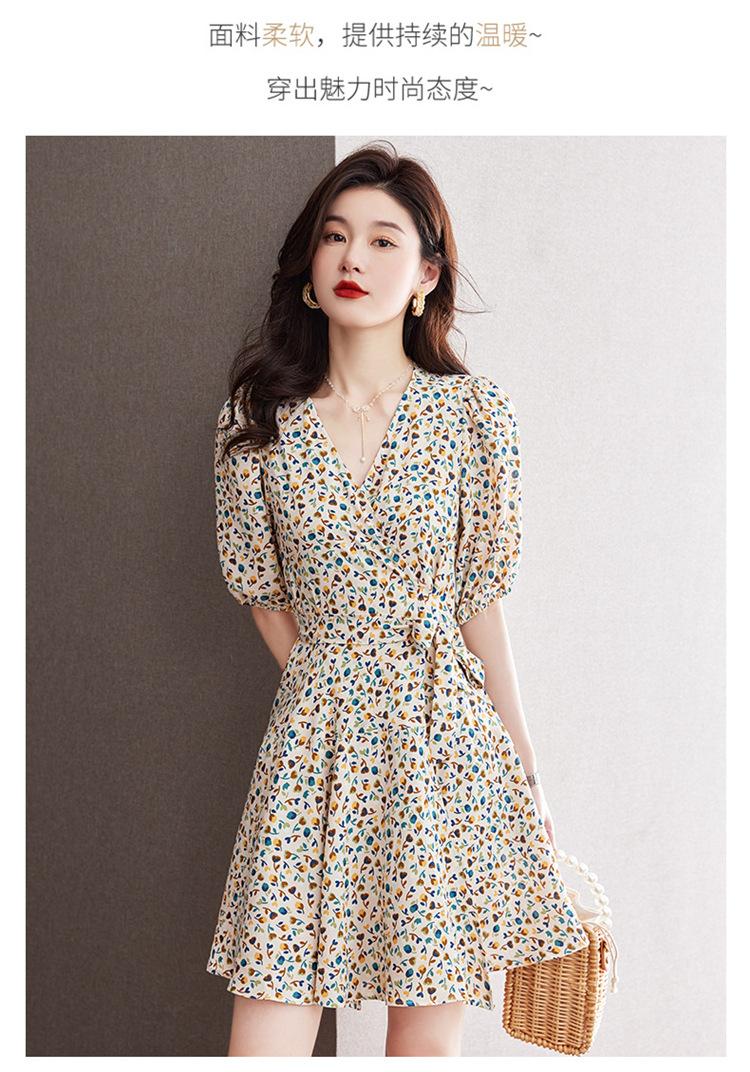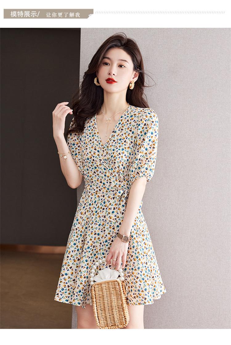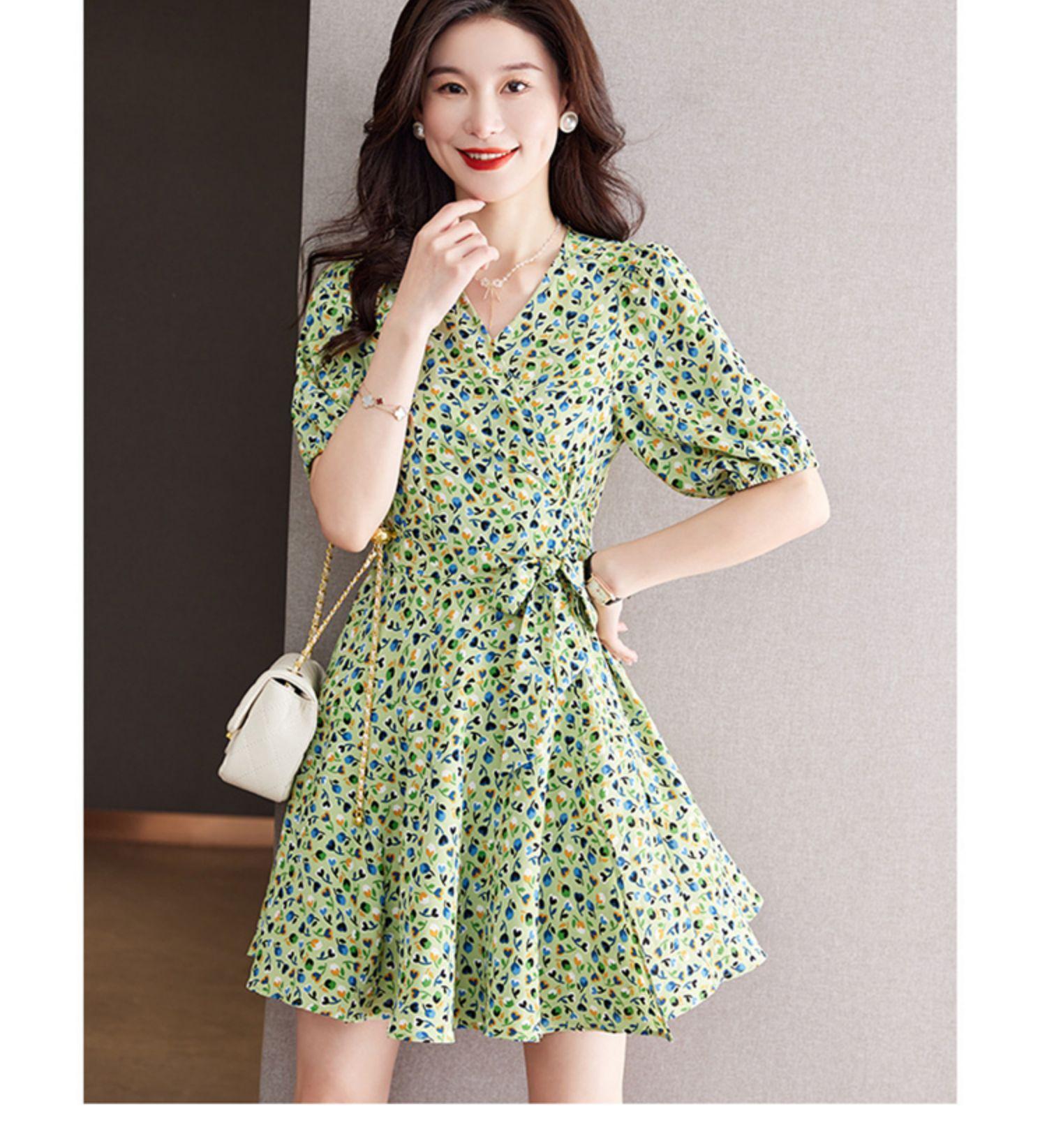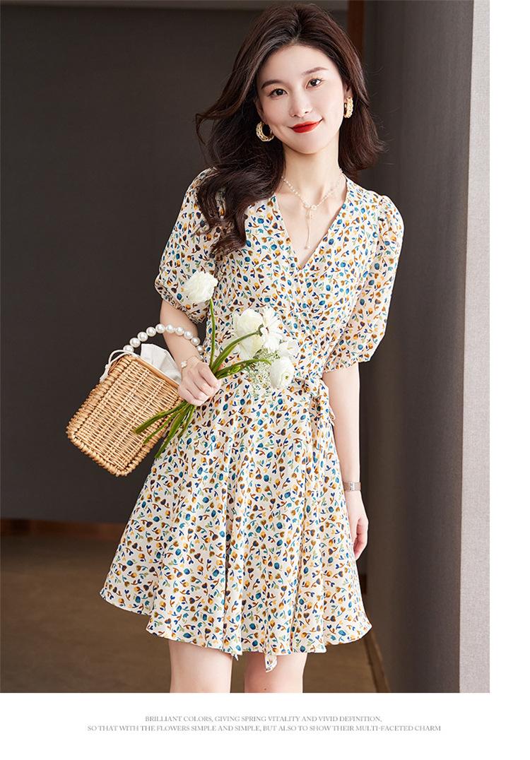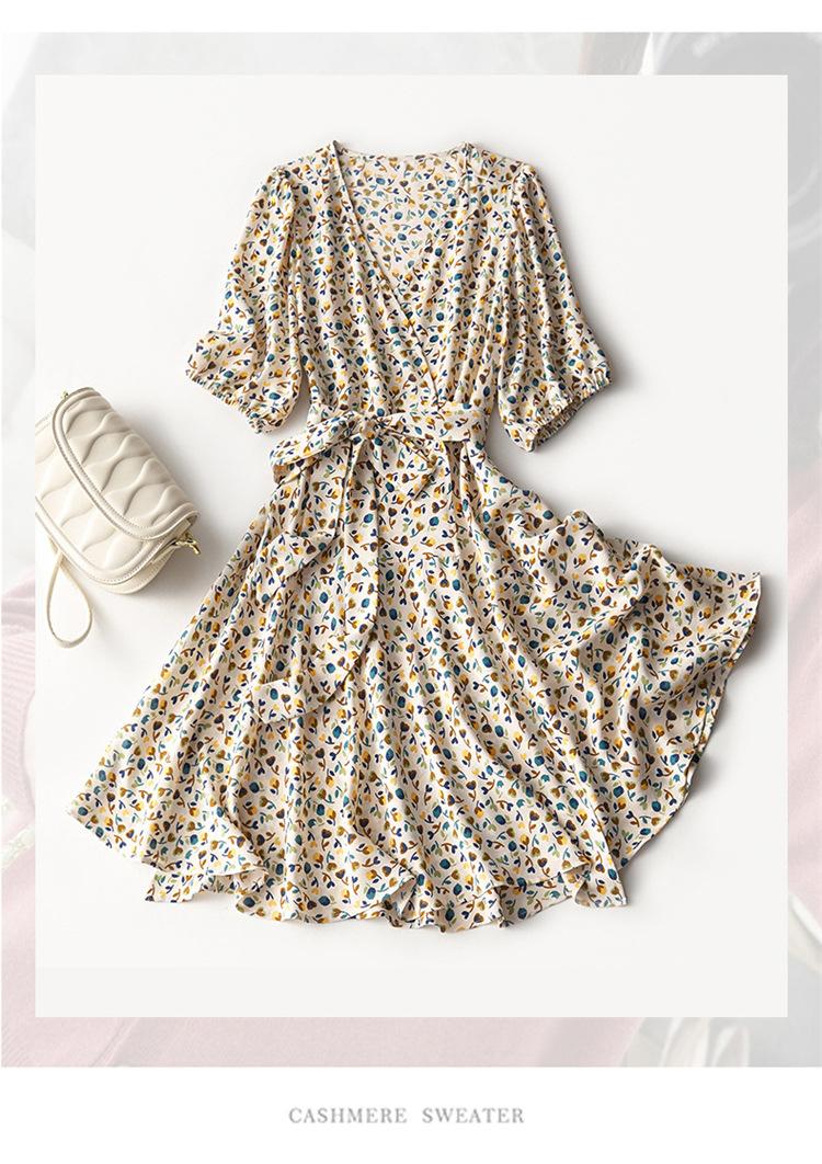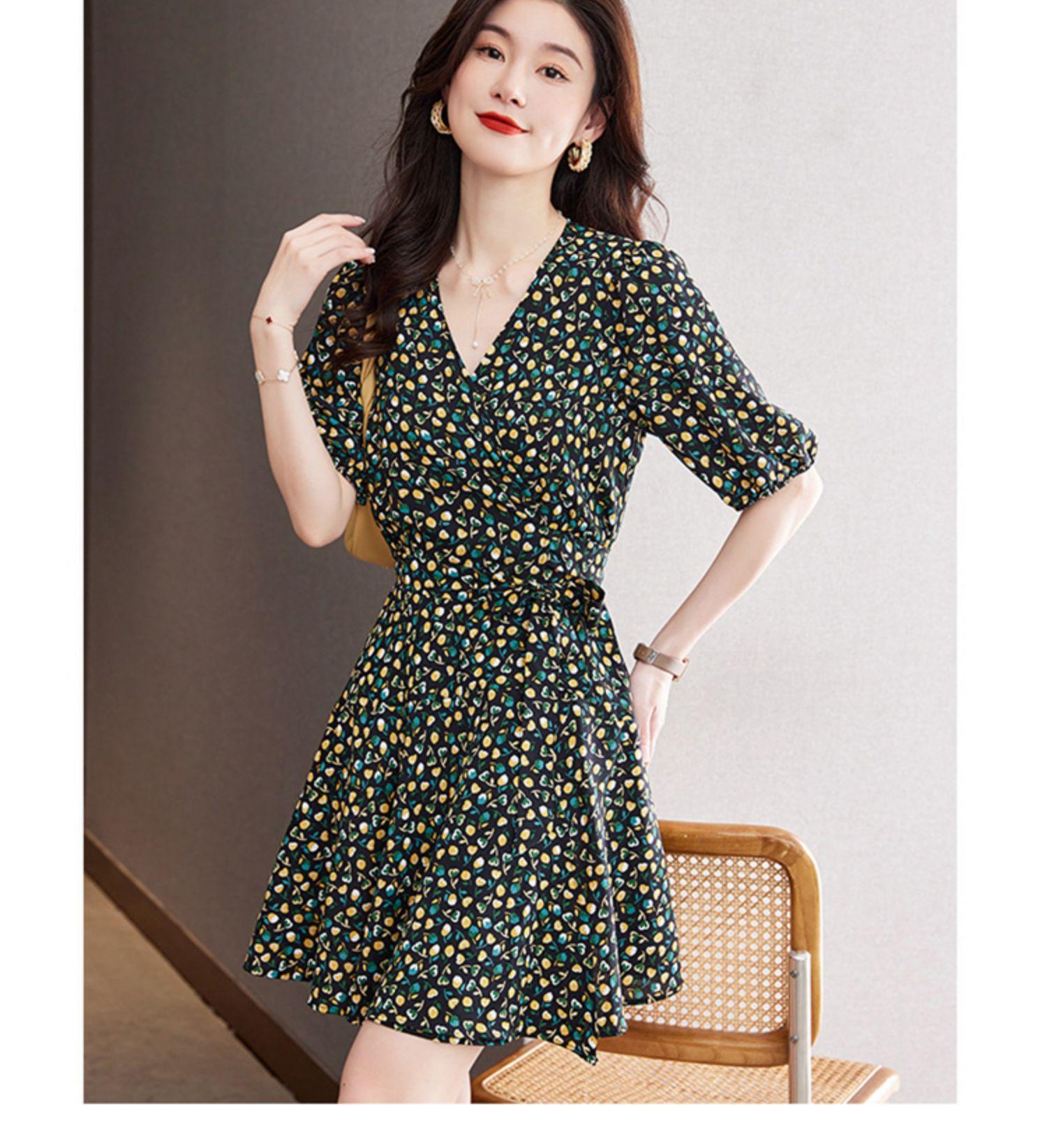 Compra Vestido Floral de Seda de Verano con Cuello en V de Una Pieza para Mujeres Pequeñas Corte A Adelgazante Cintura Falda al por mayor en Joom.pro