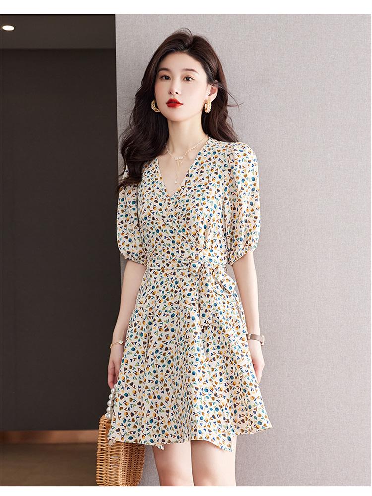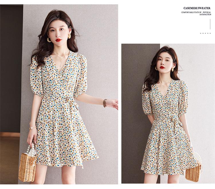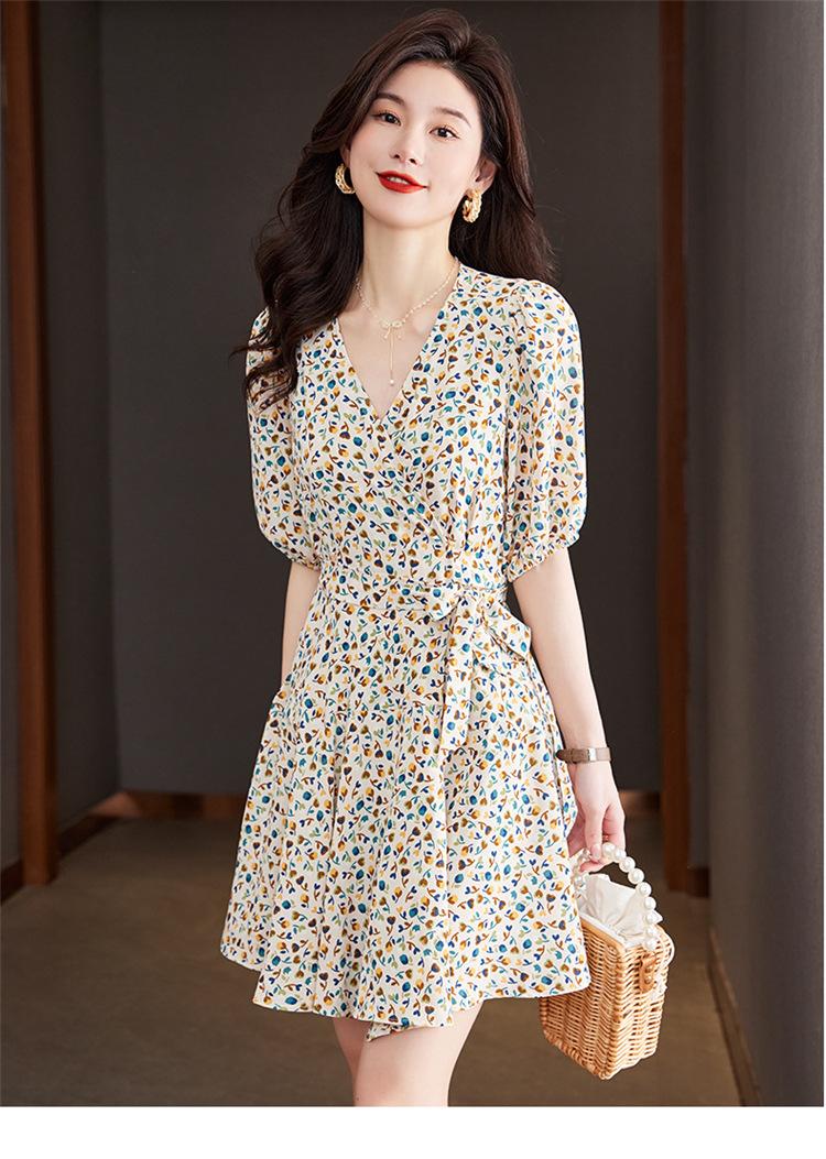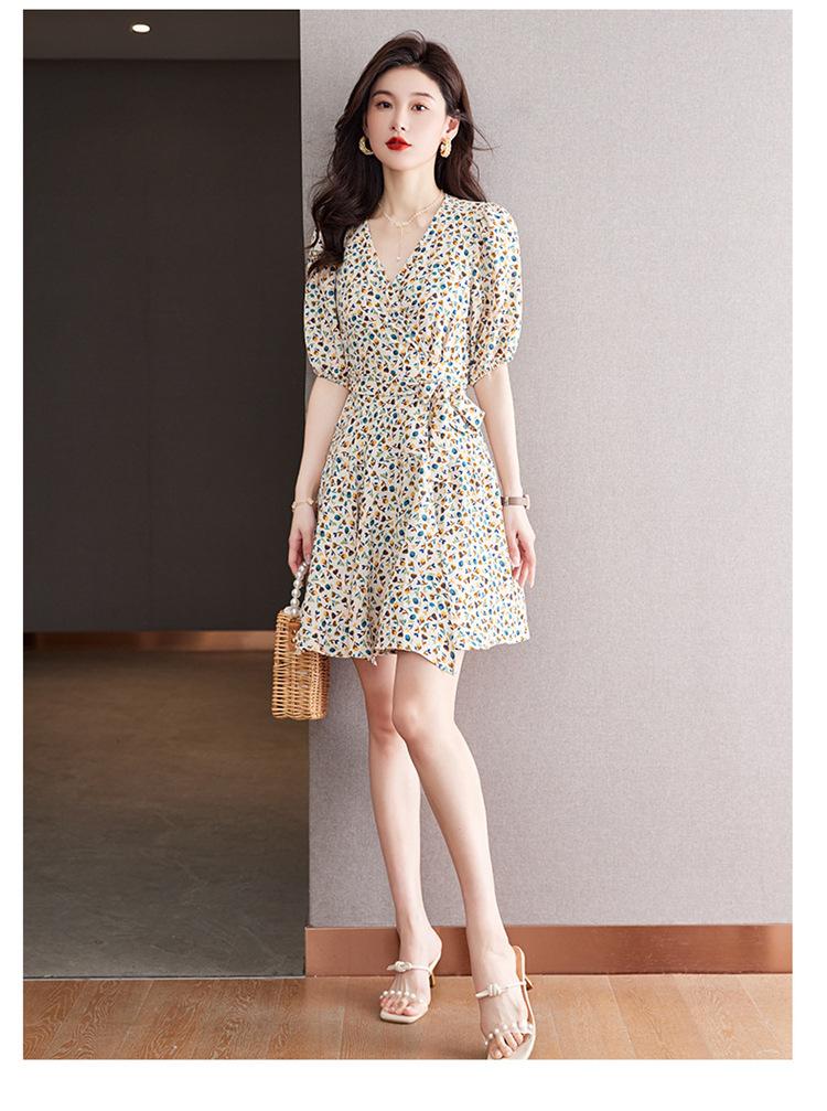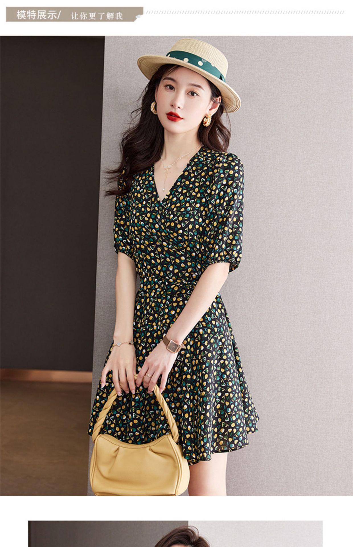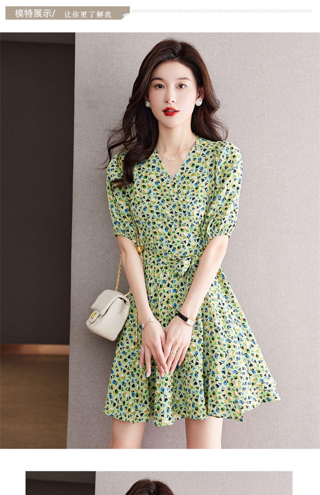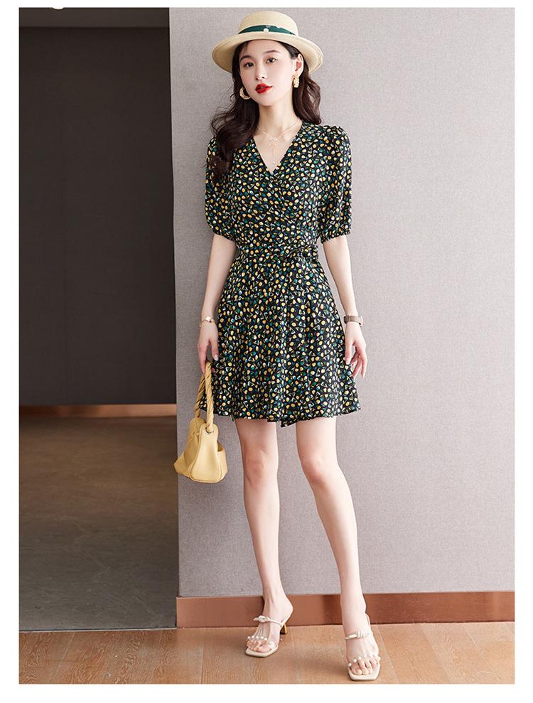 Compra Vestido Floral de Seda de Verano con Cuello en V de Una Pieza para Mujeres Pequeñas Corte A Adelgazante Cintura Falda al por mayor en Joom.pro