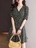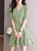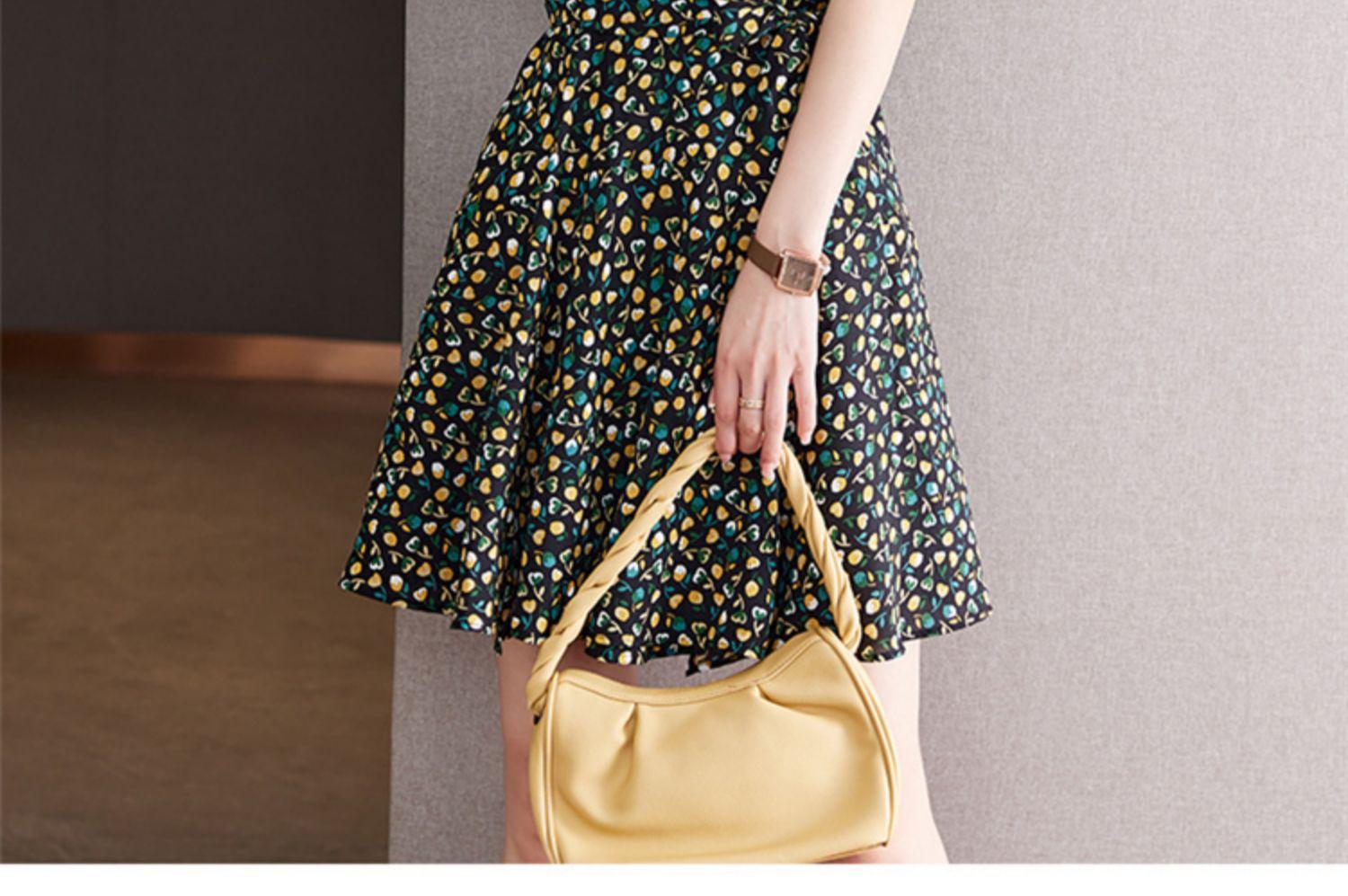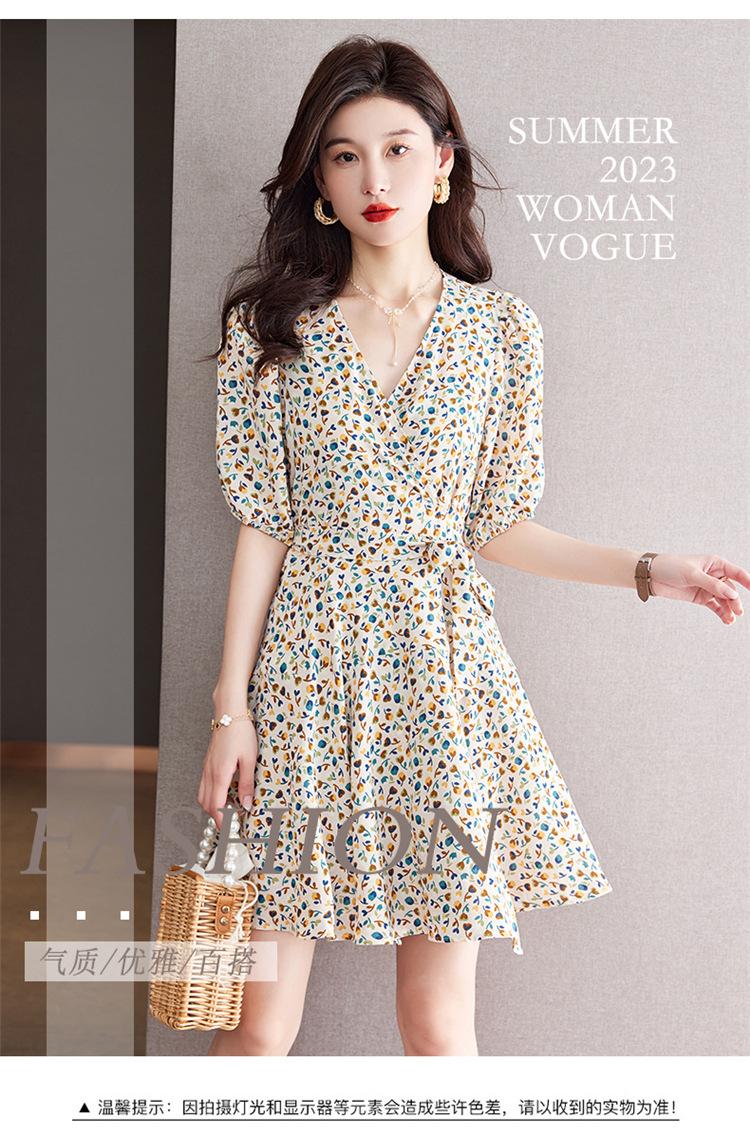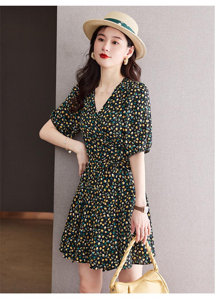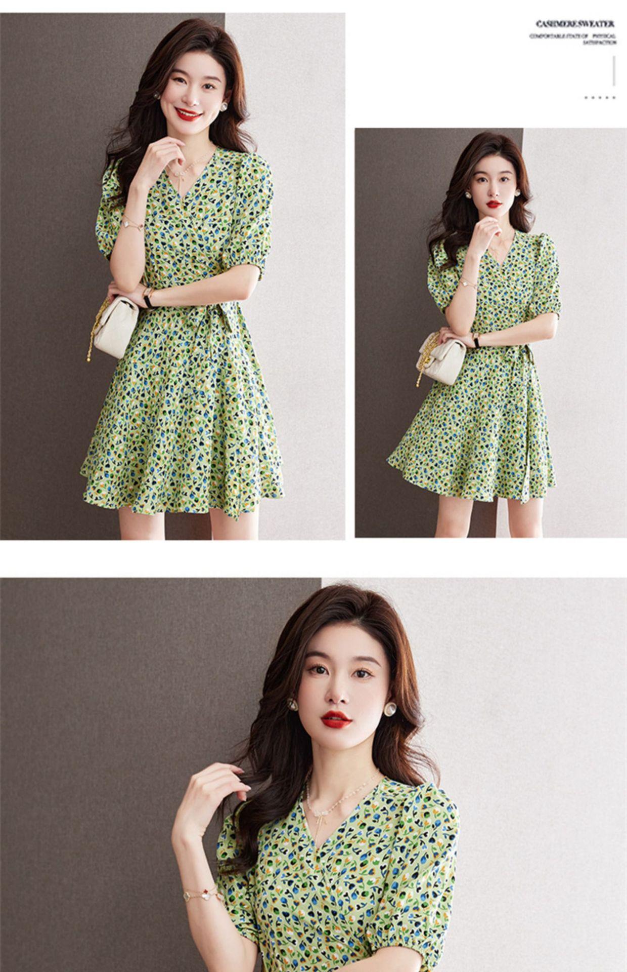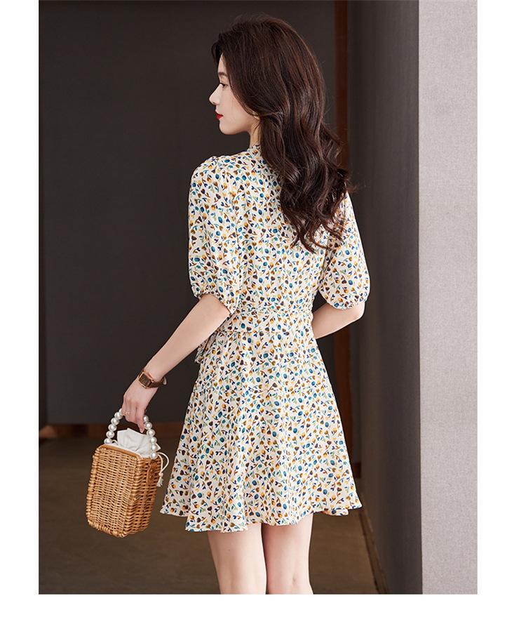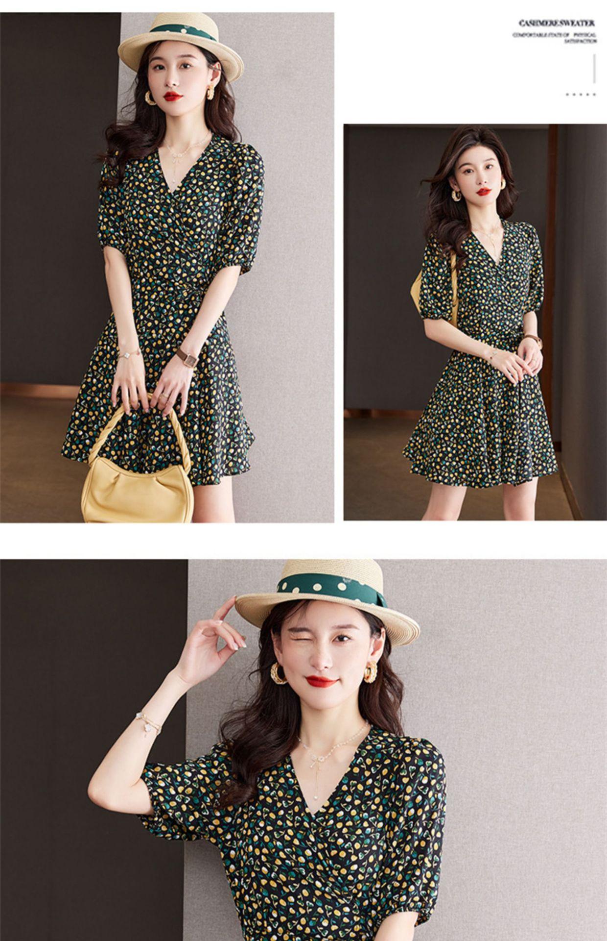 Compra Vestido Floral de Seda de Verano con Cuello en V de Una Pieza para Mujeres Pequeñas Corte A Adelgazante Cintura Falda al por mayor en Joom.pro