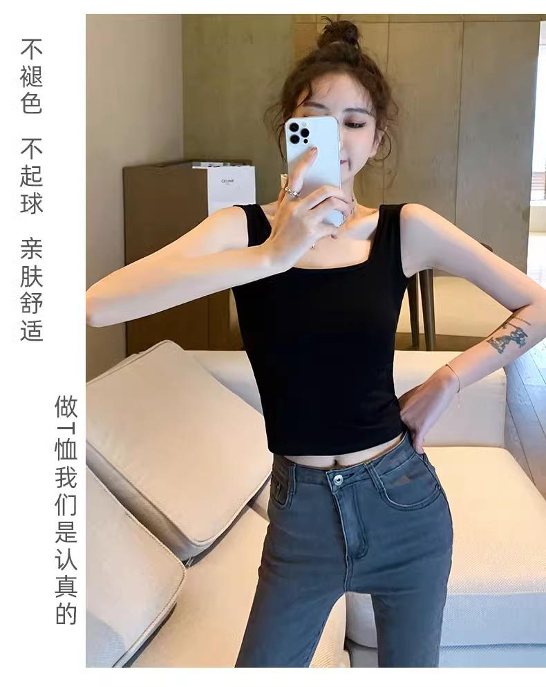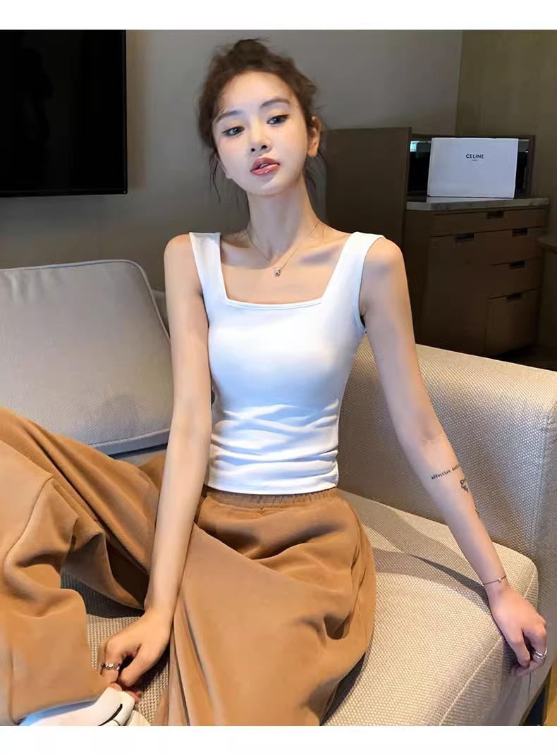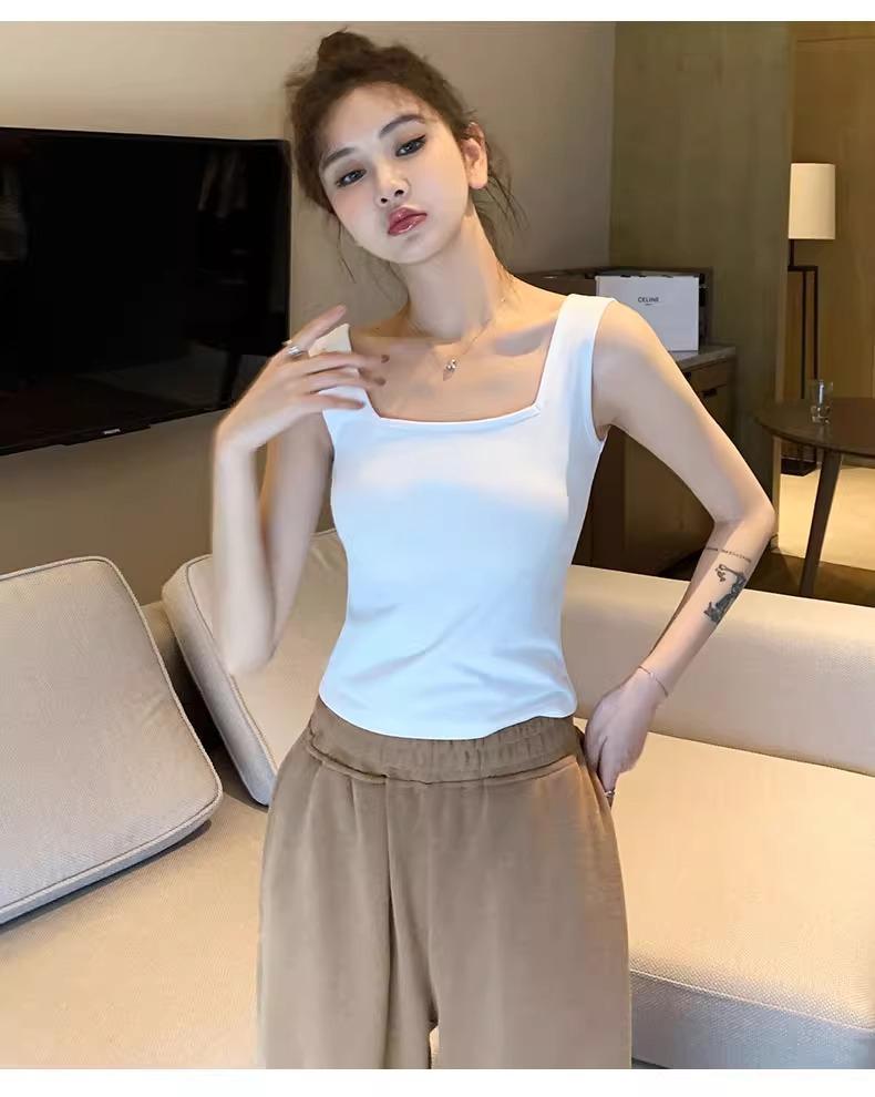 Camisola sin mangas de cuello cuadrado para cubrir los senos, tops interiores y exteriores adelgazantes, chalecos de algodón puro casuales y cómodos para mujer