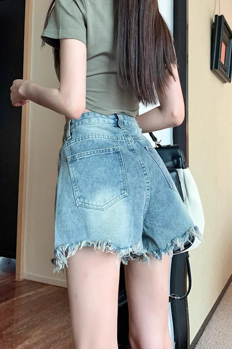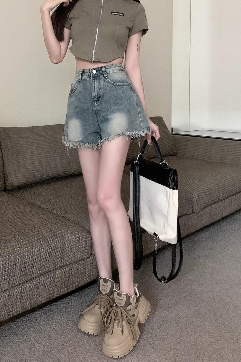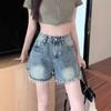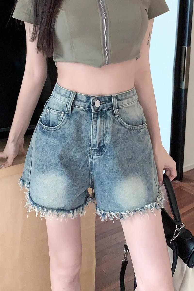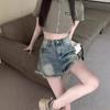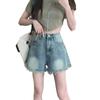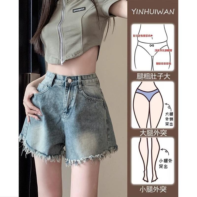 Pantalones cortos vaqueros vintage de verano para mujer, cintura alta, tallas grandes, adelgazantes, para chica gordita, con forma de pera, pantalones cortos en forma de A