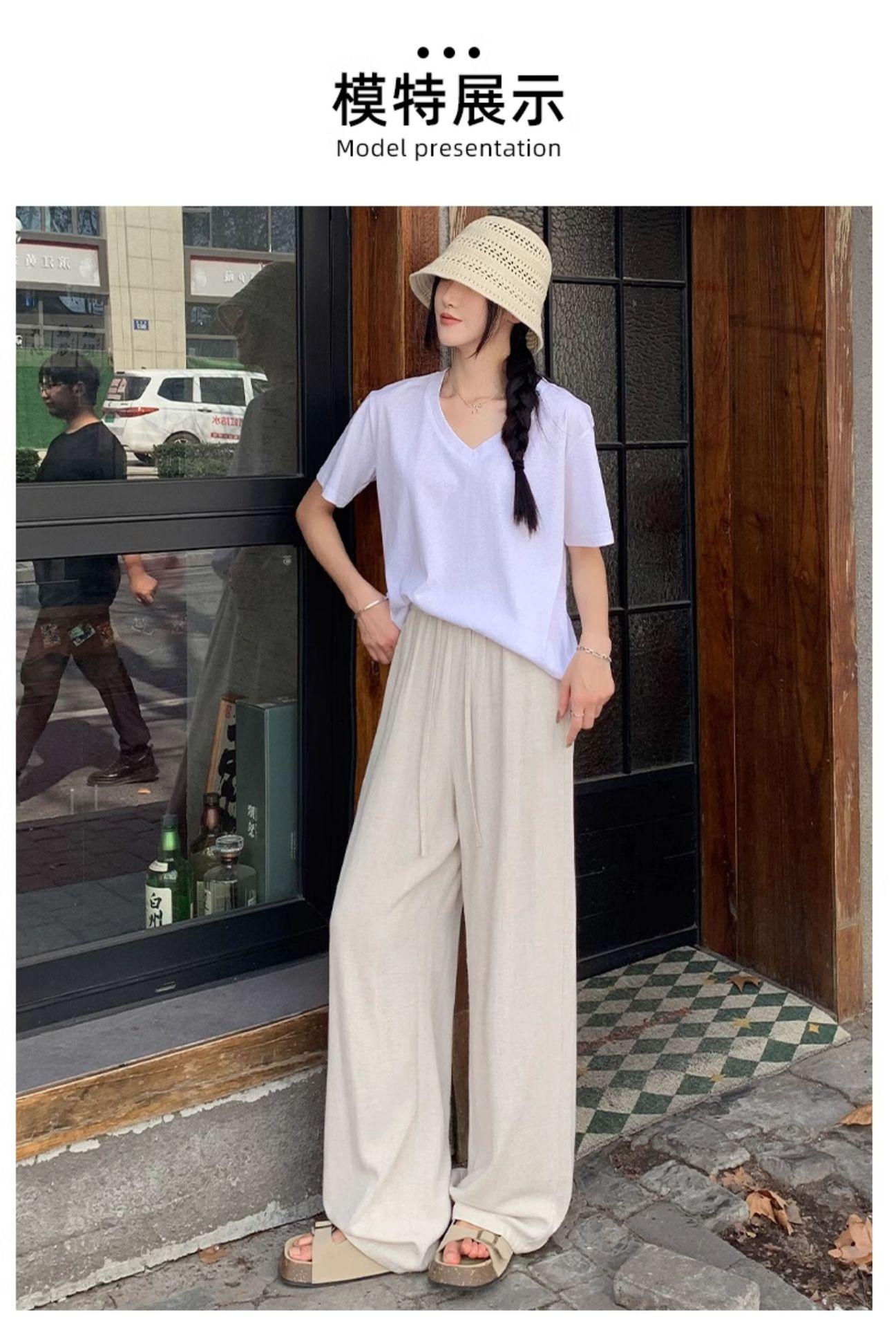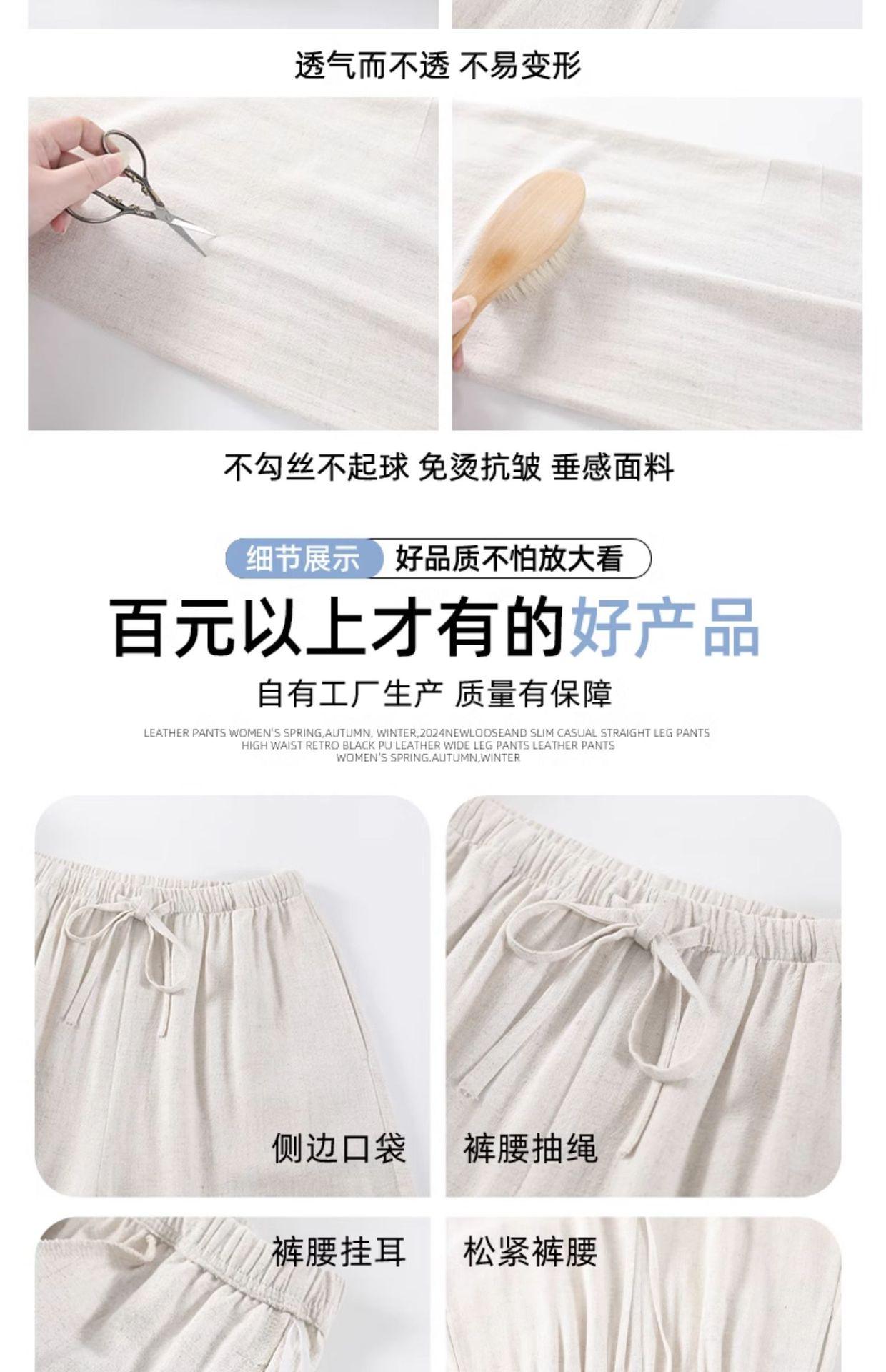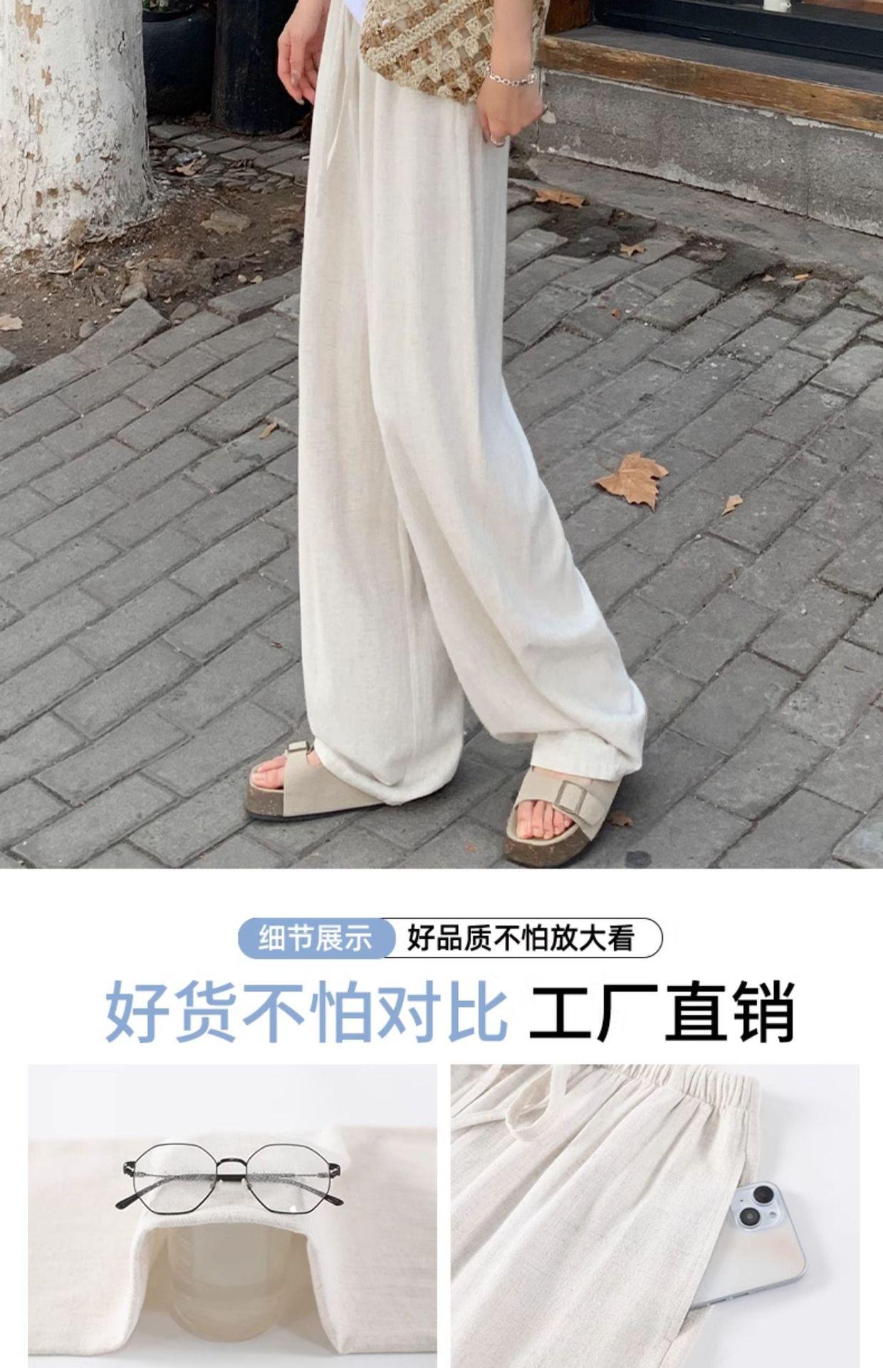Pantalones de Pierna Ancha de Algodón y Lino Finos de Verano para Mujer, Estilo Holgado Bf Perezoso 2025 Nuevos Pantalones Largos Rectos de Lino