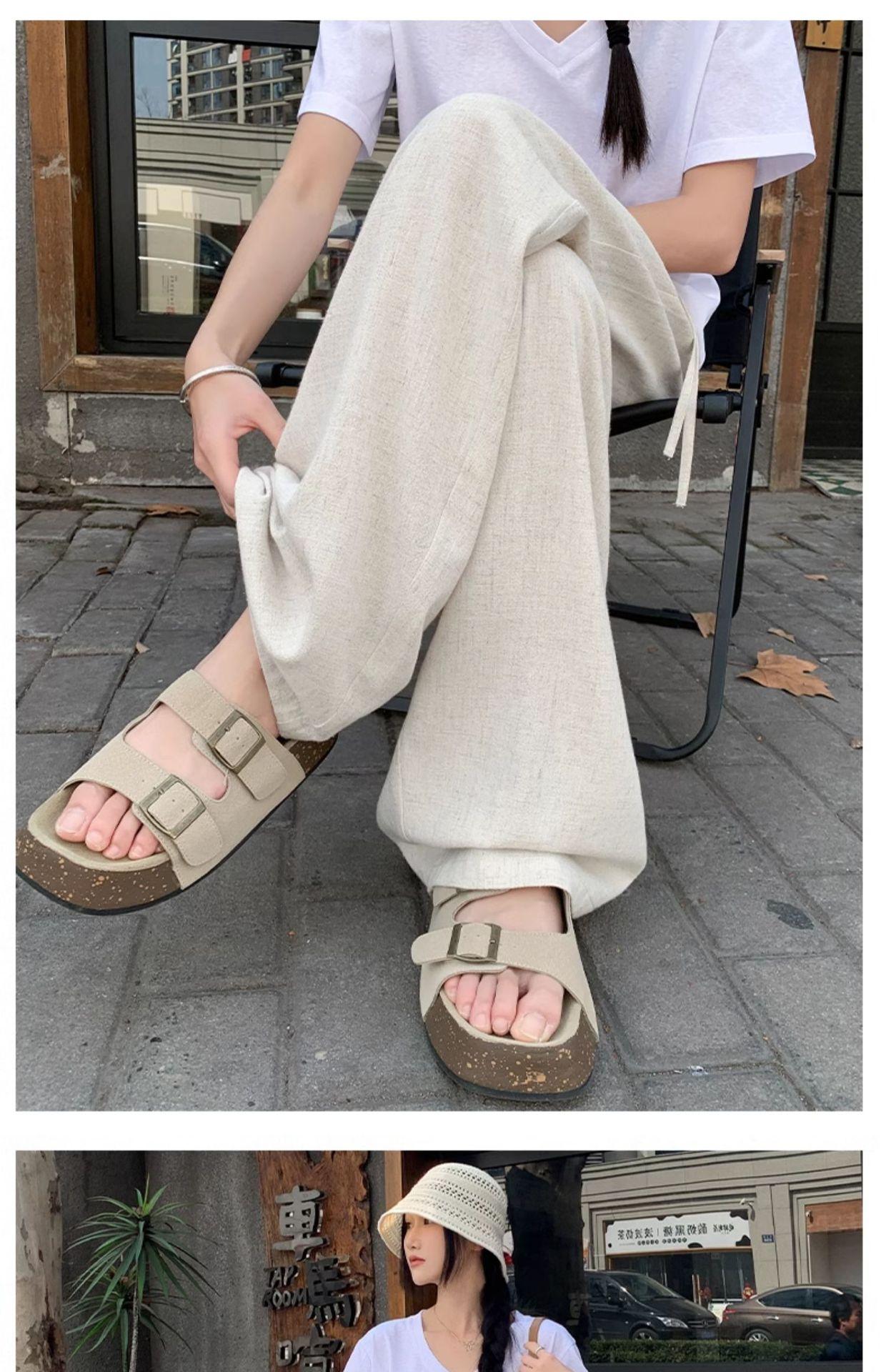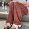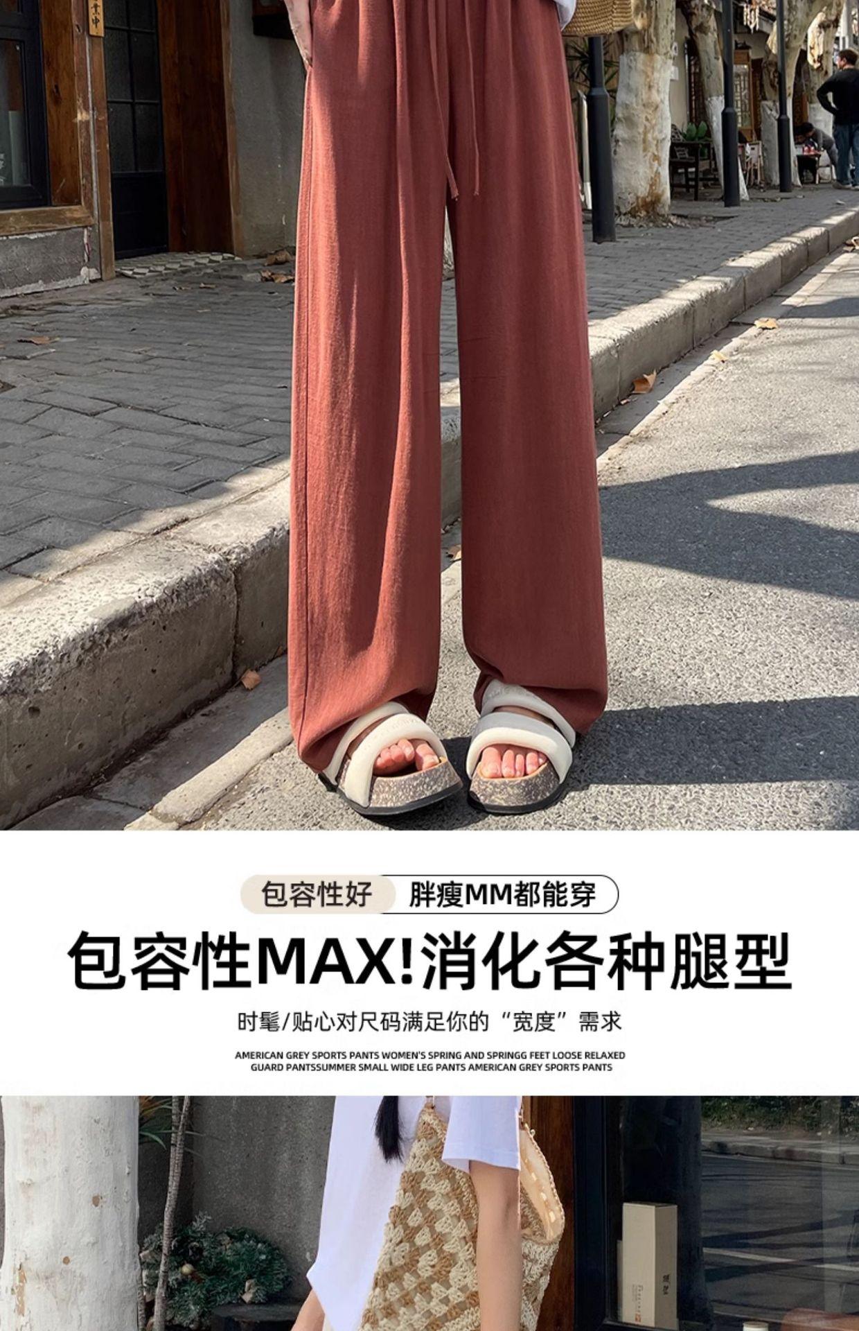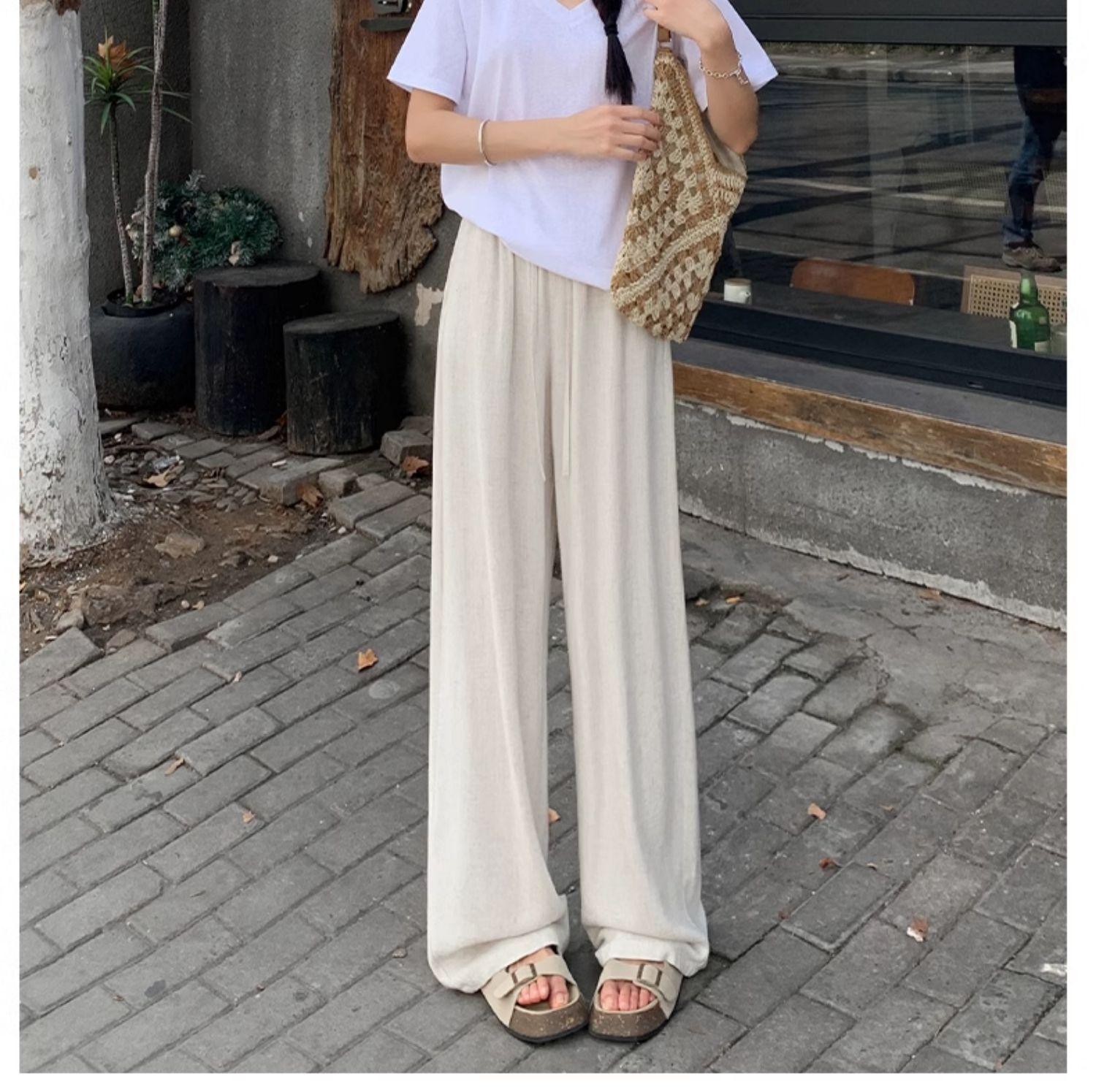 Pantalones de Pierna Ancha de Algodón y Lino Finos de Verano para Mujer, Estilo Holgado Bf Perezoso 2025 Nuevos Pantalones Largos Rectos de Lino