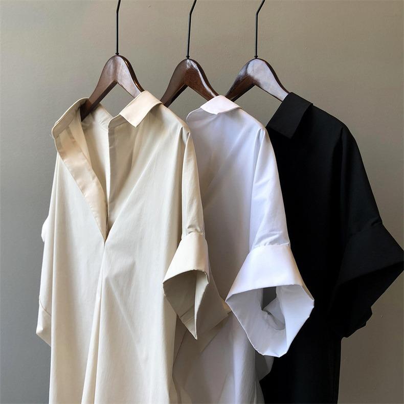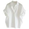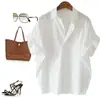 Camisa de Manga Corta Estilo Retro Hong Kong Mujer 2024 Verano Nueva Moda Versátil Camisa Blanca Manga Murciélago Holgada Cuello Top