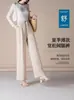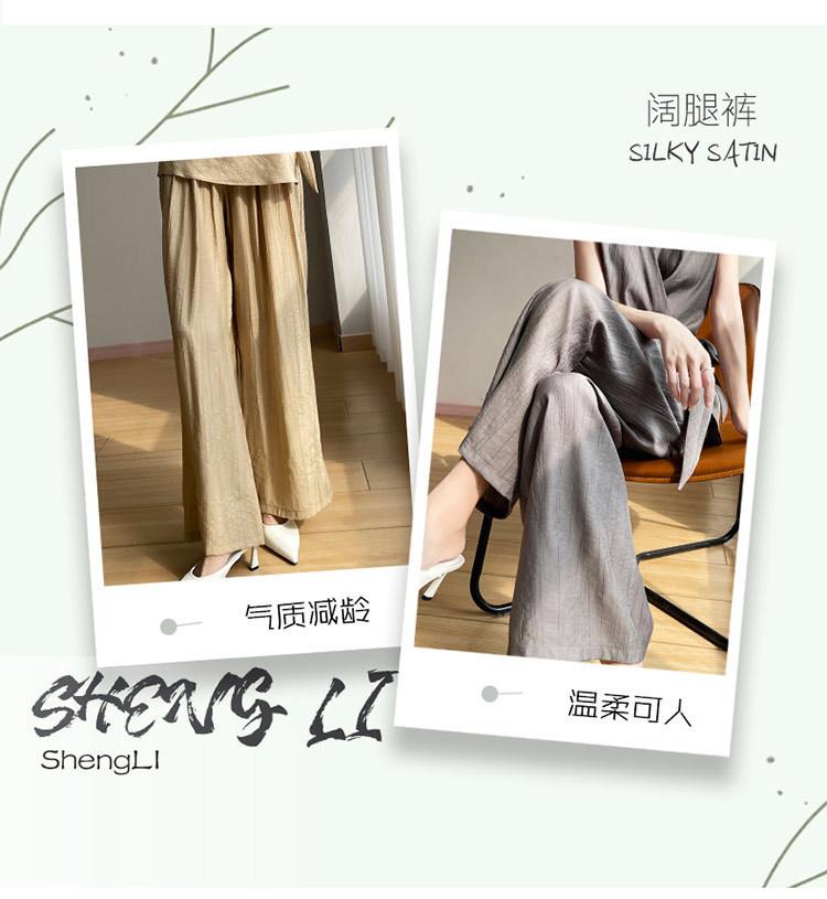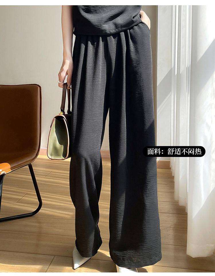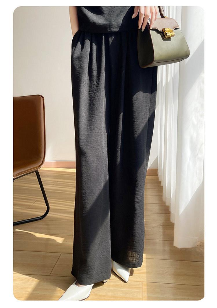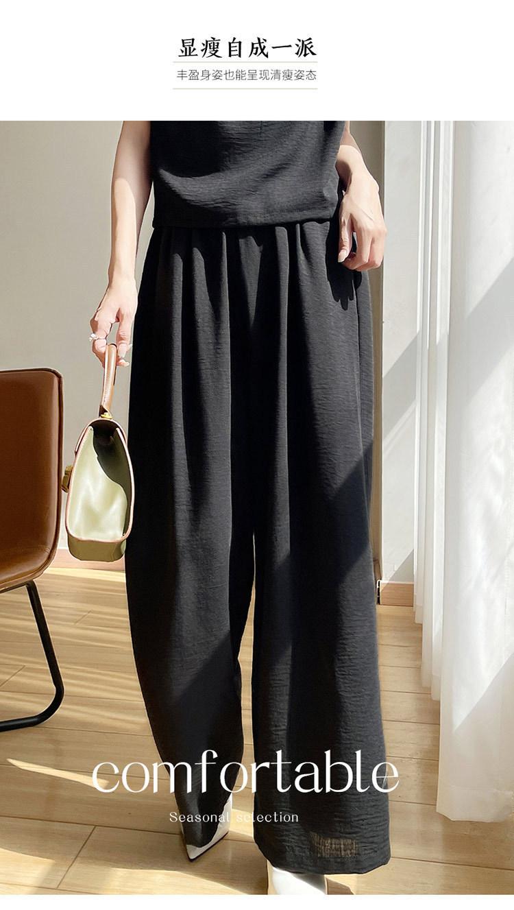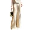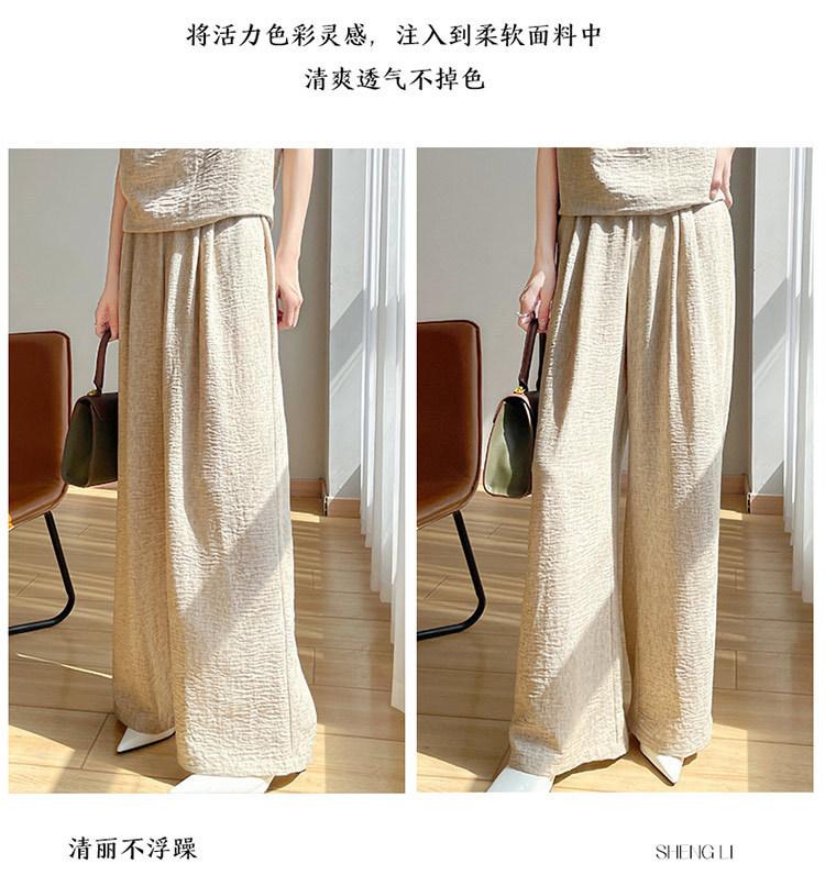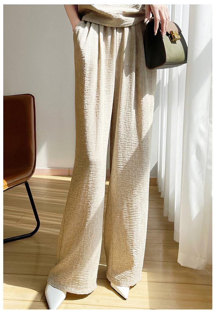 Pantalones Casuales de Lino Finos Transpirables Nuevos de Primavera y Verano de Color Sólido Plisados con Diseño de Bolsillos de Cintura Alta Adelgazantes para Mujer de Pierna Ancha
