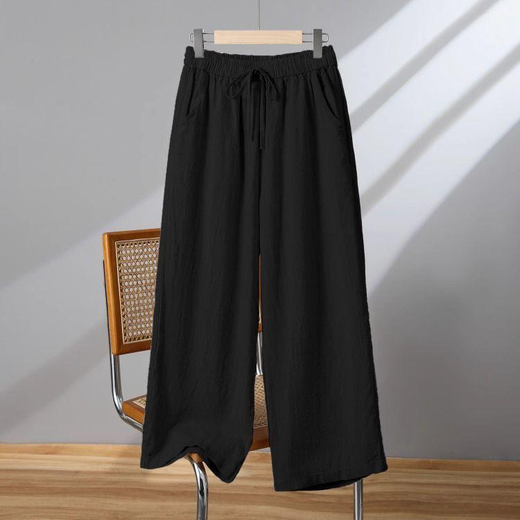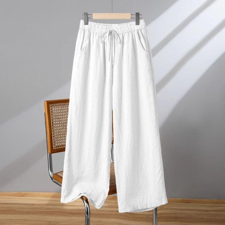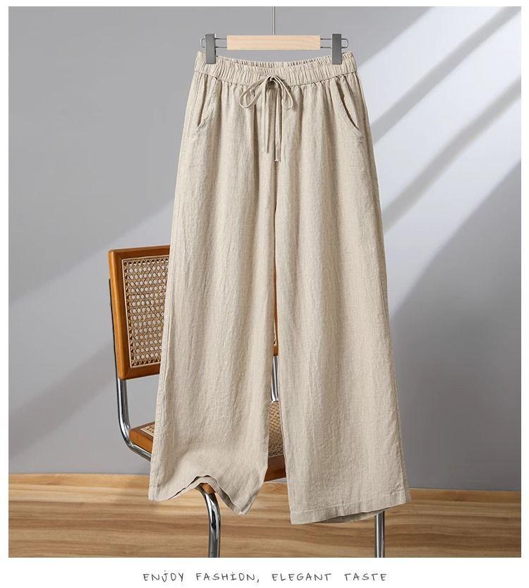 Pantalones Nuevos Retro de Algodón y Lino 2025 Pantalones Nueve Puntos Pantalones de Pierna Ancha Pantalones Casuales Nuevos de Verano para Mujer Pantalones Rectos Casuales Holgados