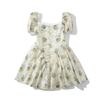 Exportación Transfronteriza Ropa de Mujer 2025 Verano Europeo y Americano Cuello Cuadrado Manga Abullonada Vestido Estampado con Encaje para Mujer H525036