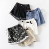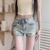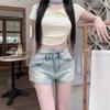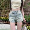 Pantalones cortos de mezclilla lavados y desgastados de verano retro de talla grande para mujer, pantalones de cintura alta rectos, pantalones cortos sexys ajustados casuales