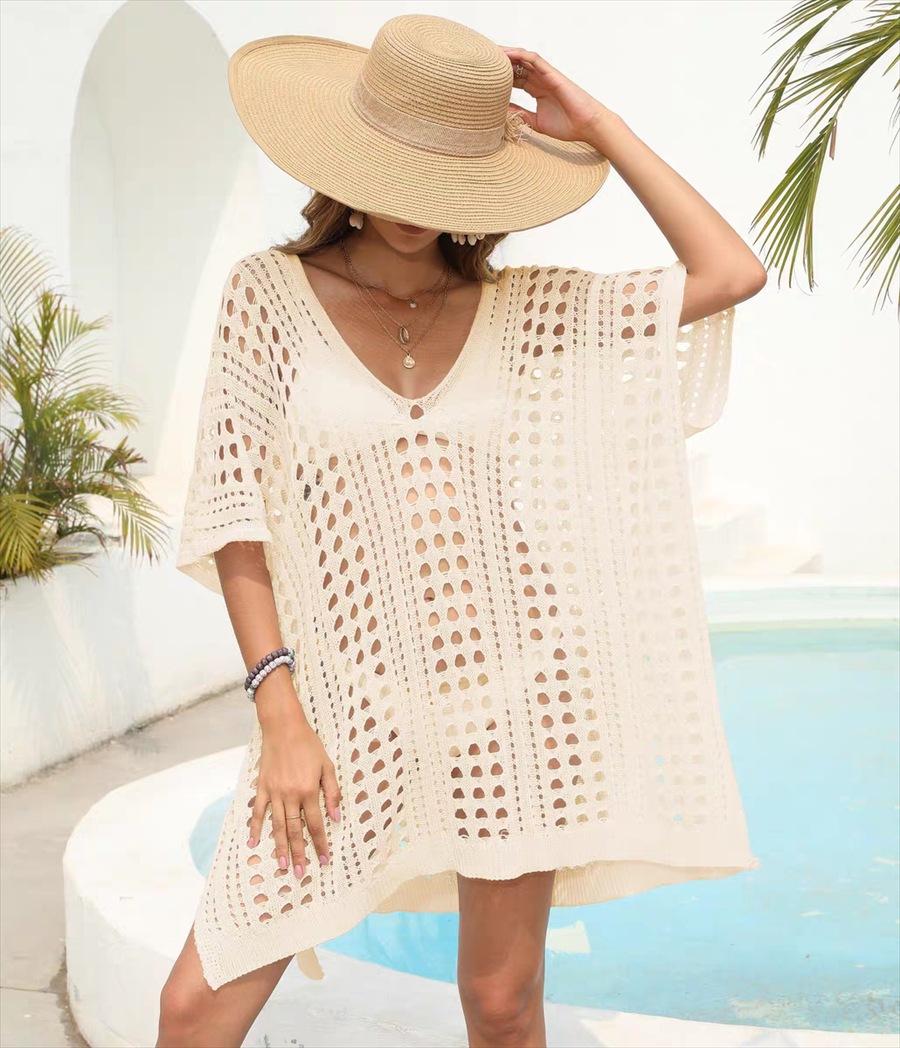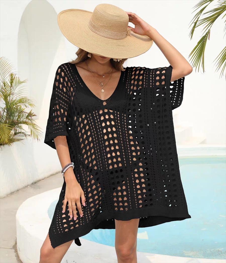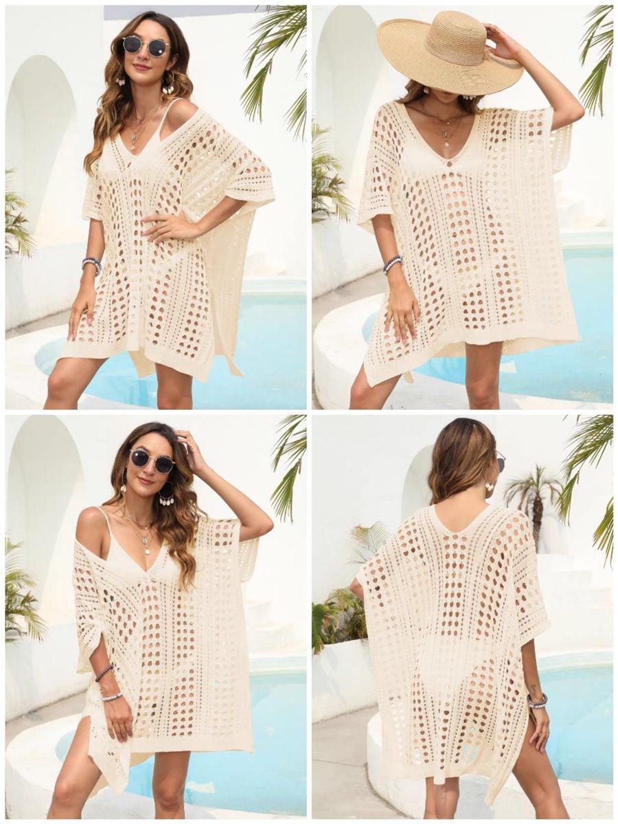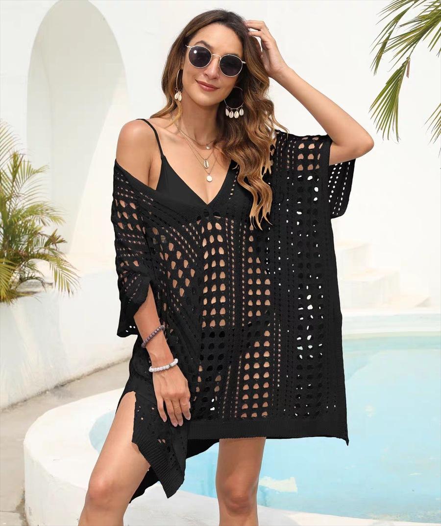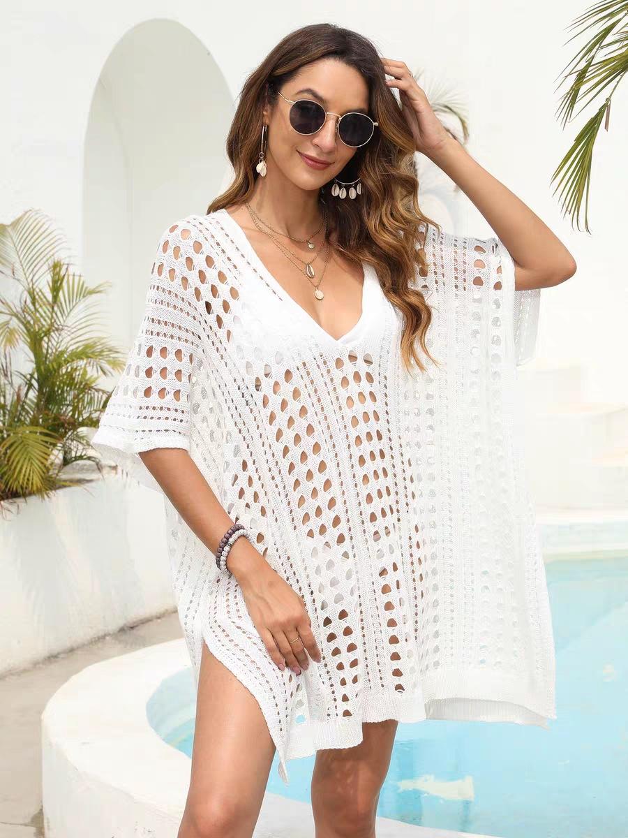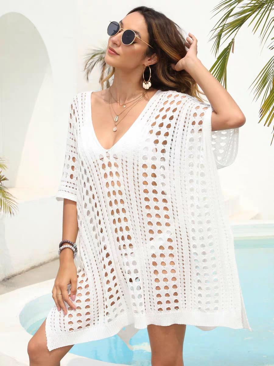 Traje de Baño Sexy Europeo y Americano Tejido con Abertura en V y Abertura Lateral Cubre Bikini Falda de Playa con Falda Cubre Traje de Baño