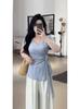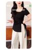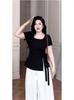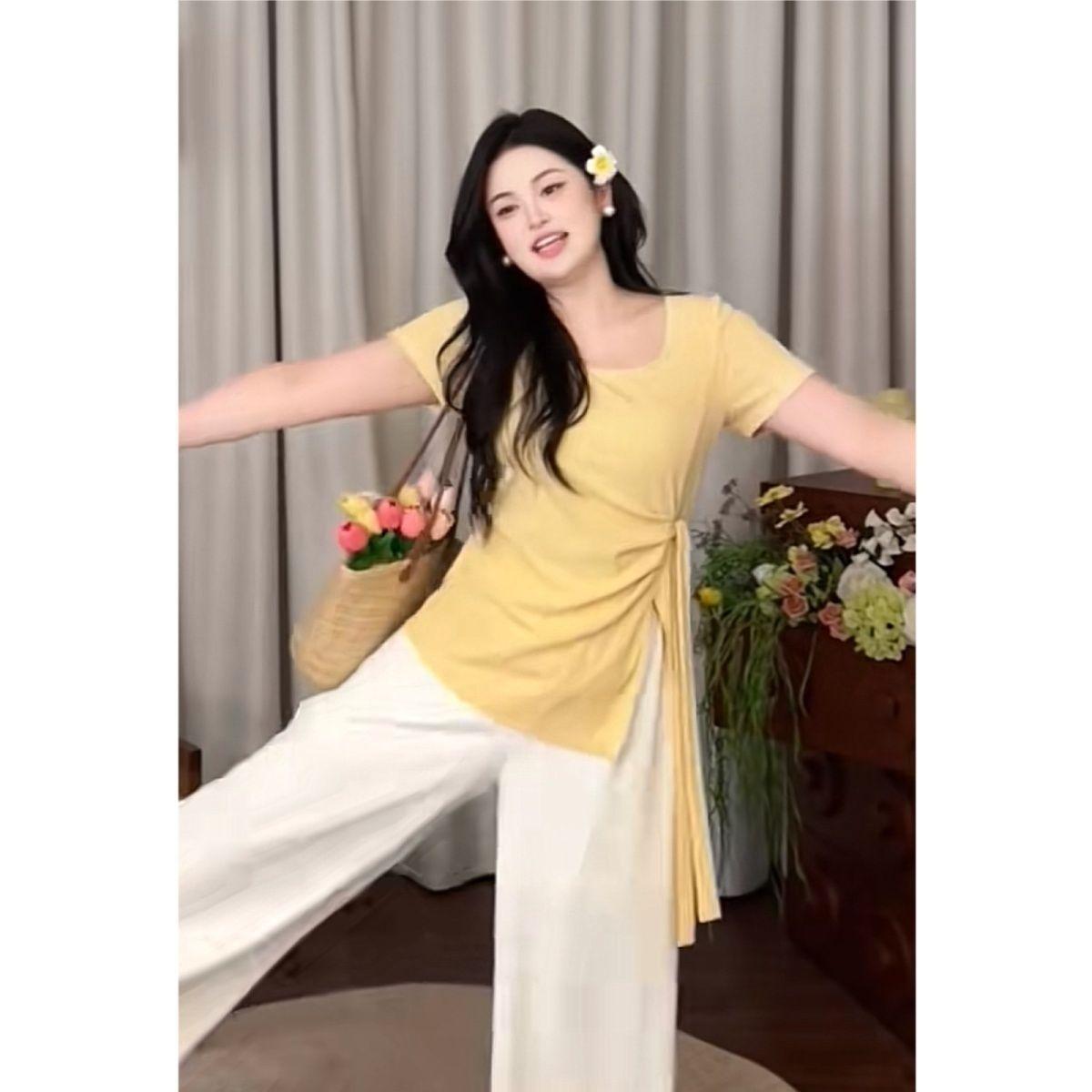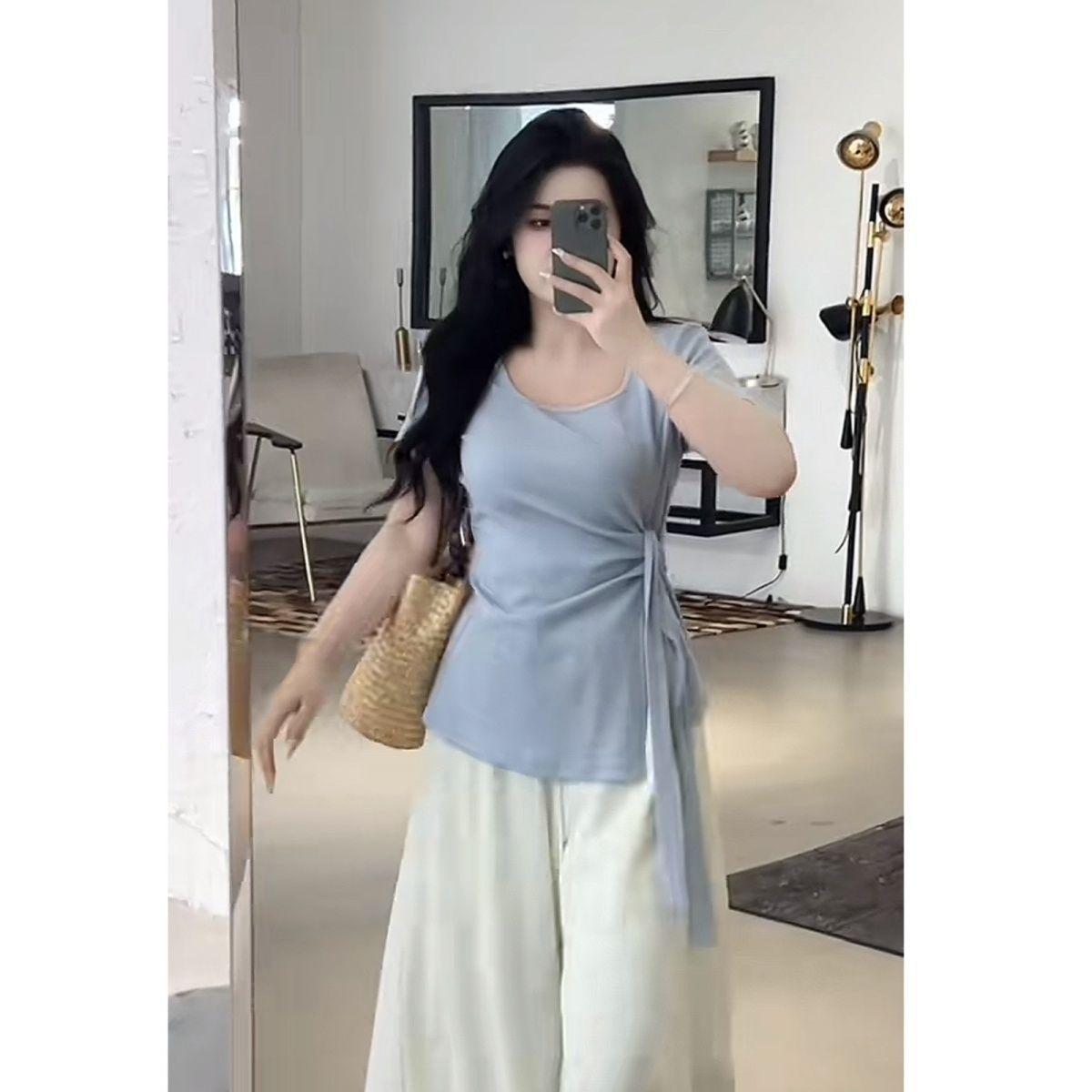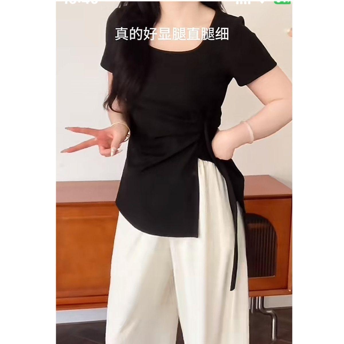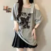 Talla grande Camiseta de Hombro Manga Corta para Mujer Verano 2025 Nuevo Diseño Irregular Chica Gordita Cubre Carne Slim Top