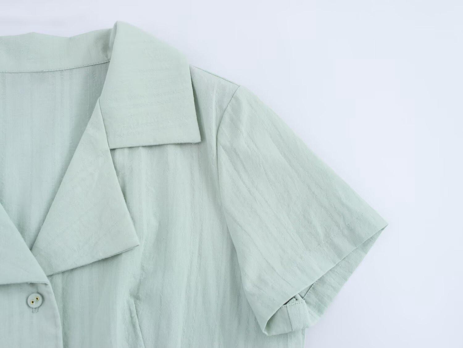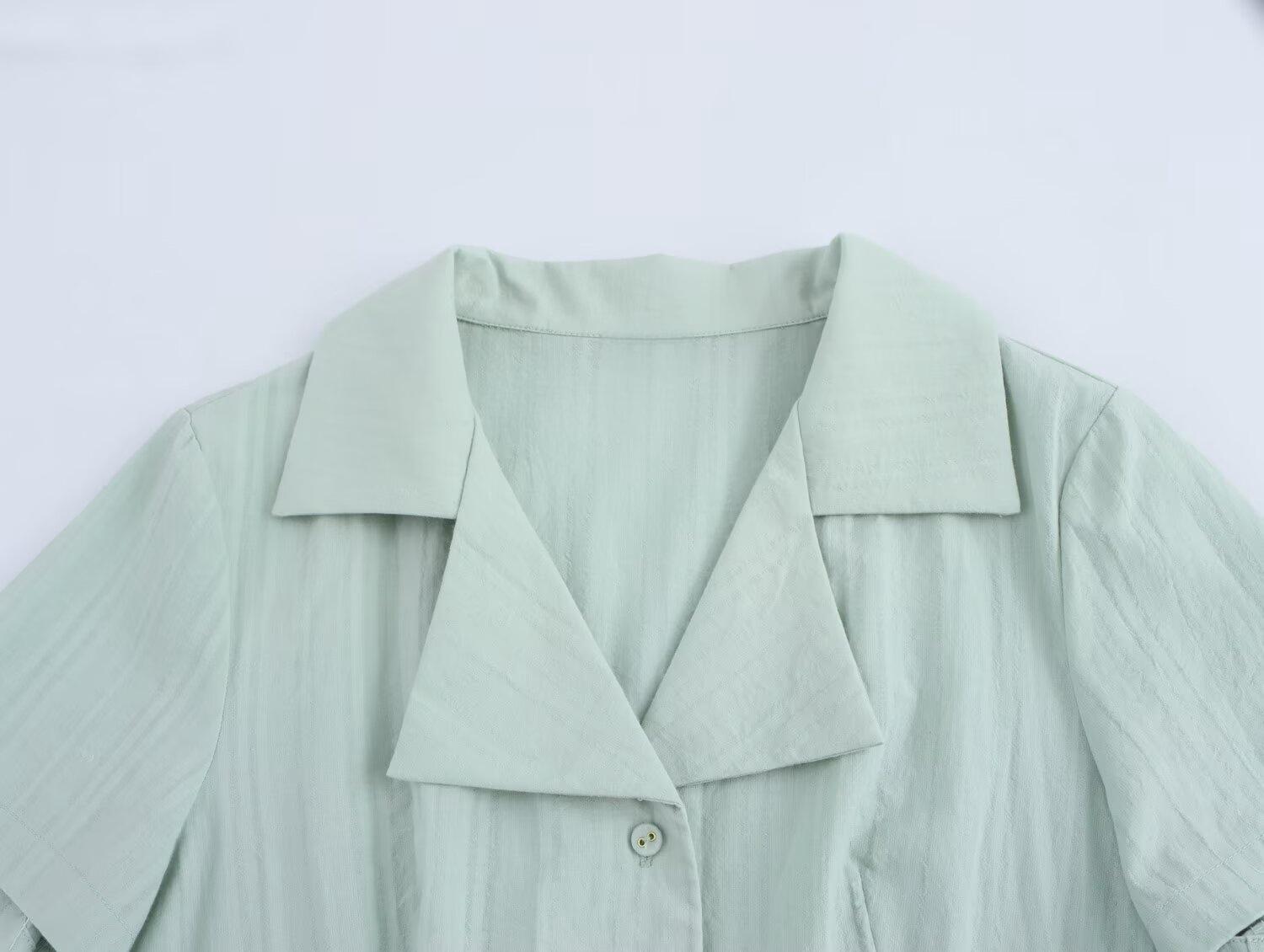 Ropa de mujer transfronteriza europea y americana 2025 primavera nuevo vestido de manga corta con solapa