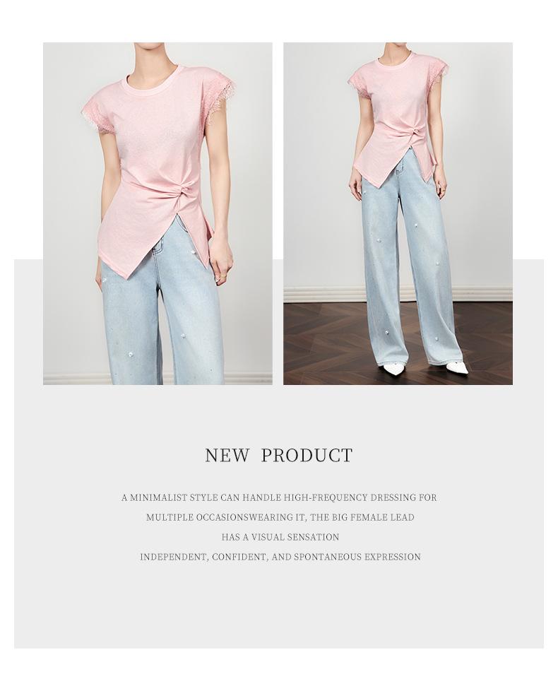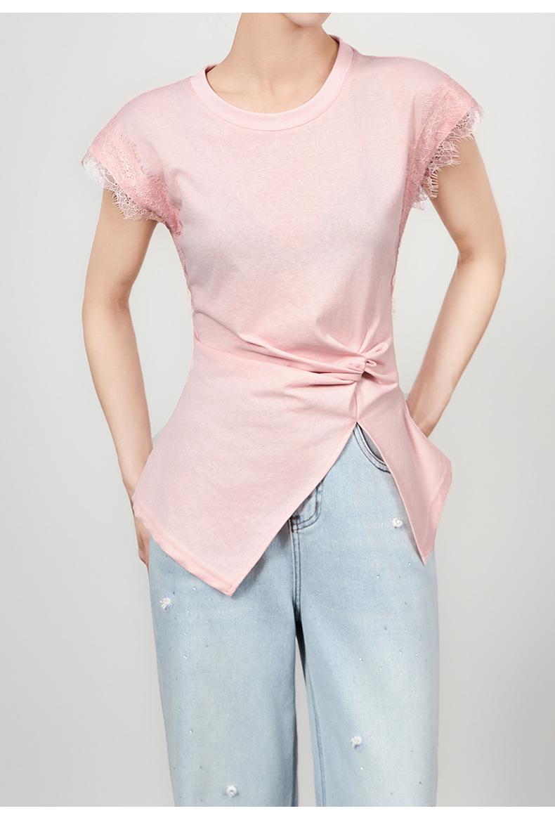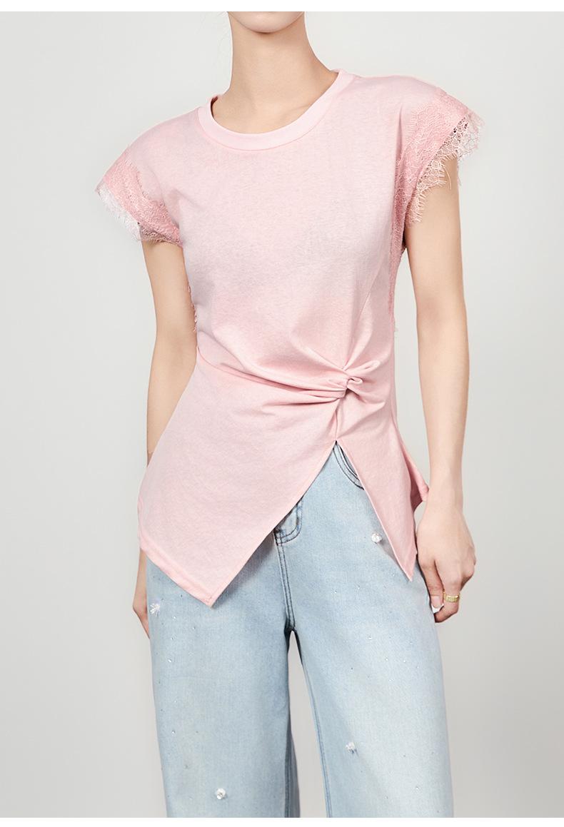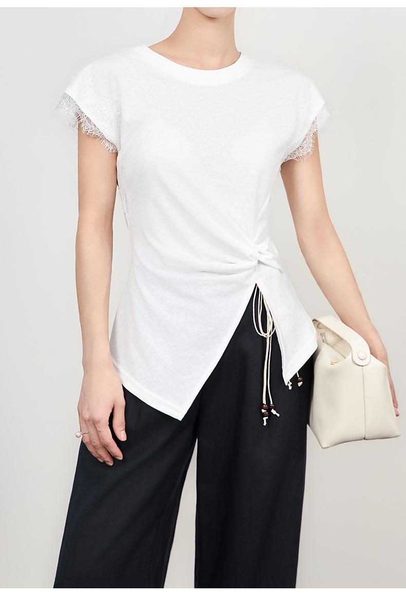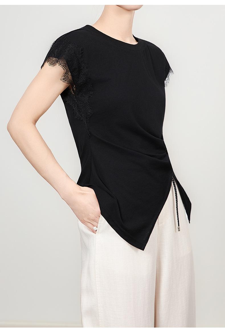 2508109-Nanyou diseño nicho de alta calidad encaje cosido plisado cintura adelgazante camiseta chaqueta nuevo para mujer