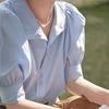 Camisa Elegante de Chifón con Manga Abullonada Estilo Francés para Mujer 2025 Verano Diseño Delgado Niche Chic Camisa de Manga Corta