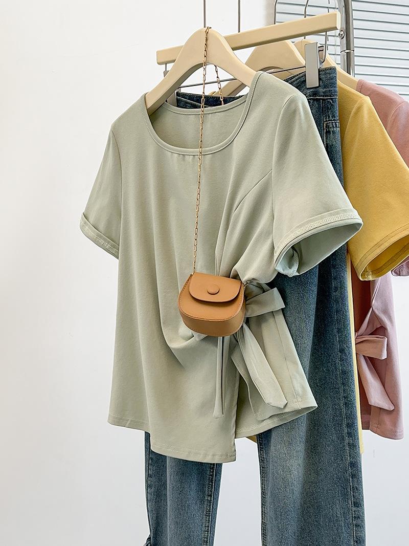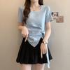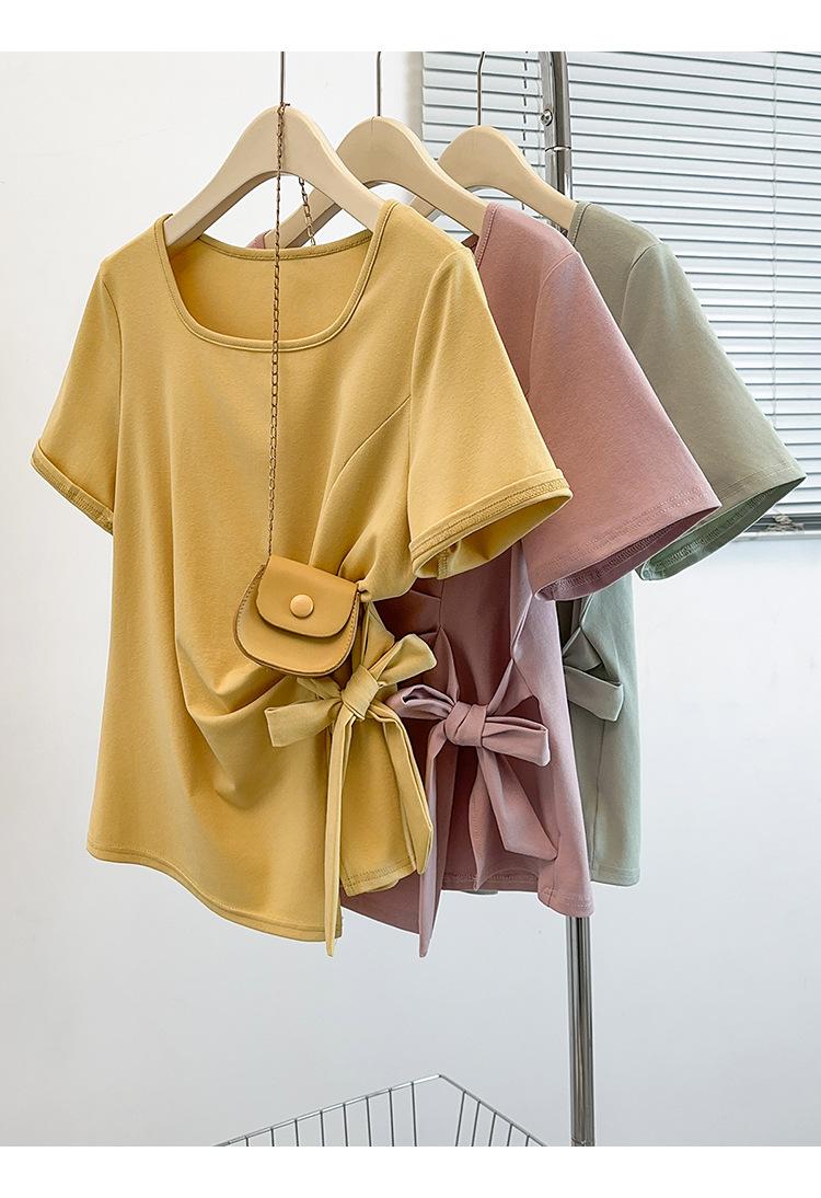 Compra Camiseta Rosa Morada Cuello Cuadrado Hombro Manga Corta Mujer 2025 Verano Talla Grande Camisa Top Irregular de Tirantes al por mayor en Joom.pro