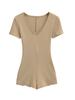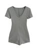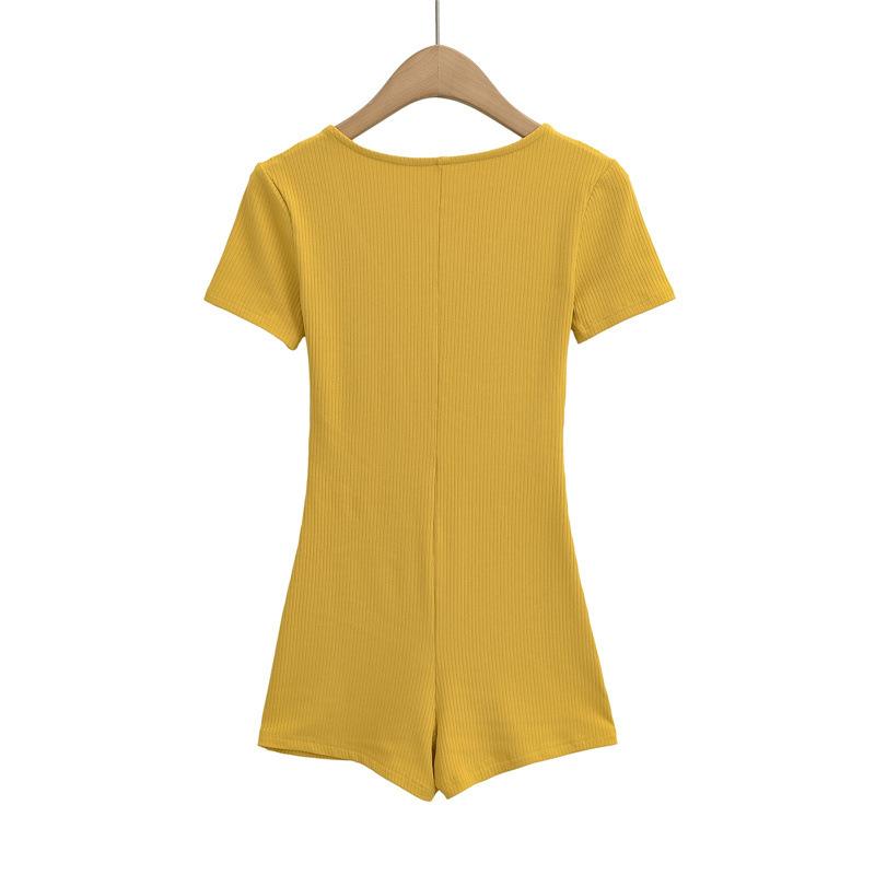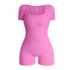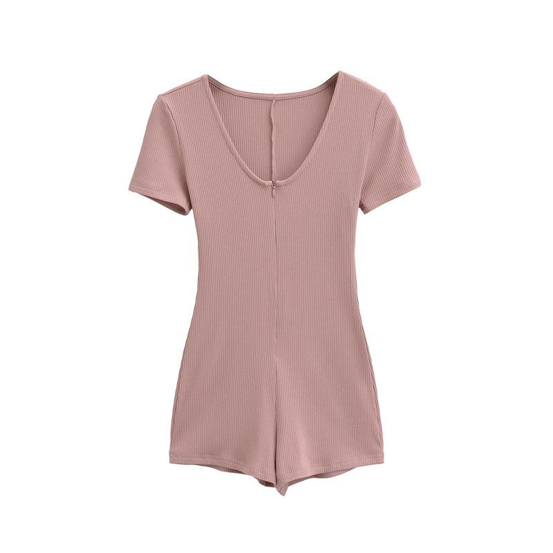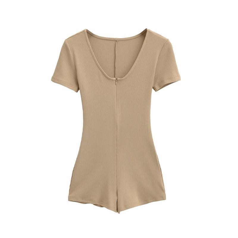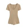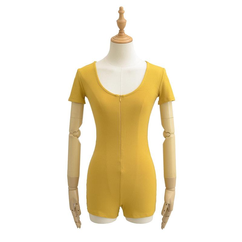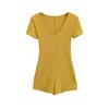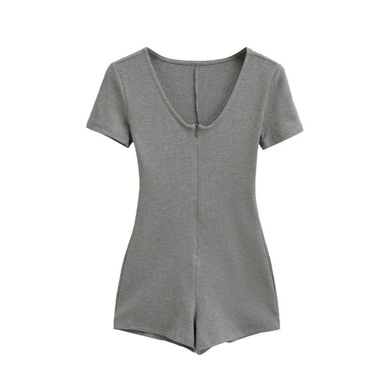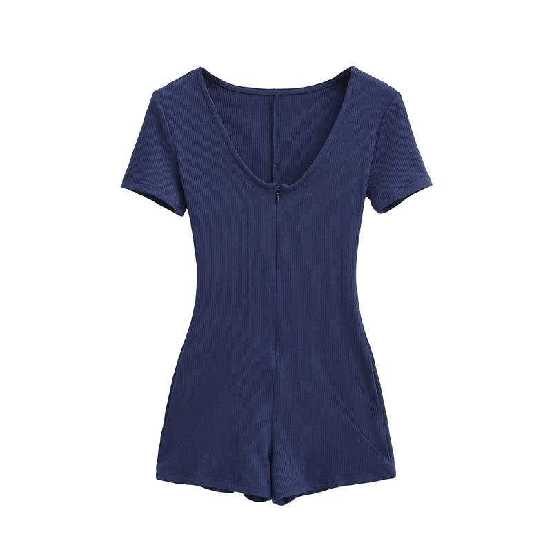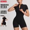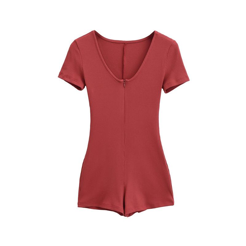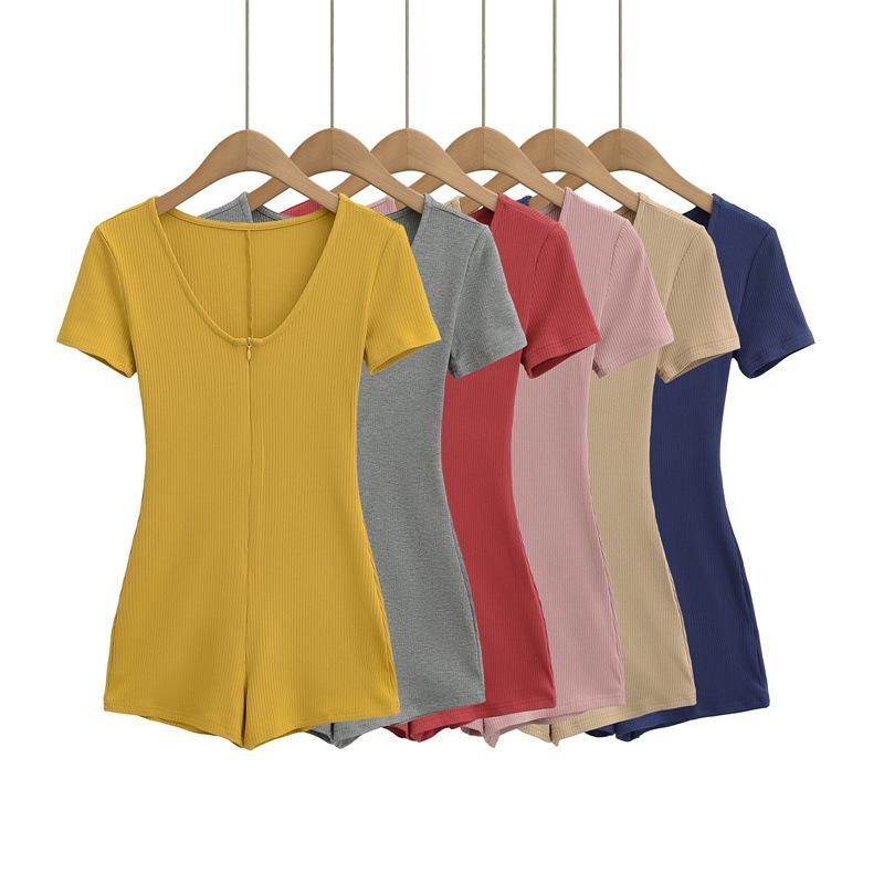 Mono Sexy Caliente con Cuello en V y Cremallera de Manga Corta Verano Nuevo Color Sólido Ajustado Yoga Deportes Mameluco Shorts para Mujer