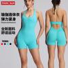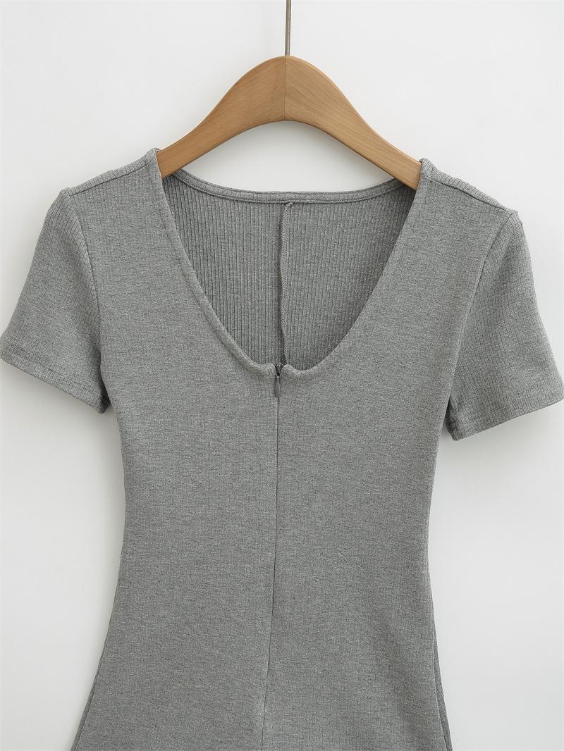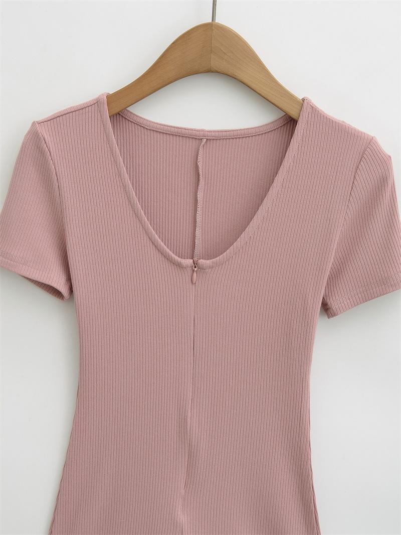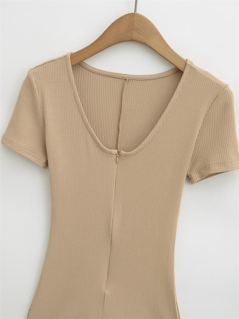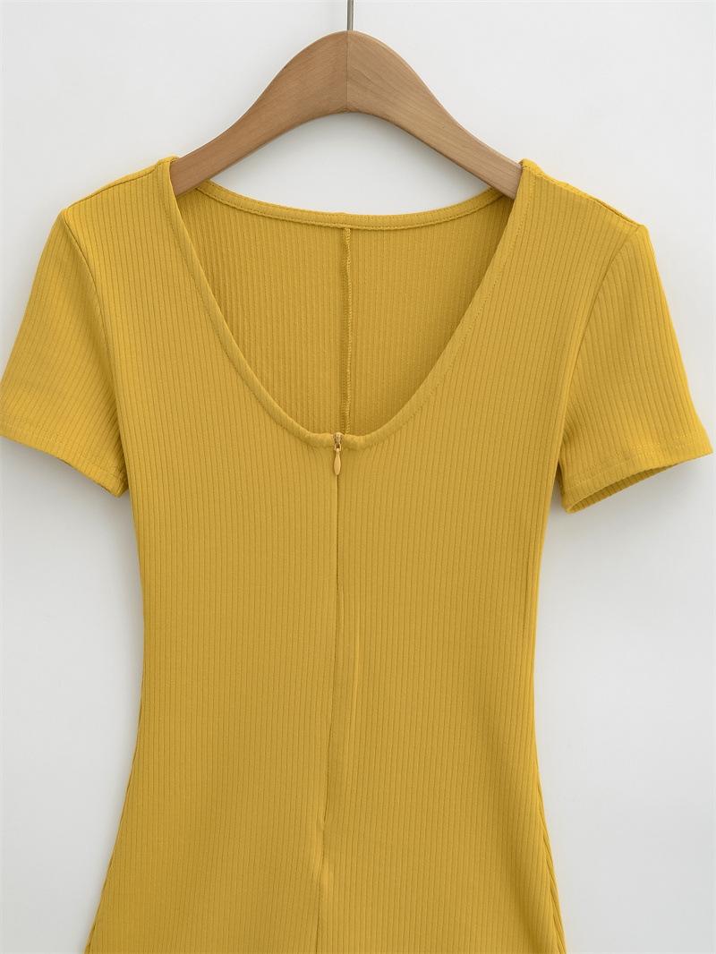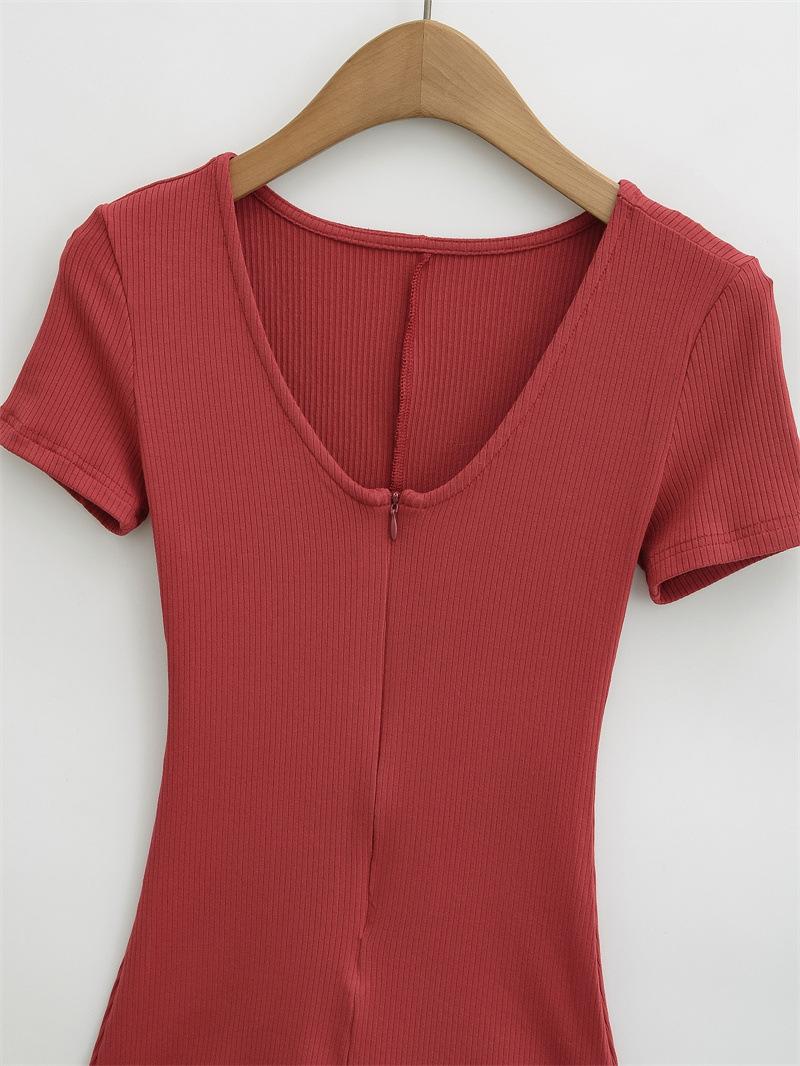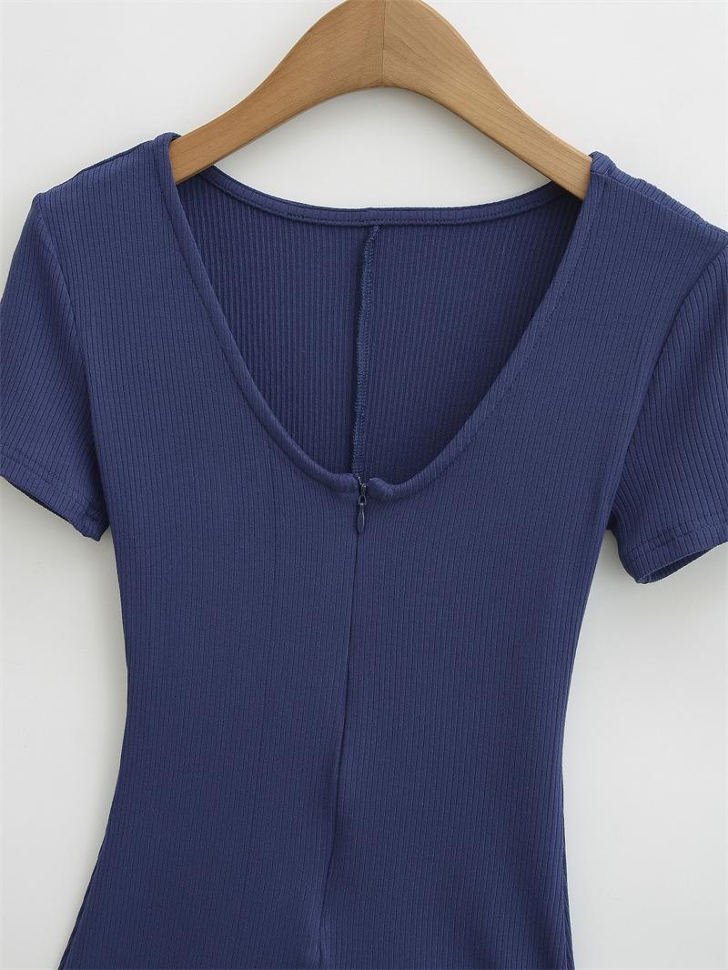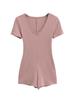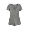 Mono Sexy Caliente con Cuello en V y Cremallera de Manga Corta Verano Nuevo Color Sólido Ajustado Yoga Deportes Mameluco Shorts para Mujer