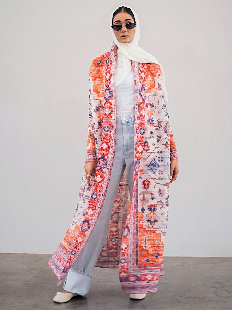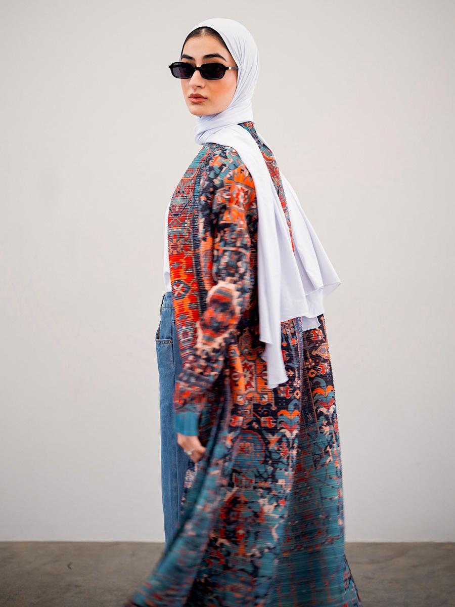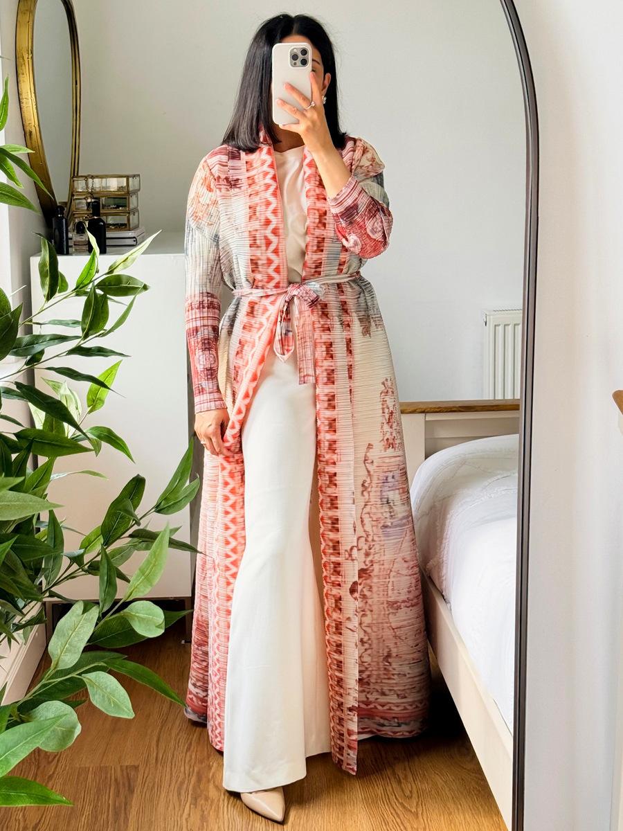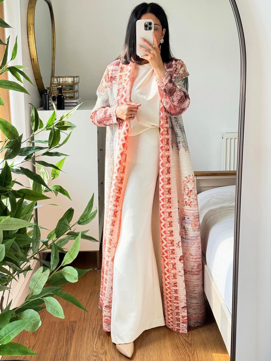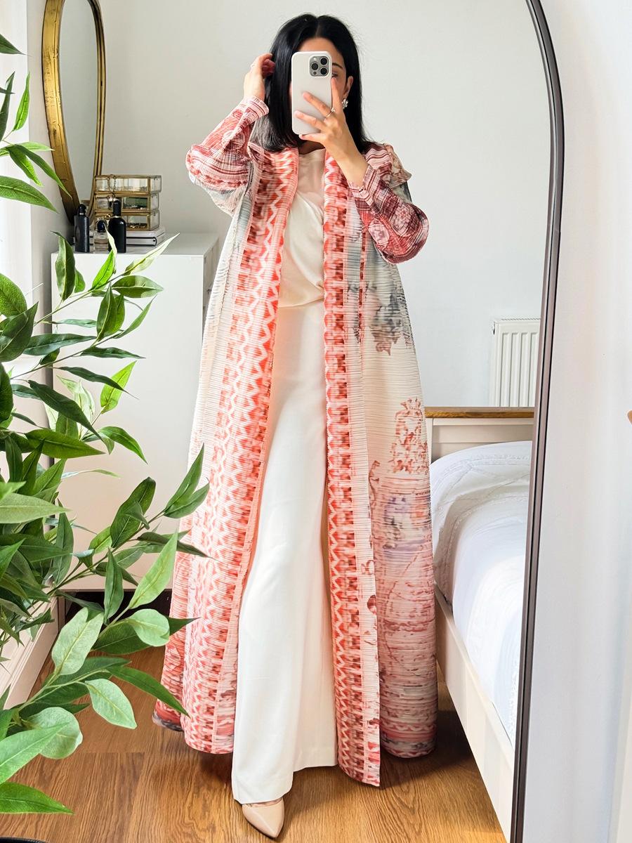 Miyake Abaya Plisada Ropa Musulmana Bata Primavera y Otoño Medio Oriente Transfronterizo Popular Capa Estampada Chaqueta para Mujer