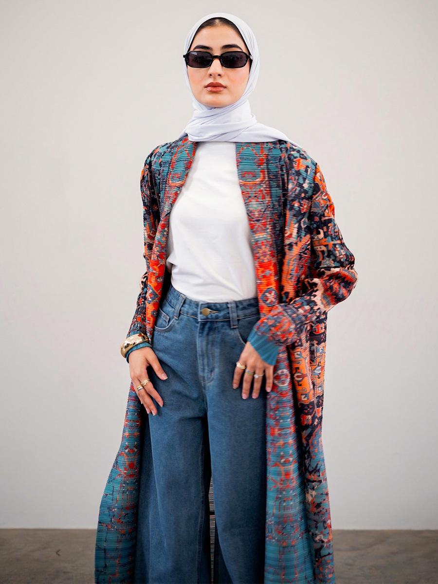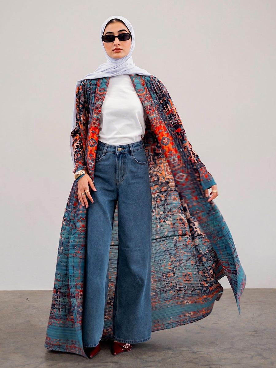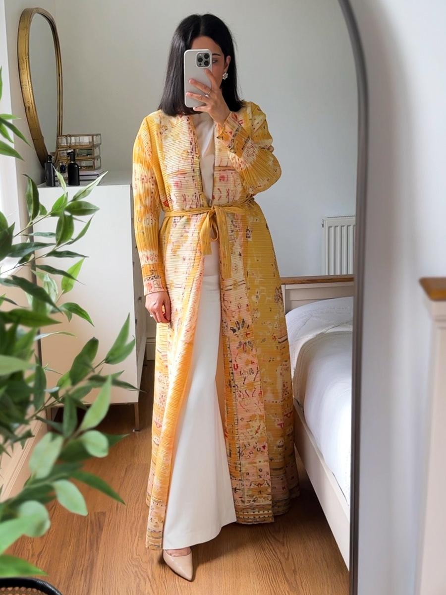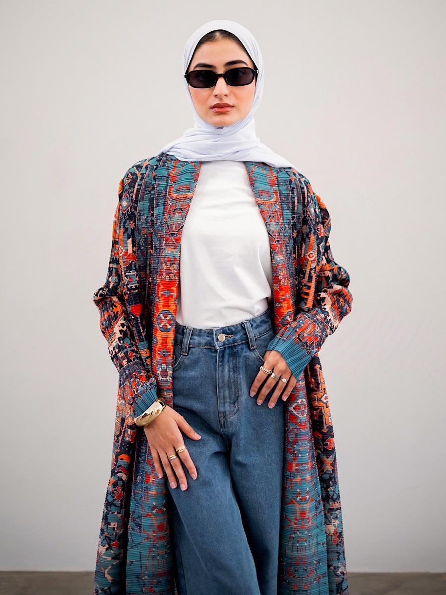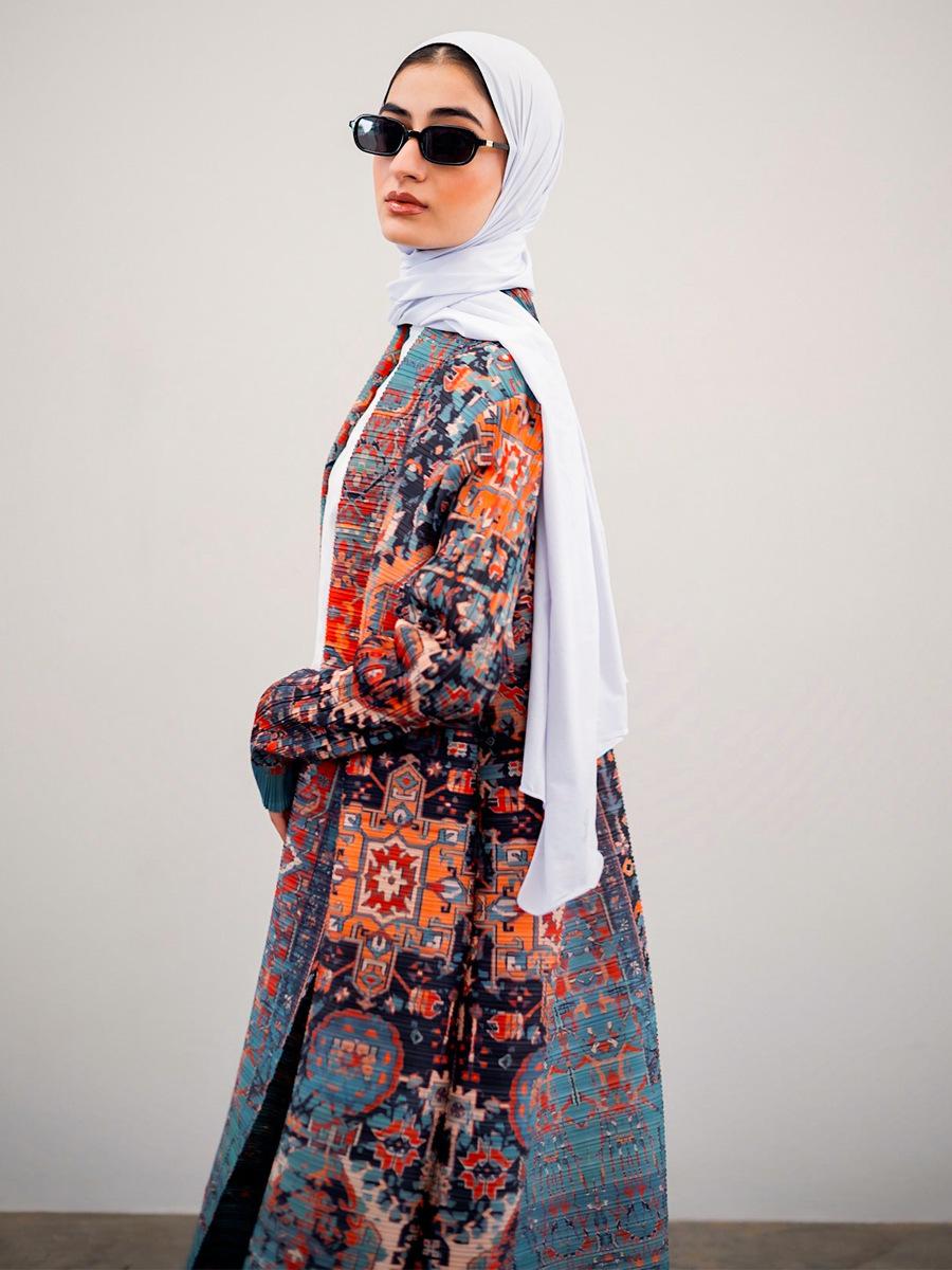 Miyake Abaya Plisada Ropa Musulmana Bata Primavera y Otoño Medio Oriente Transfronterizo Popular Capa Estampada Chaqueta para Mujer