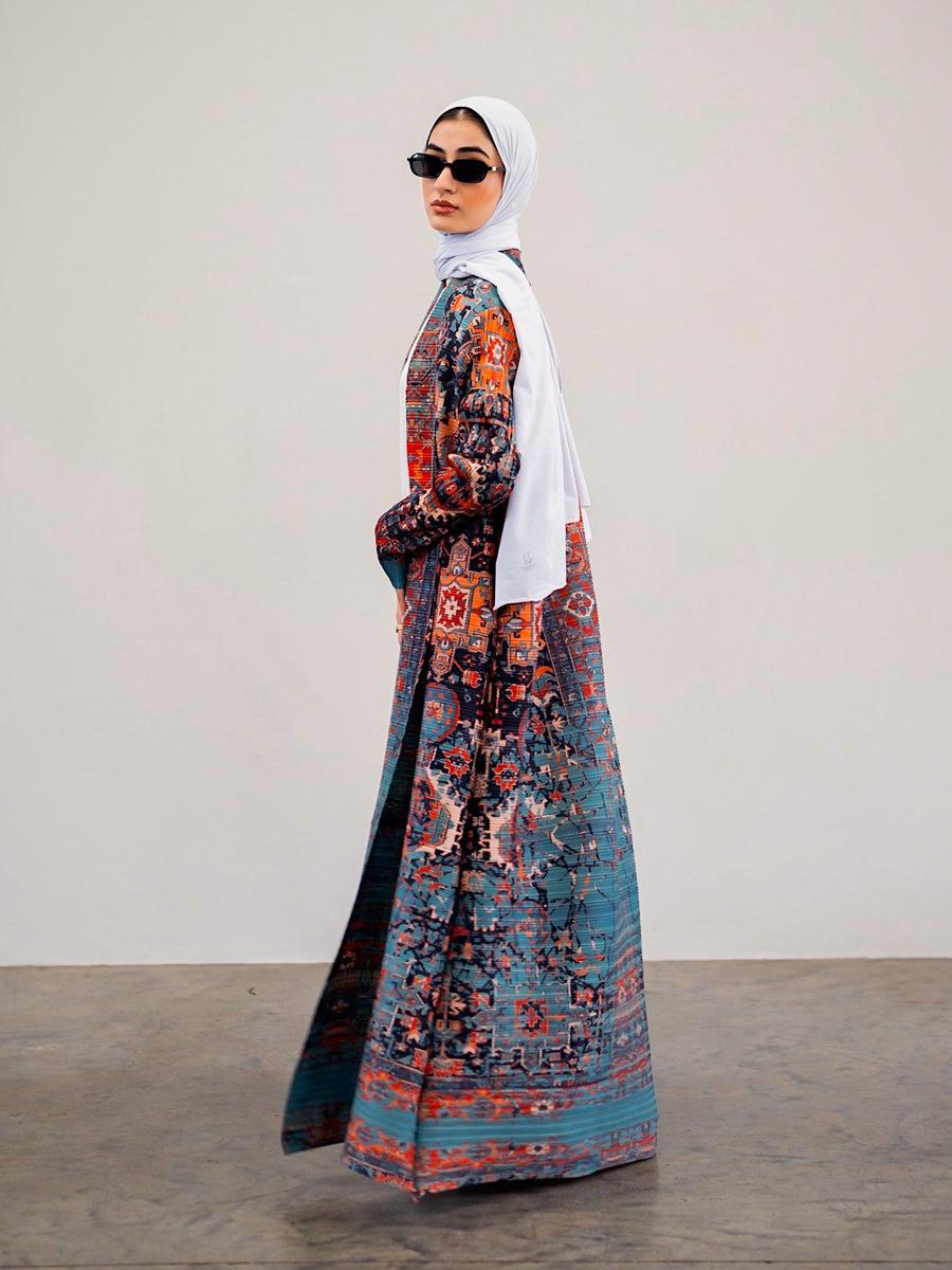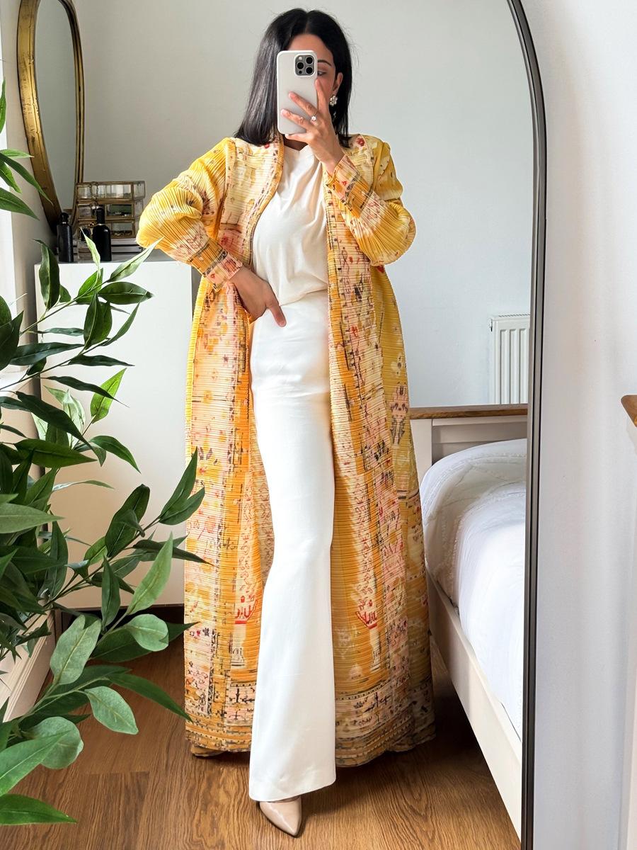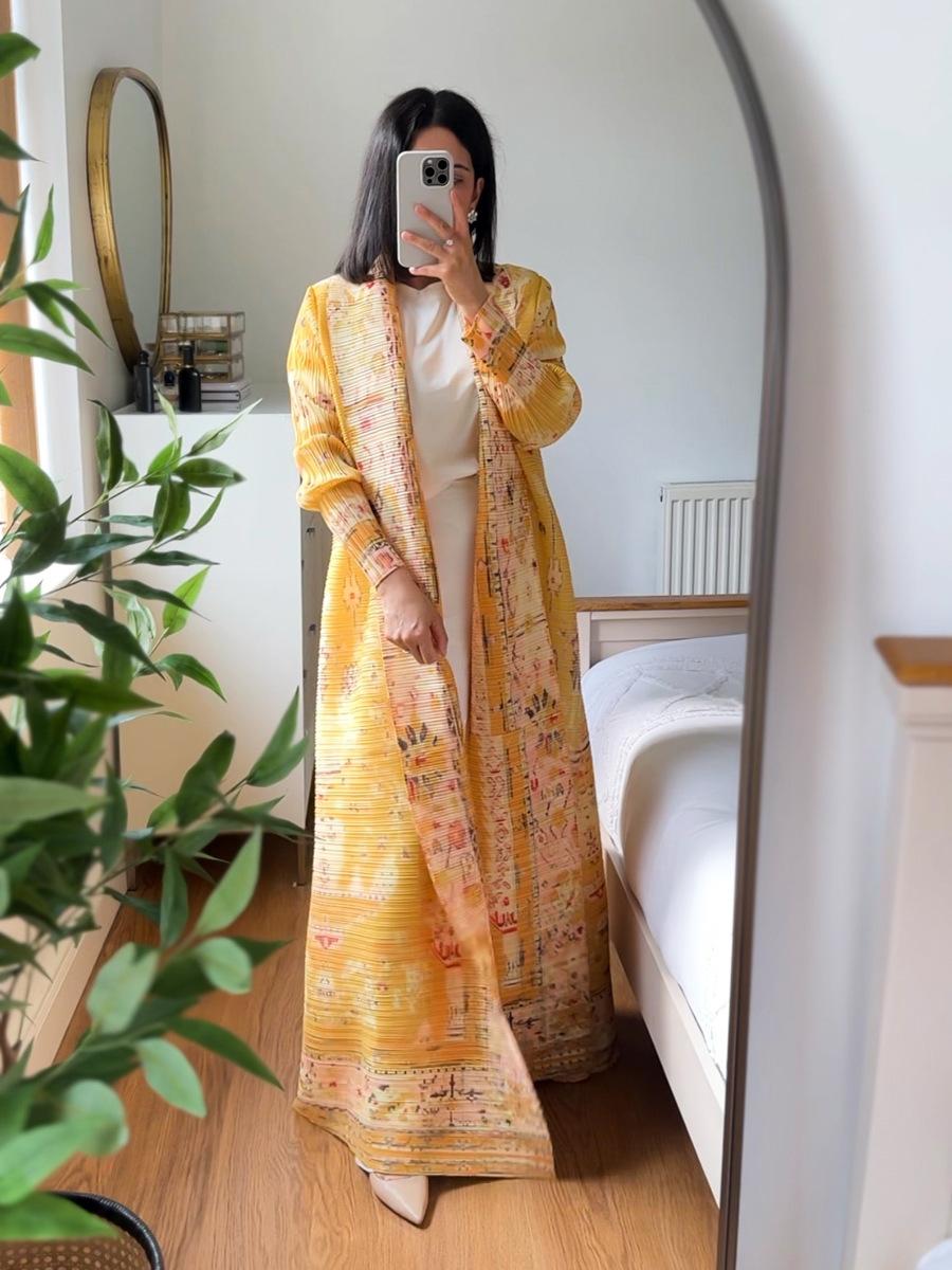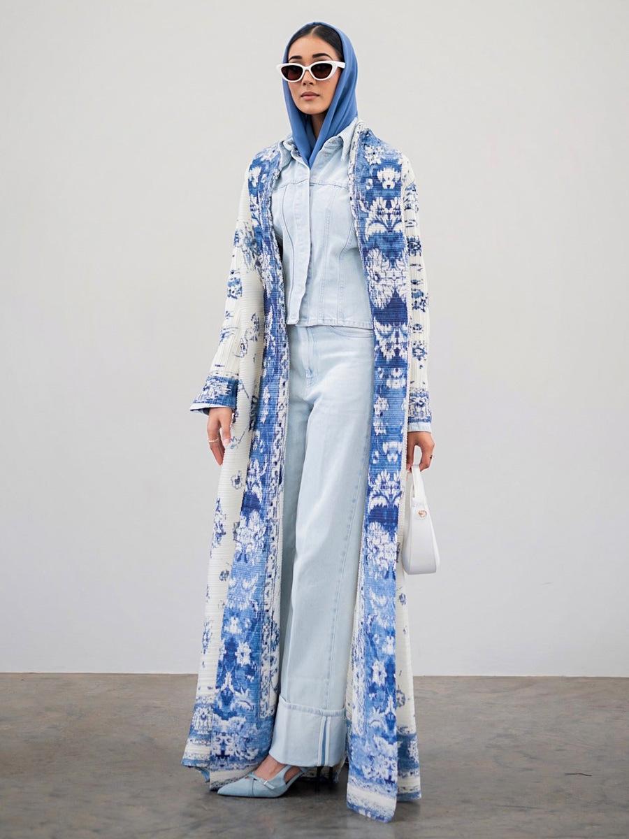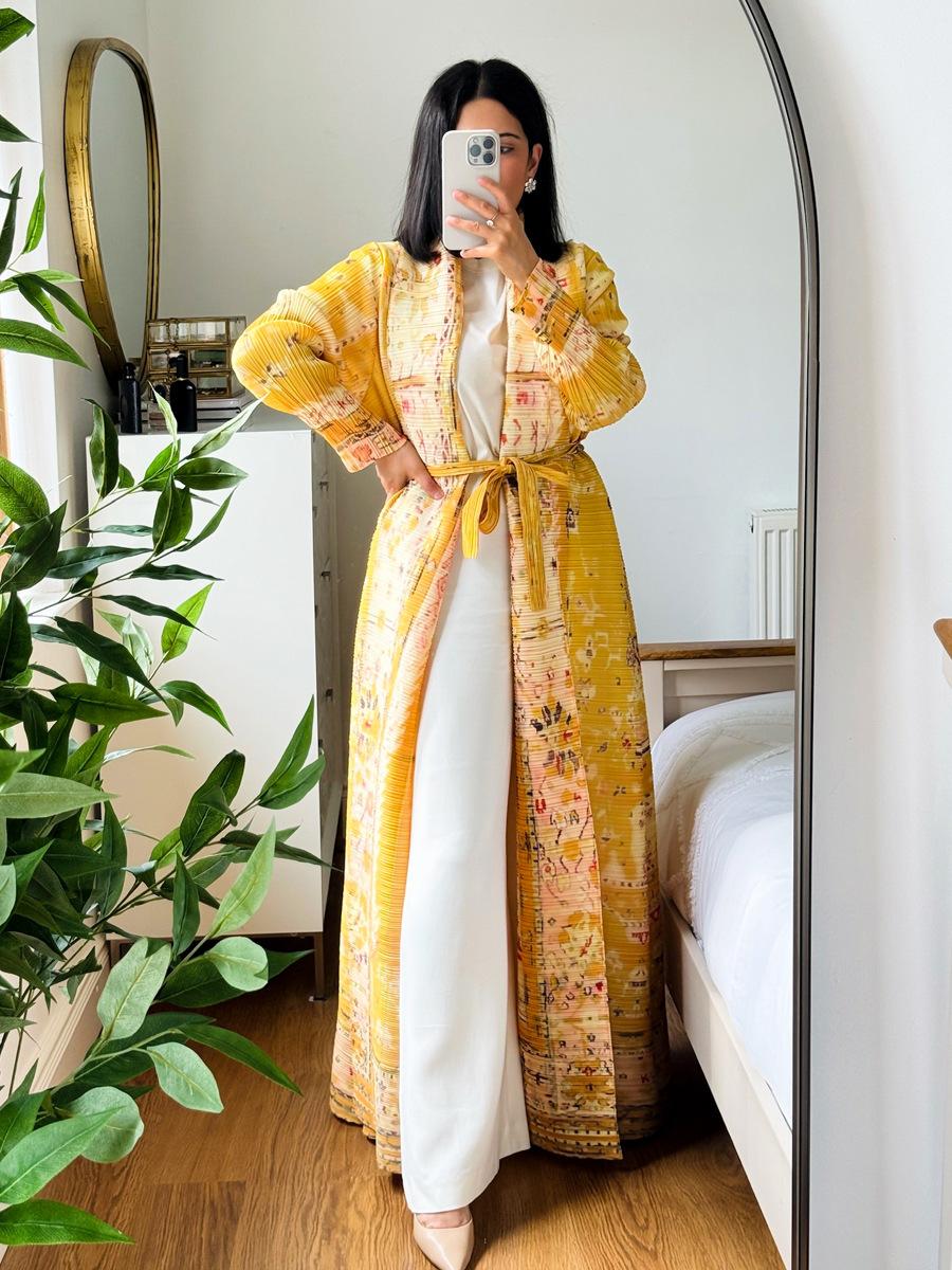 Miyake Abaya Plisada Ropa Musulmana Bata Primavera y Otoño Medio Oriente Transfronterizo Popular Capa Estampada Chaqueta para Mujer