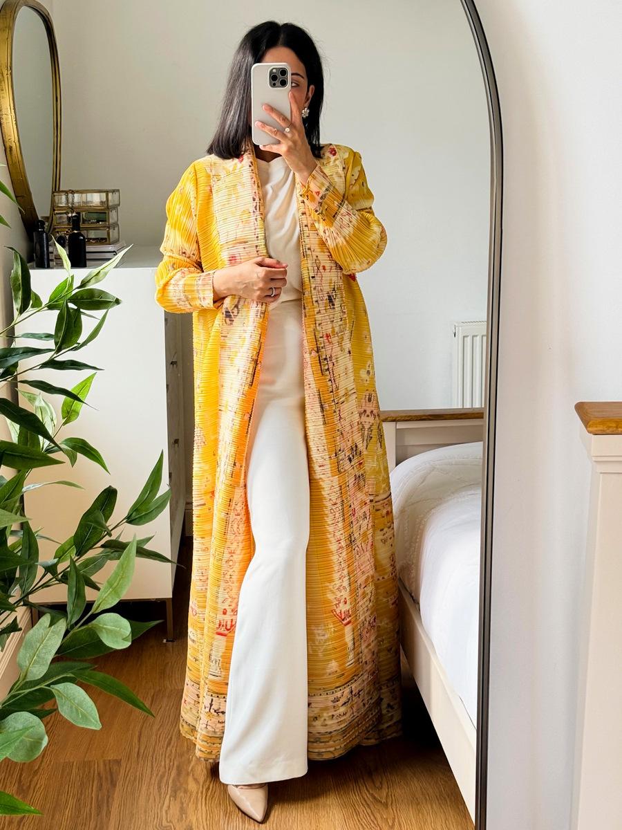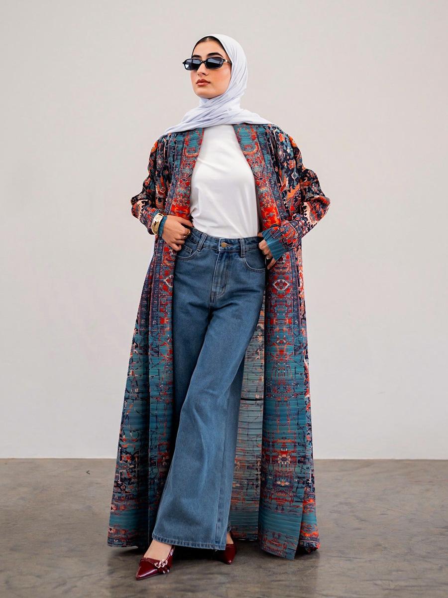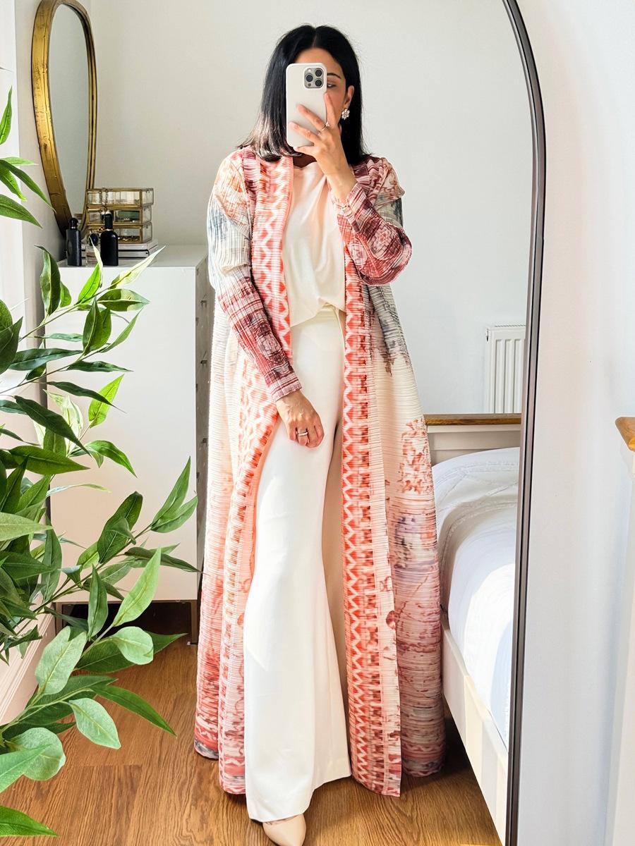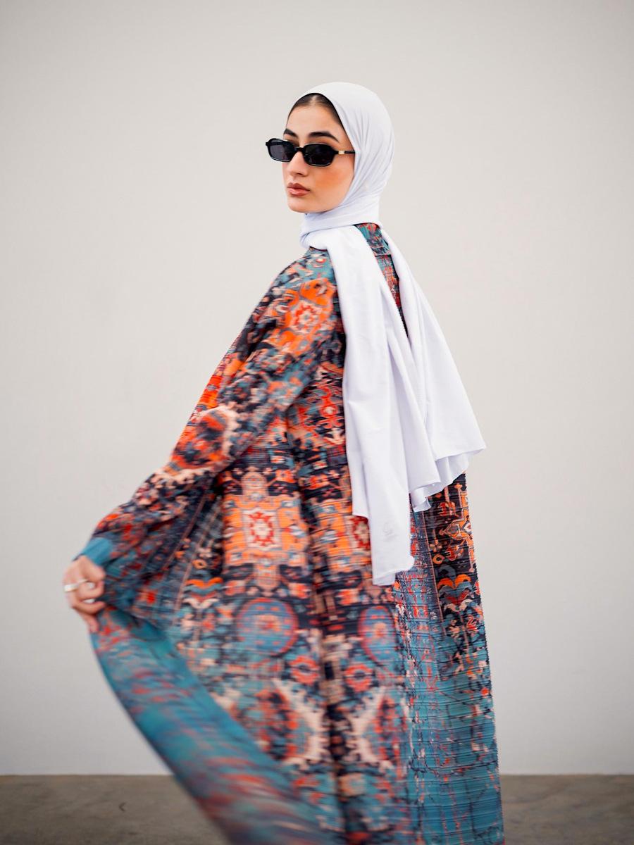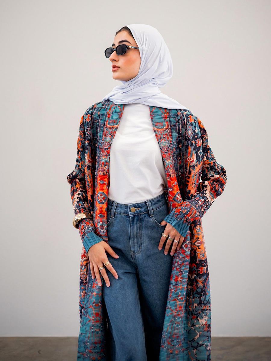 Miyake Abaya Plisada Ropa Musulmana Bata Primavera y Otoño Medio Oriente Transfronterizo Popular Capa Estampada Chaqueta para Mujer