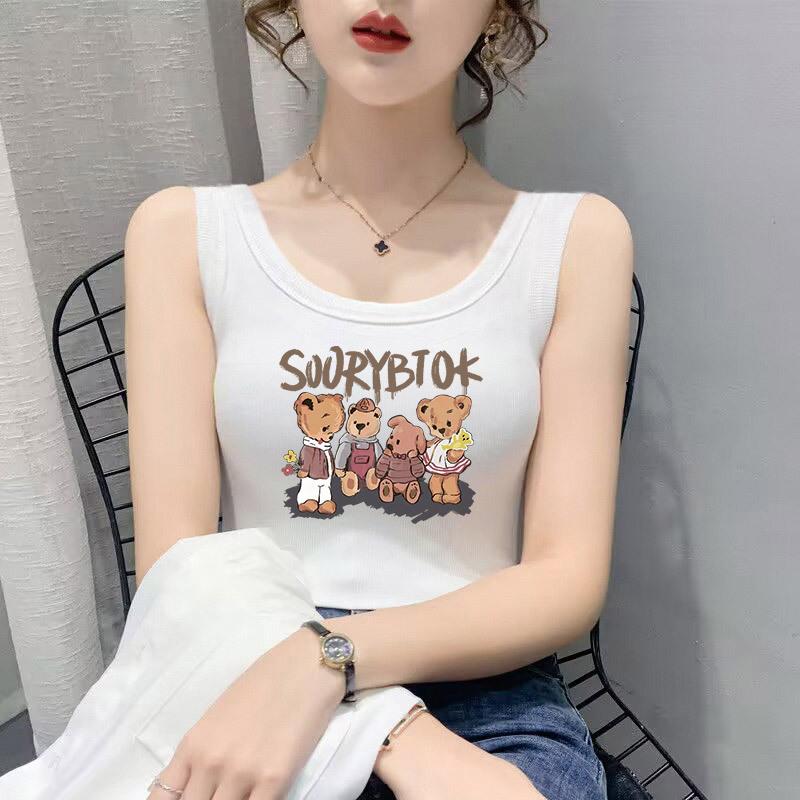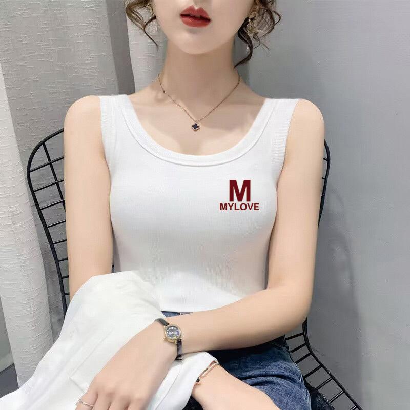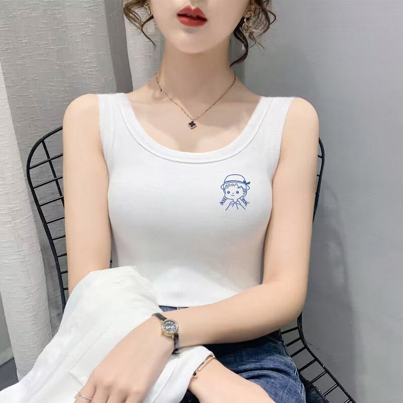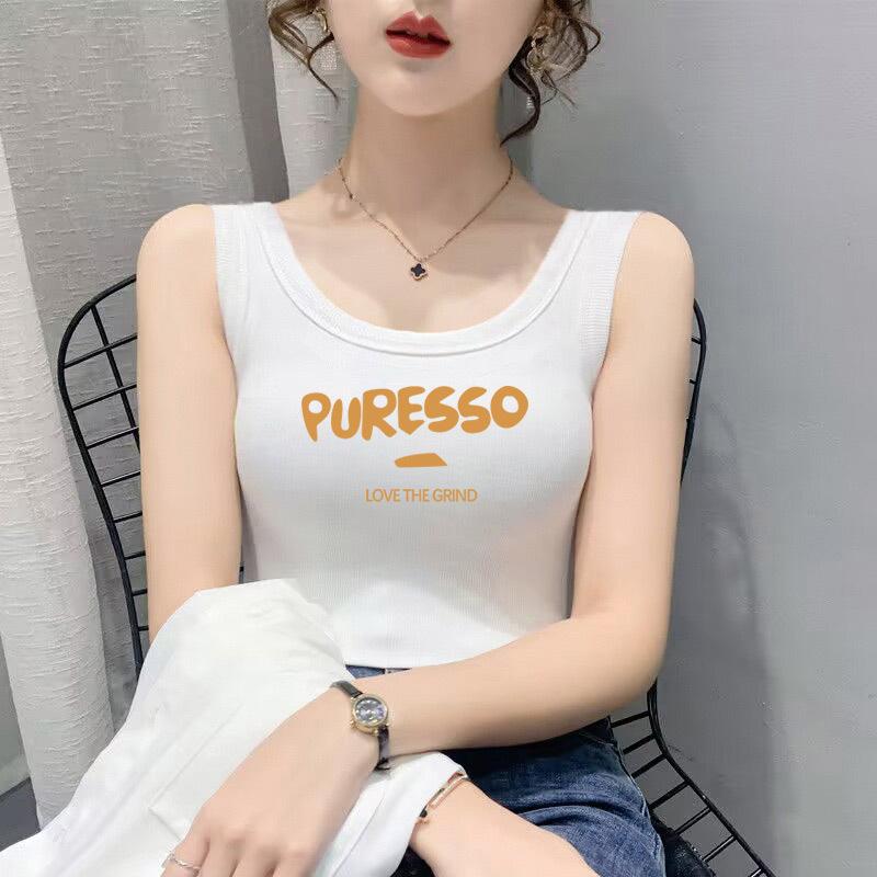 Chaleco de Algodón con Hilo Ropa Exterior para Mujer Primavera Nuevo Camiseta Base Ajustada Cubre Busto Tirantes Top Interior de Algodón para Mujer