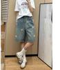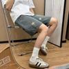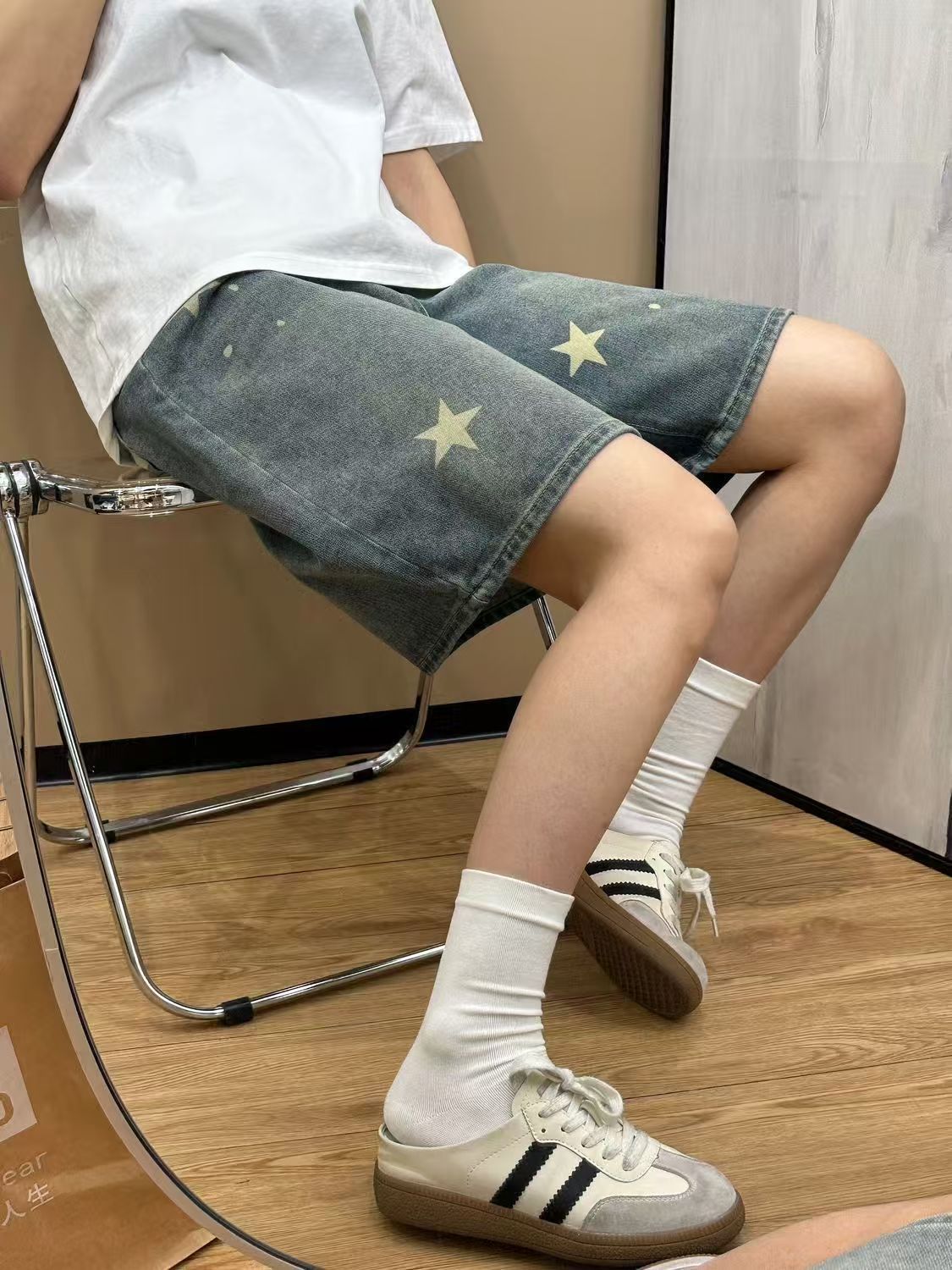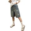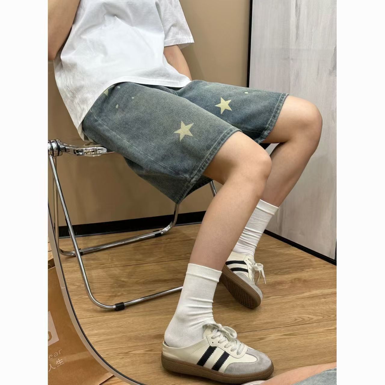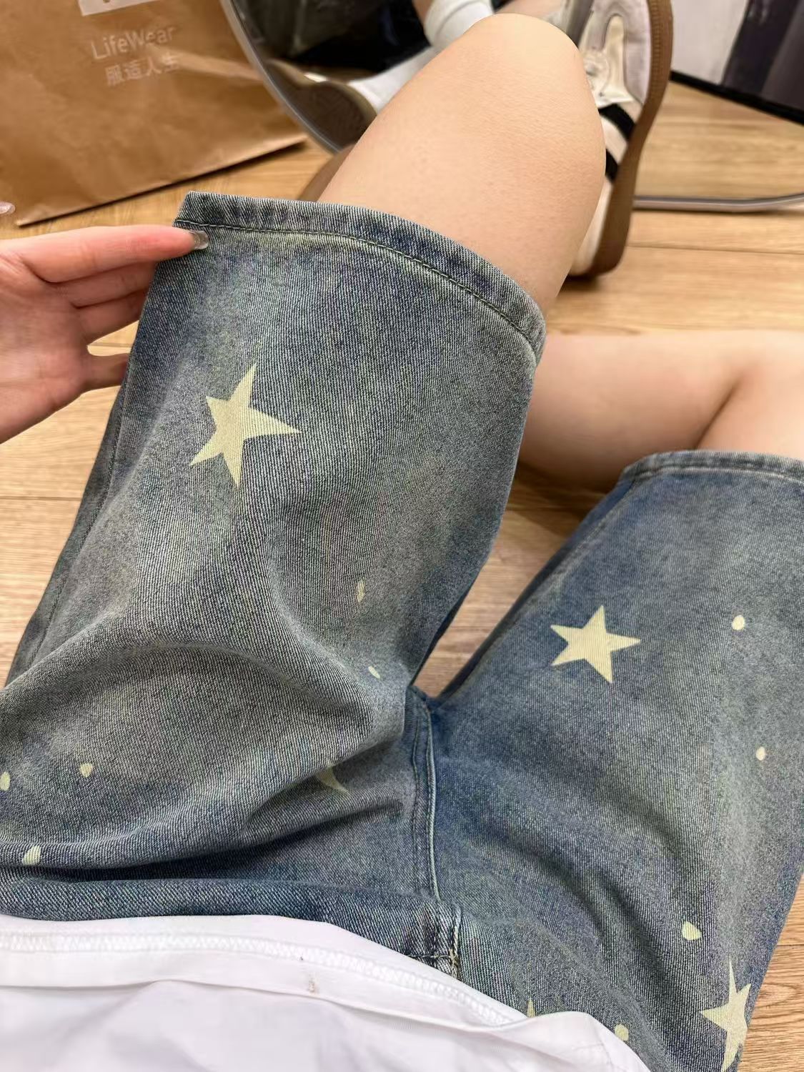 Compra Shorts de Mezclilla Americano Retro Lavado con Estrella para Mujer, Estilo Urbano de Verano, Pantalones Rectos Sueltos Adelgazantes de Pierna Ancha hasta la Rodilla a la Moda al por mayor en Joom.pro
