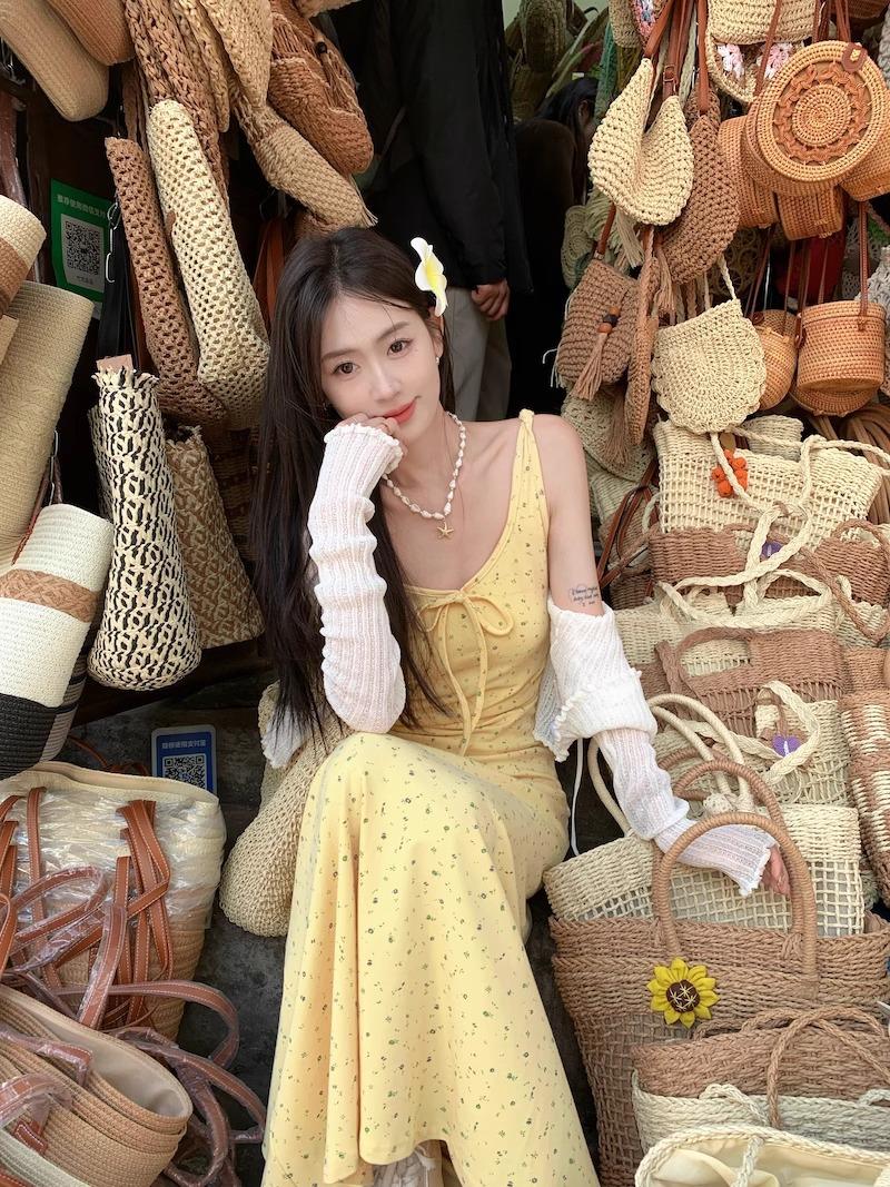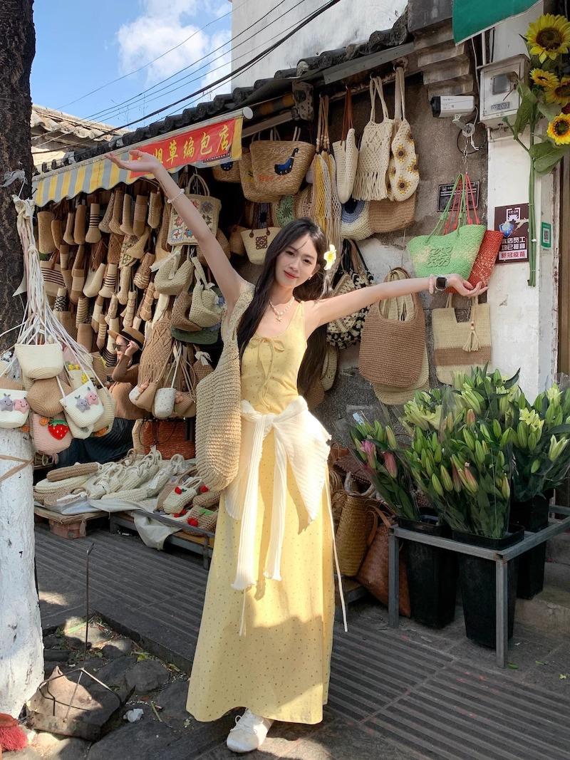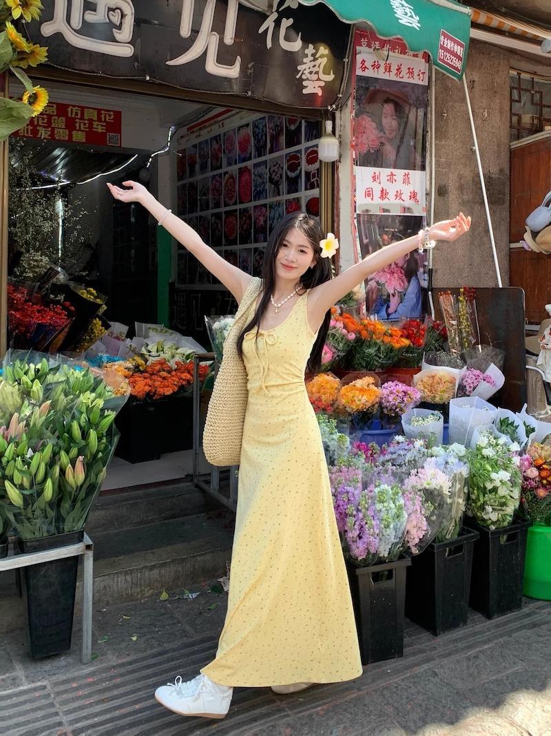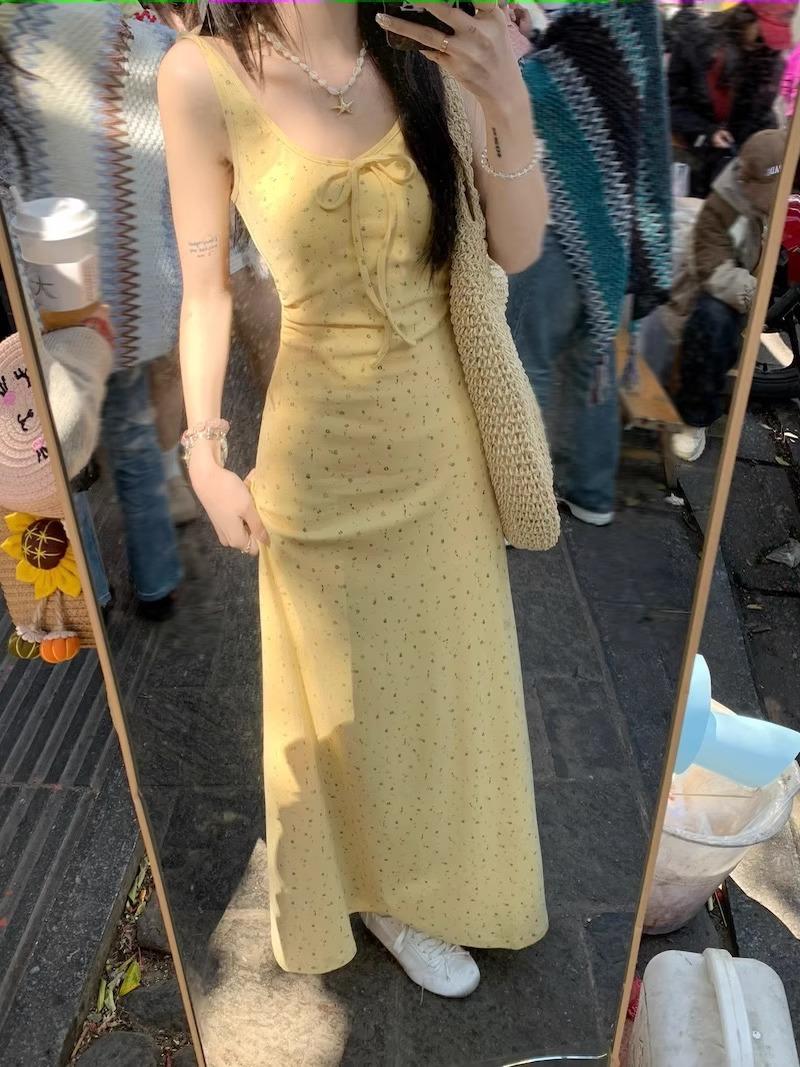 Nuevo Vestido de Tirantes para Mujer Verano 2025 Súper Caliente Nuevo Cintura Francesa Floral Falda Larga Falda de Alta Gama