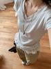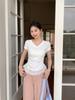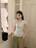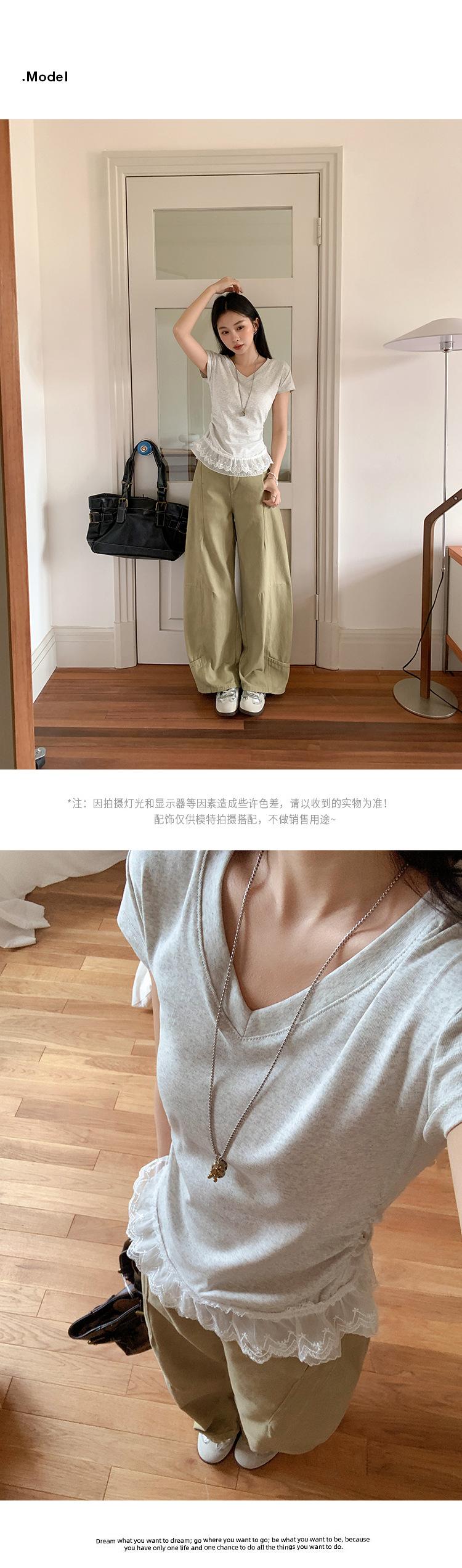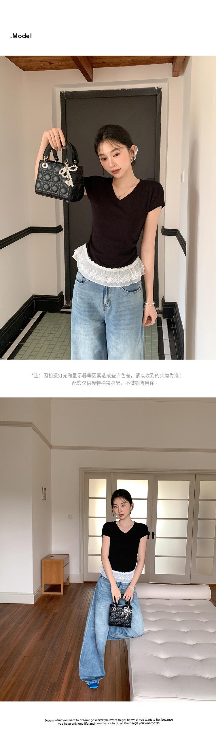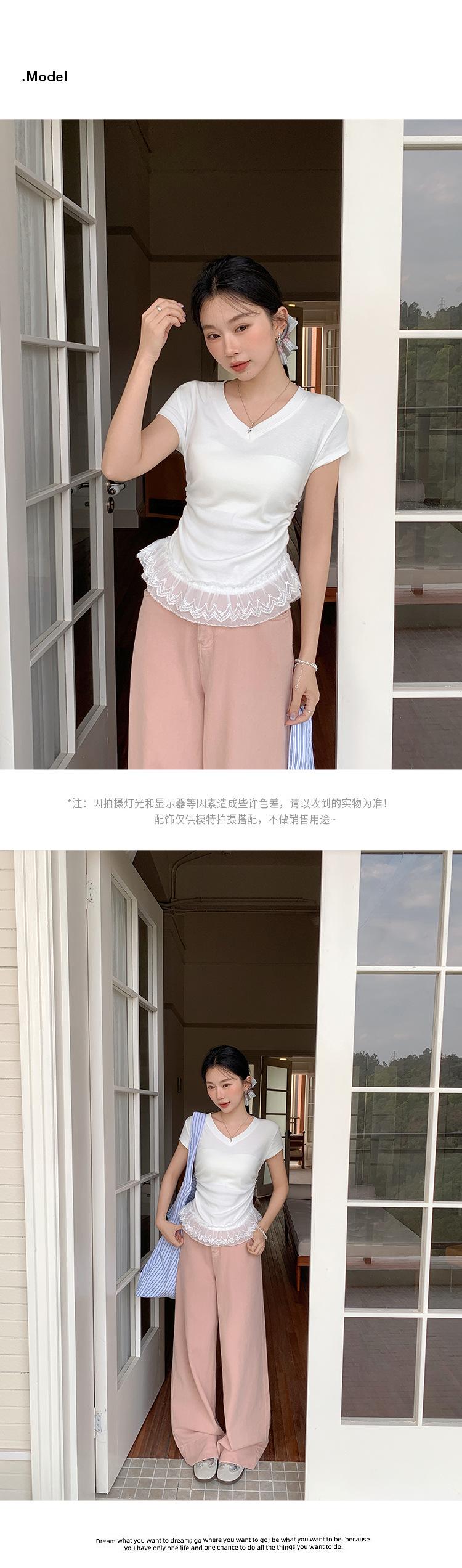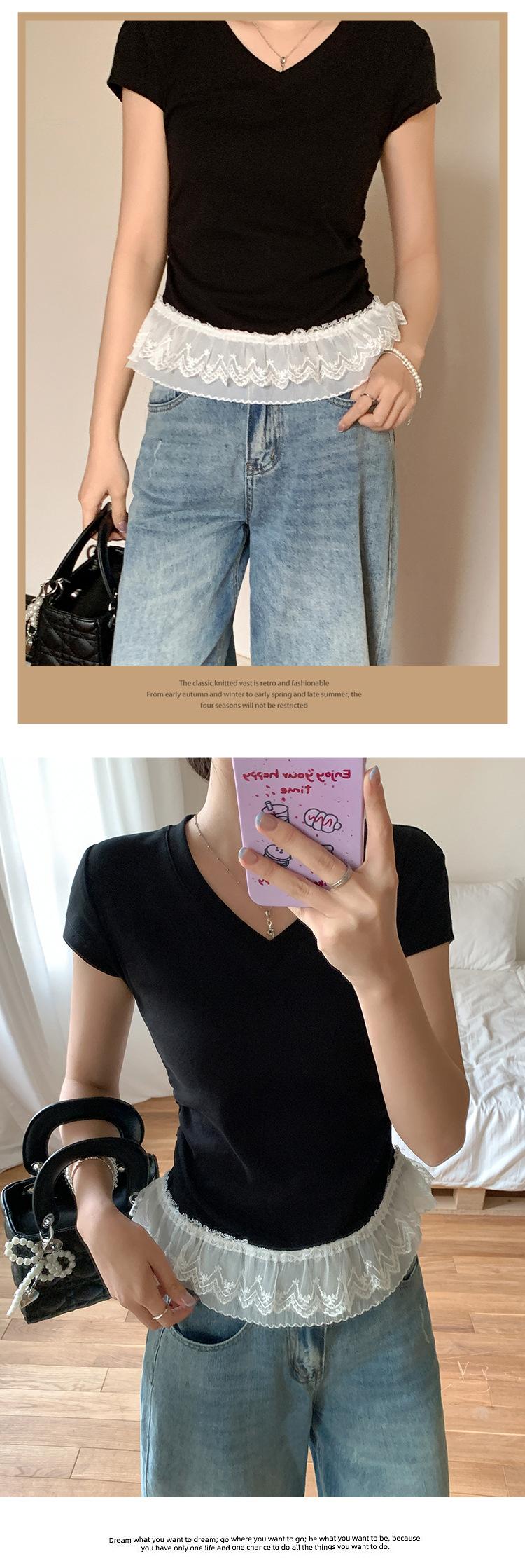 Compra Playera Blanca Pura de Cuello en V con Costuras de Encaje de Manga Corta para Mujer Verano 2025 Nueva Ajustada Hombro Top Corto al por mayor en Joom.pro