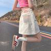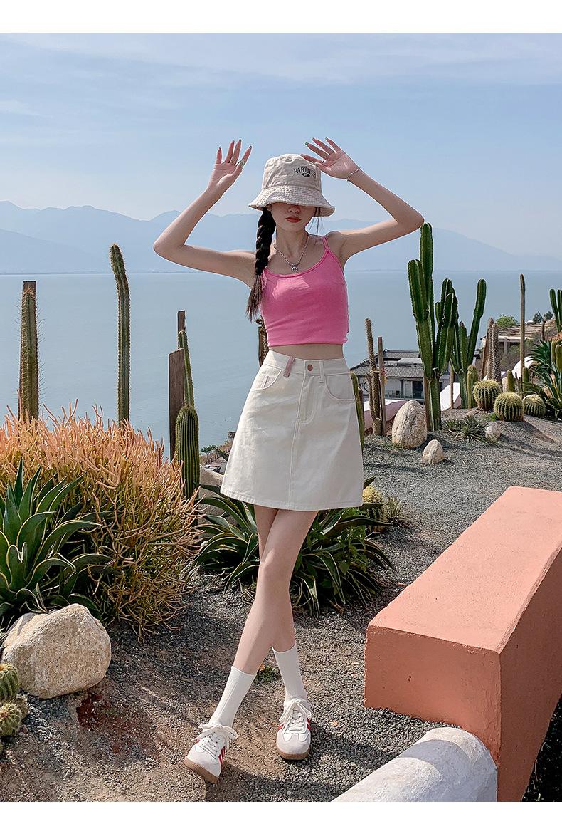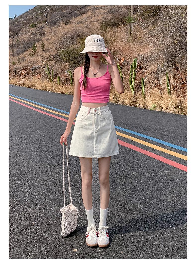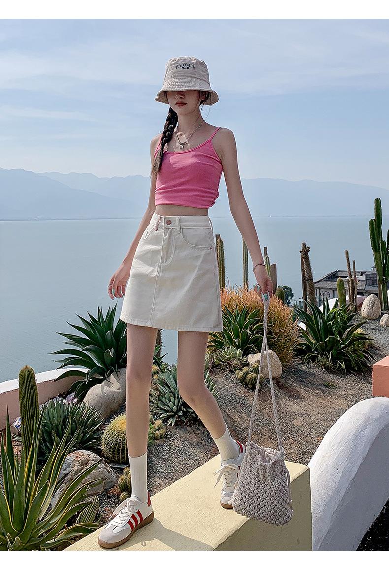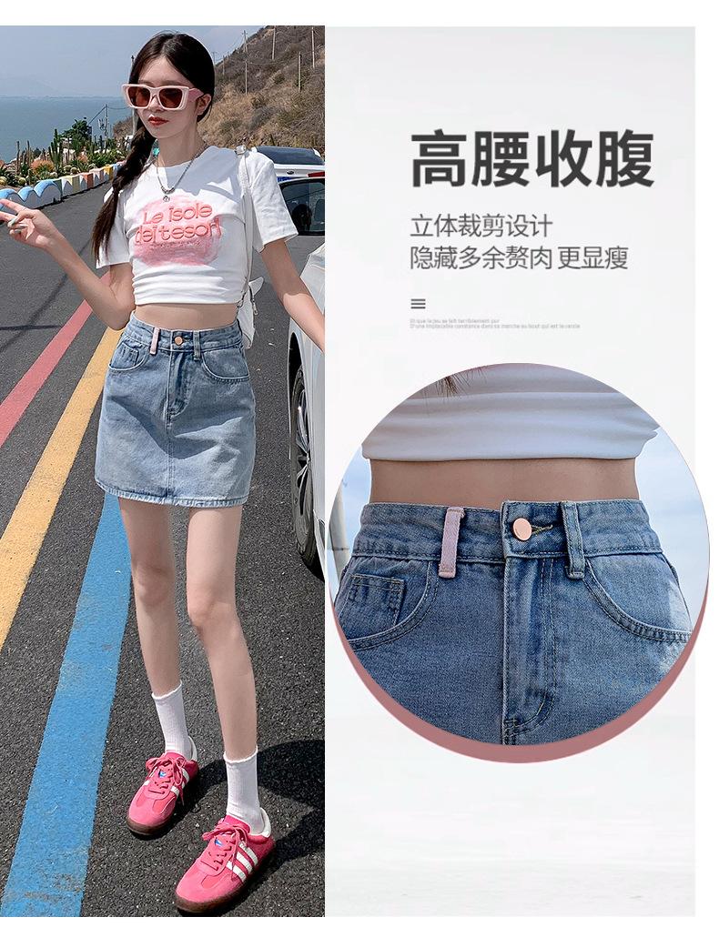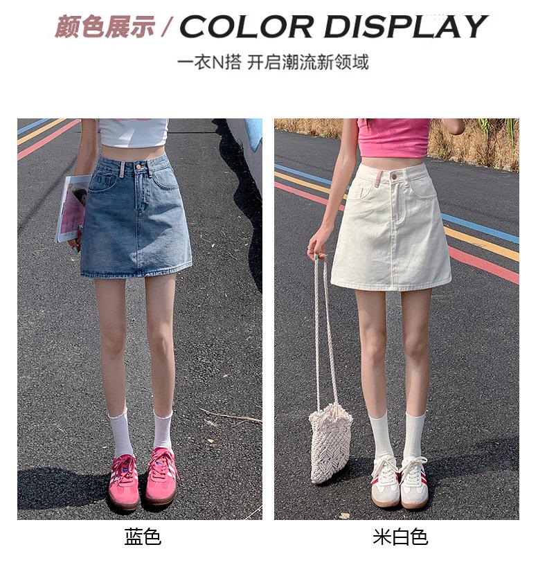 Falda Corta de Mezclilla para Mujer Verano Nuevo 2025 Cintura Alta Blanco Arroz Falda Pantalón Antiluz Línea A Falda Ajustada Media Falda