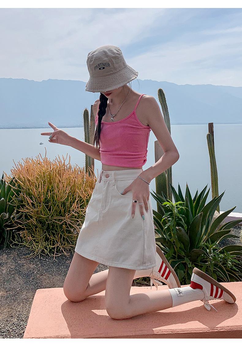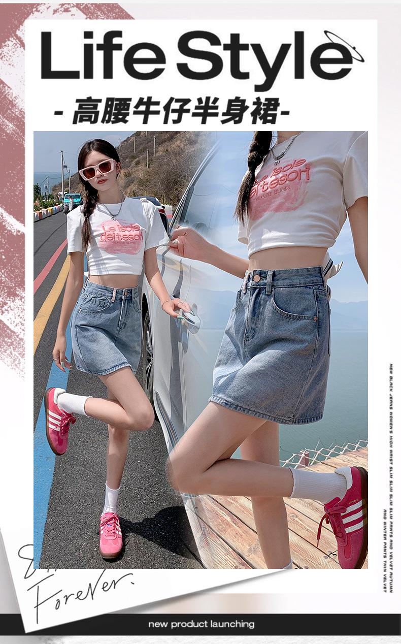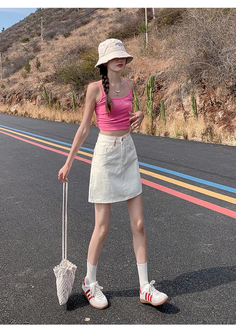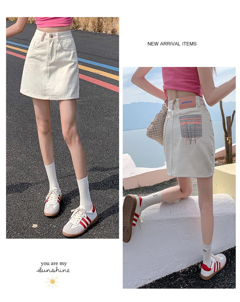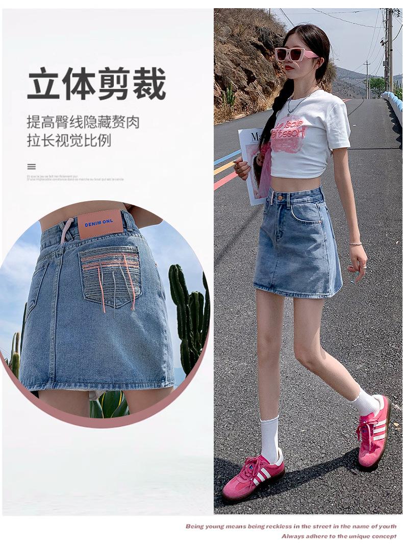 Falda Corta de Mezclilla para Mujer Verano Nuevo 2025 Cintura Alta Blanco Arroz Falda Pantalón Antiluz Línea A Falda Ajustada Media Falda